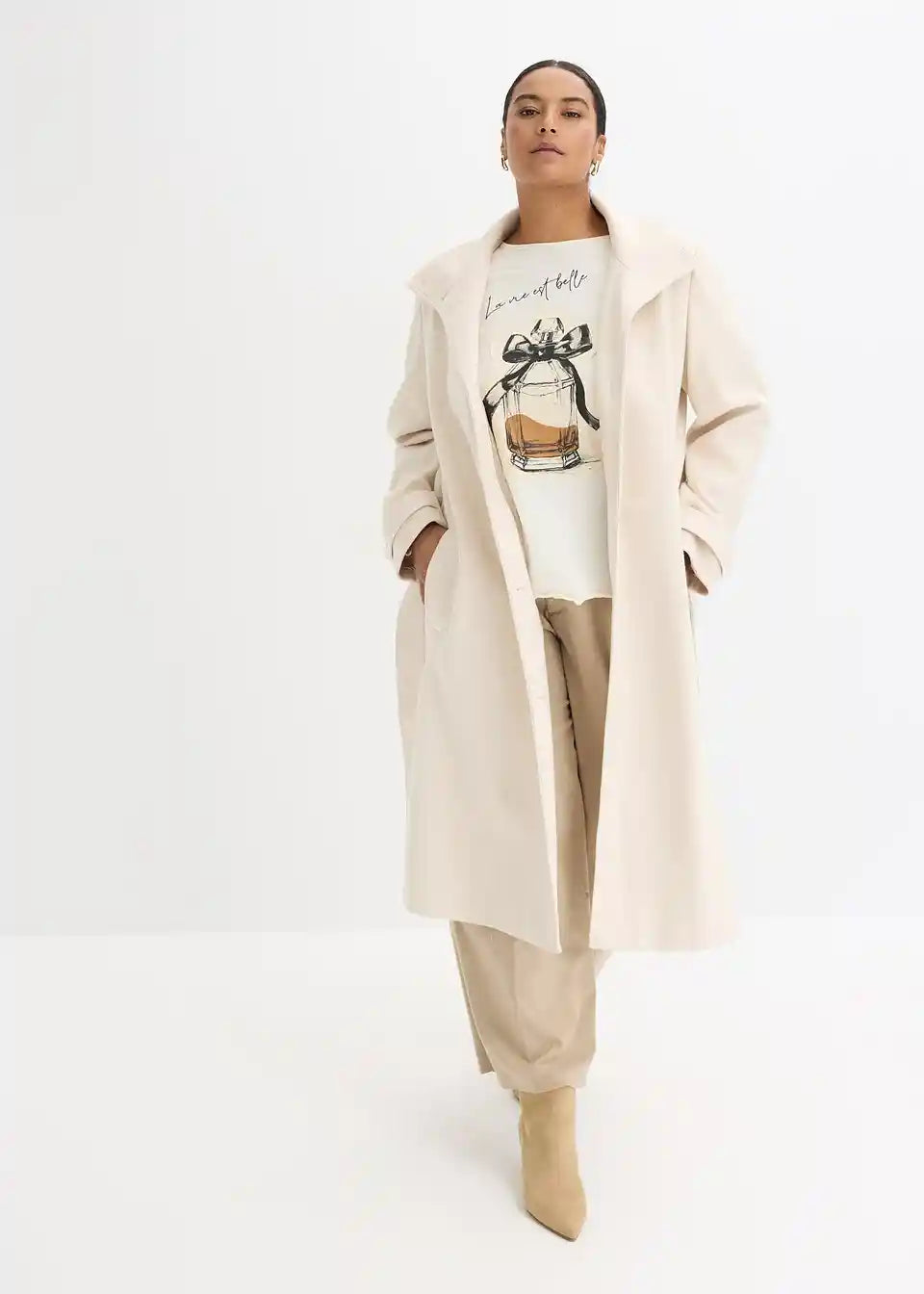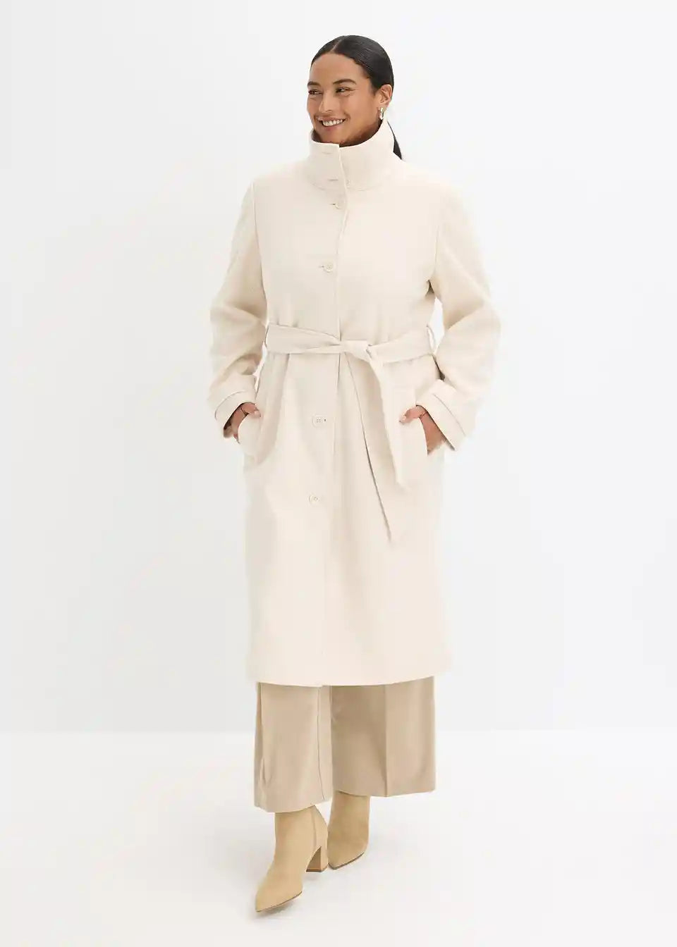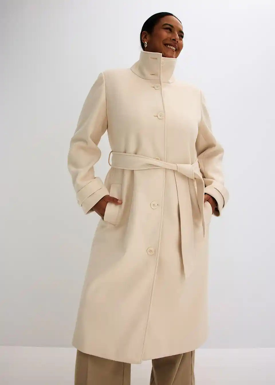 elegantan kaput s detaljem gumba i pojasom