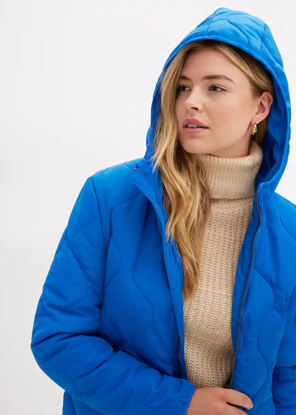 Lijepa prošivena jakna s kapuljačom i dvosmjernim patentnim zatvaračem
