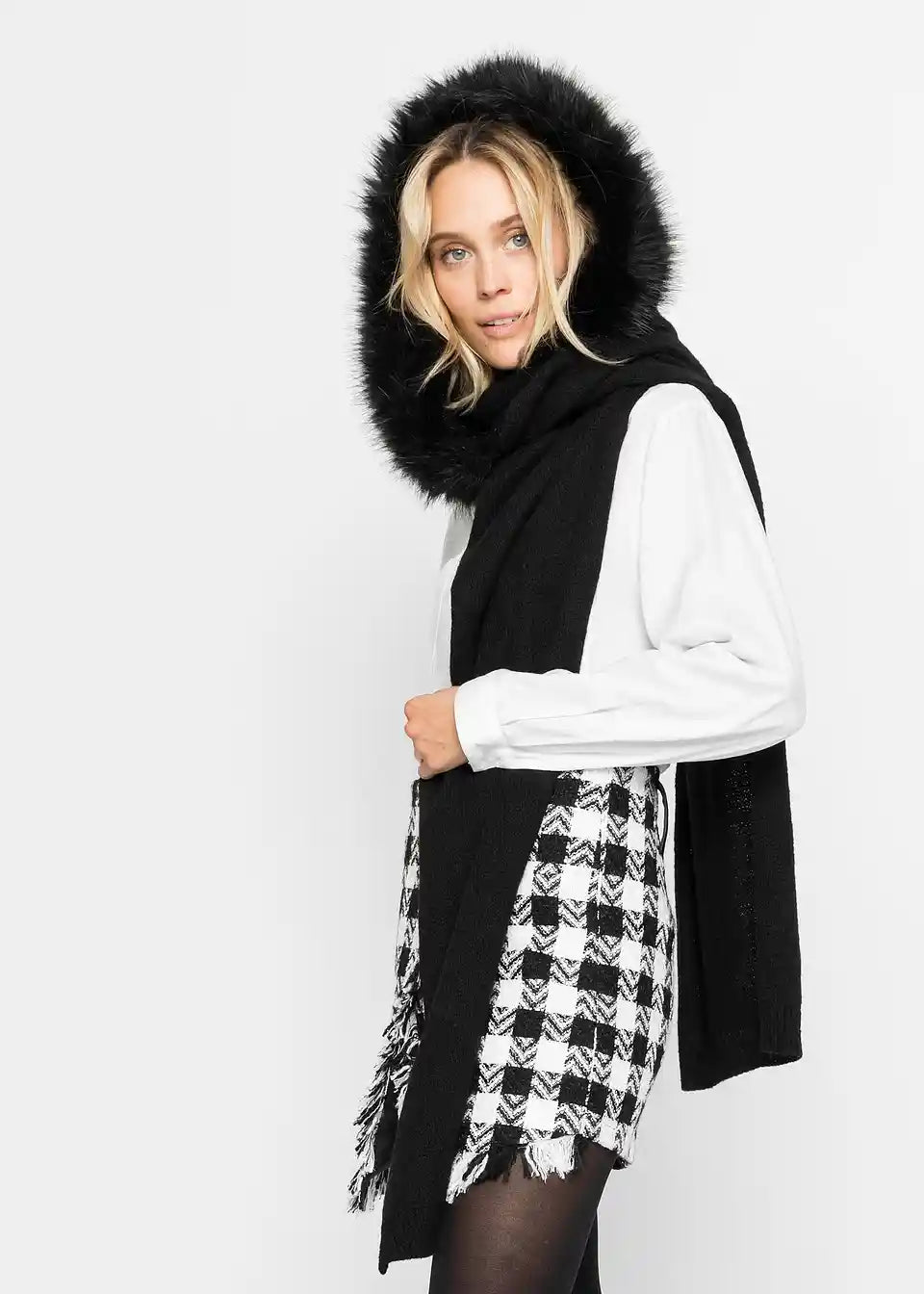 Elegantan kapuljača šal s ukrasom u imitaciji krzna