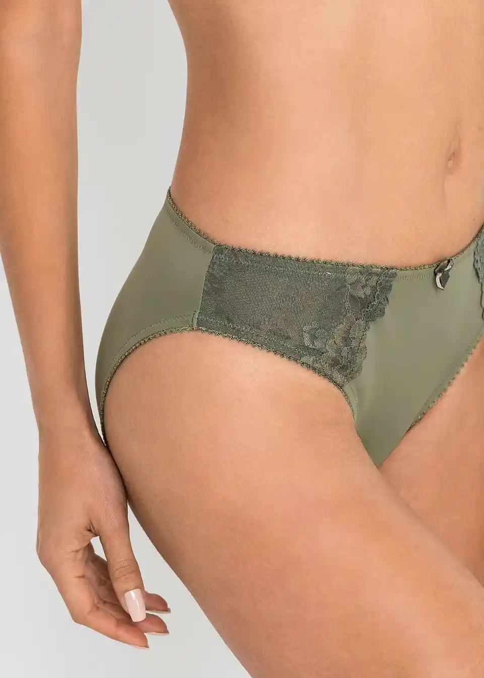 Ove gaćice brenda bpc Selection očaravaju svojom cvjetnom čipkom u području struka. Neprozirni materijal pruža visok nivo udobnosti, a mala ukrasna mašnica na uskom rubu savršeno upotpunjuje razigrani dizajn.