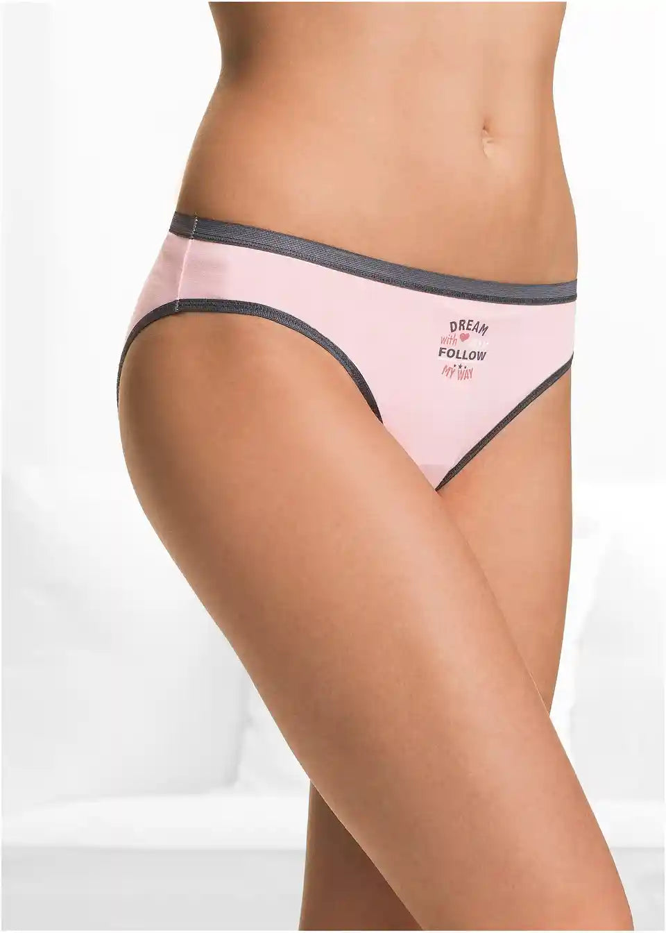 Ove gaćice osvajaju kombinacijom udobnosti i lijepih detalja. Na sredini prednje strane model ima diskretan print. Rubovi gaćica ukrašeni su kontrastnom bojom. Mekani materijal pruža ugodan osjećaj na koži. Uložak je od pamuka. Gaćice marke bpc dolaze u praktičnom pakiranju od pet komada u raznovrsnim dizajnima.