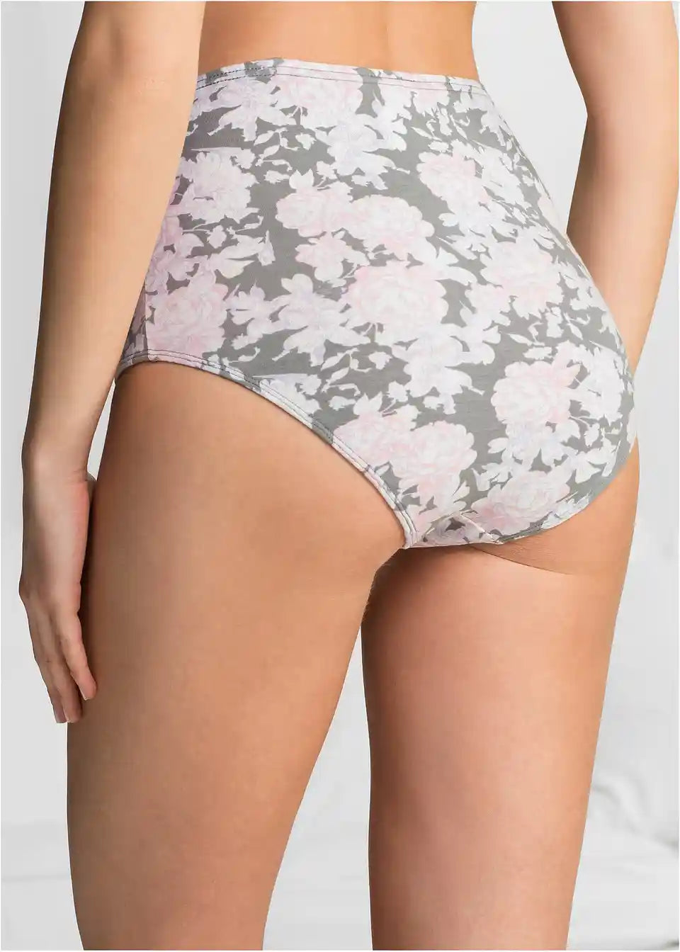 Ove diskretne gaćice visokog struka u paketu od četiri komada oduševljavaju visokim strukom koji osigurava izuzetan osjećaj udobnosti i pruža blagi efekt oblikovanja. Ugodna kvaliteta materijala dodatno doprinosi udobnosti. Na elastičnom pojasu nalazi se mala mašnica. Uložak u međunožju izrađen je od pamuka. Udobne gaćice visokog struka u paketu dolaze iz bpc kolekcije i dostupne su u dva dizajna.