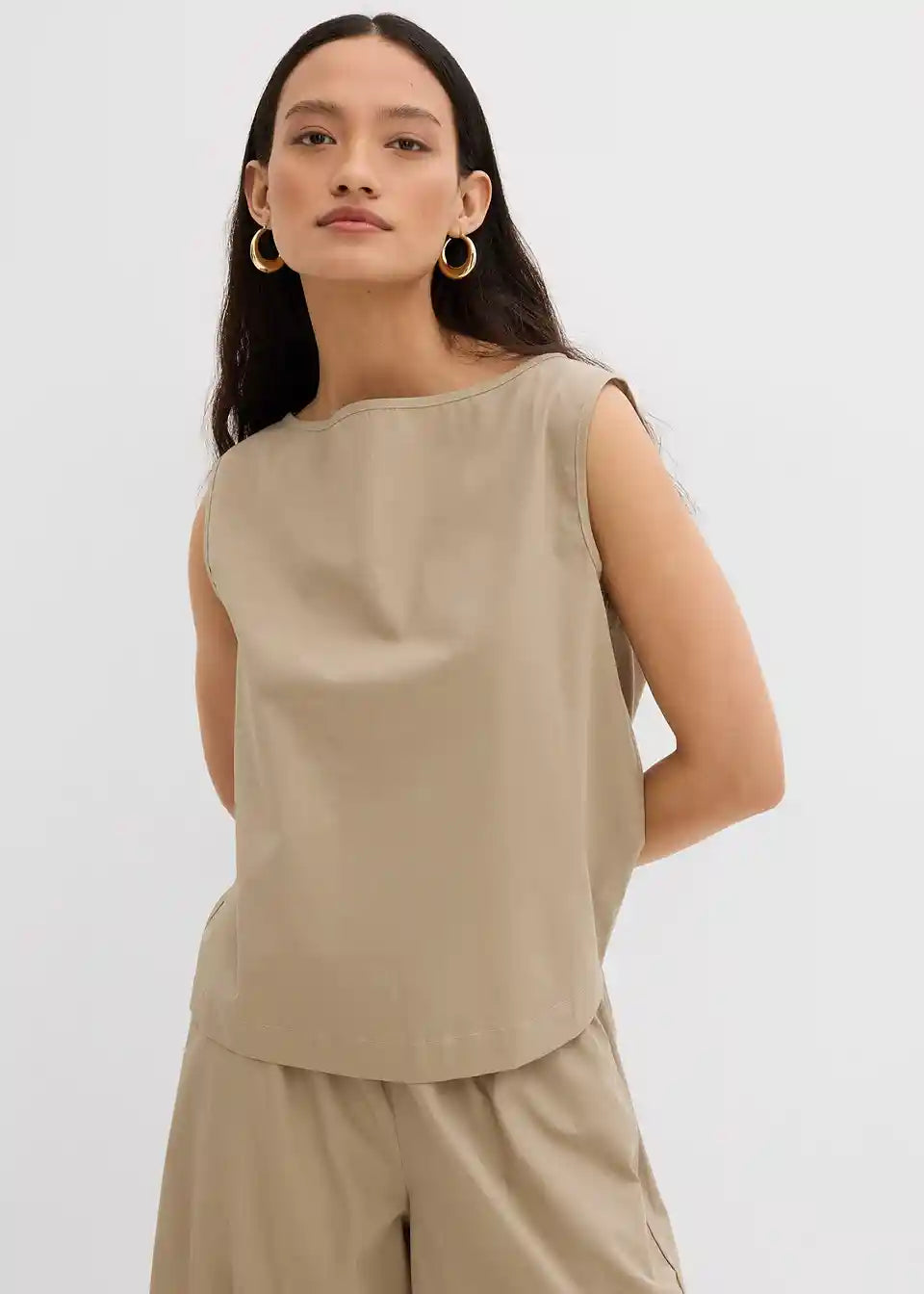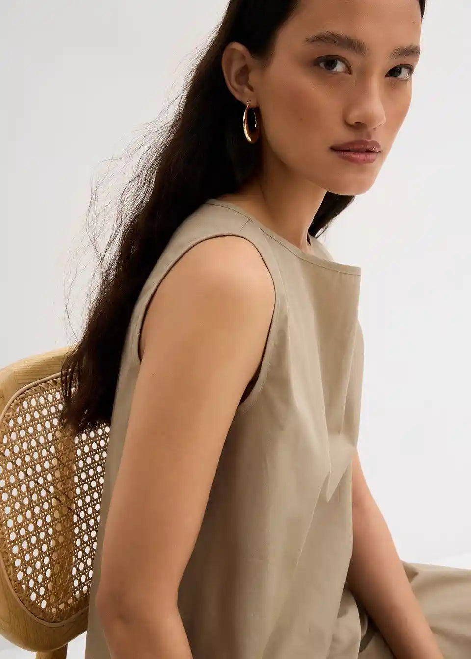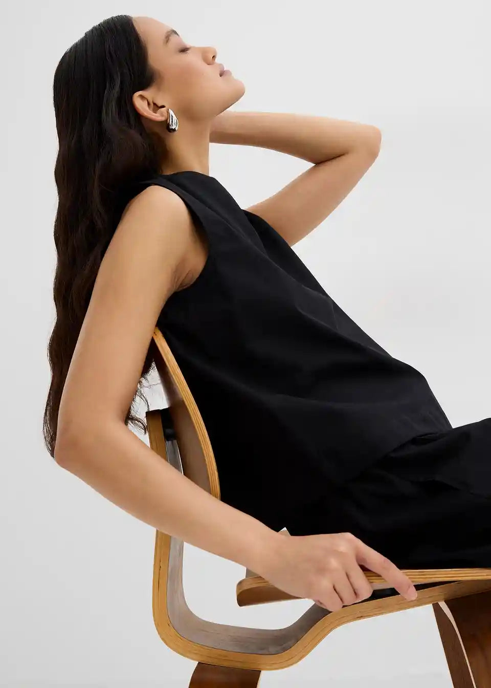 Minimalistički bluzni top bez rukava s bateau izrezom i prorezom na stražnjem rubu