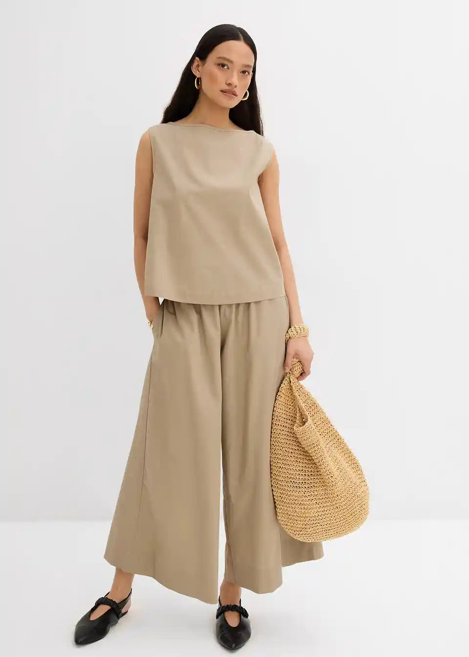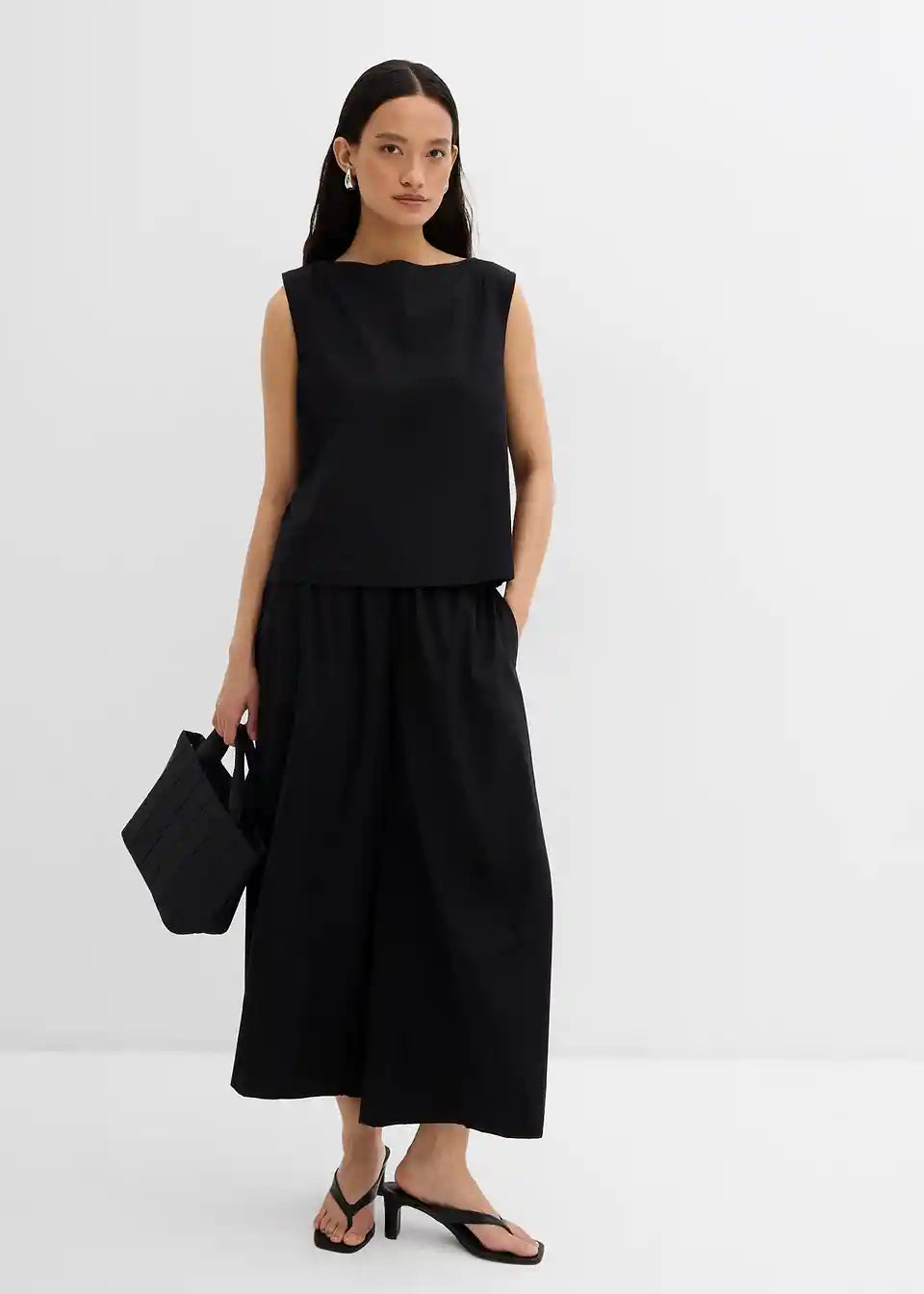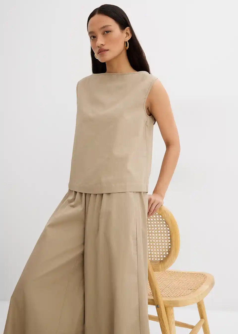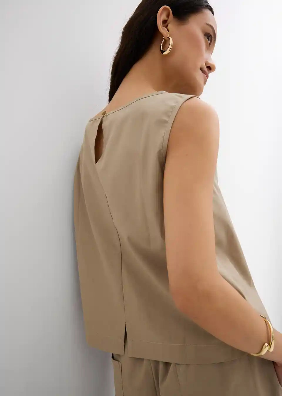 Minimalistički bluzni top bez rukava s bateau izrezom i prorezom na stražnjem rubu