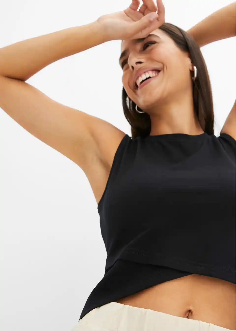 Genau wie ich es mir vorgestellt habe. Nicht zu kurz, aber endet kurz über dem Bauchnabel. Der Stoff ist angenehm.