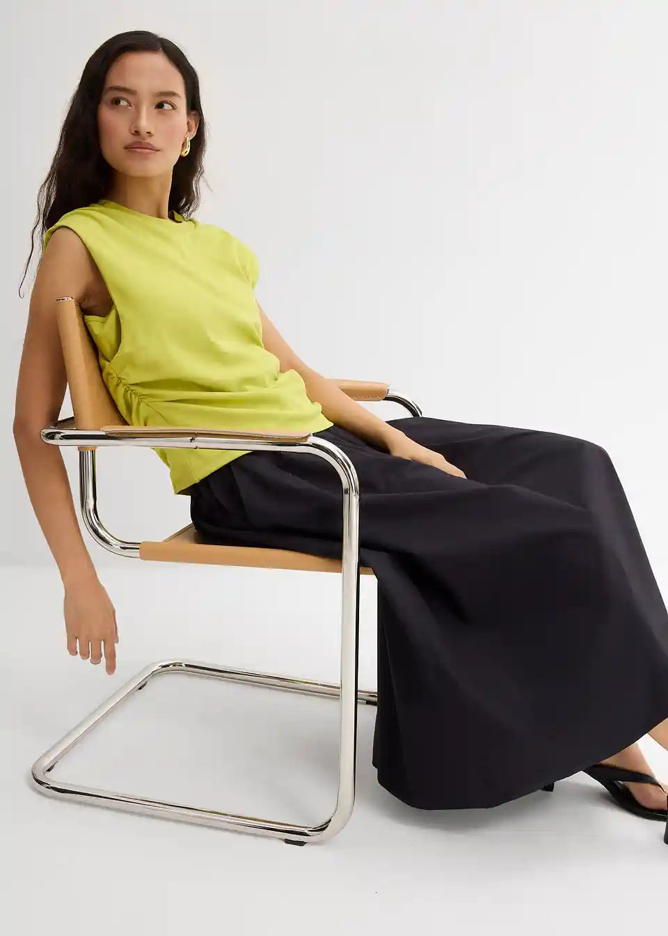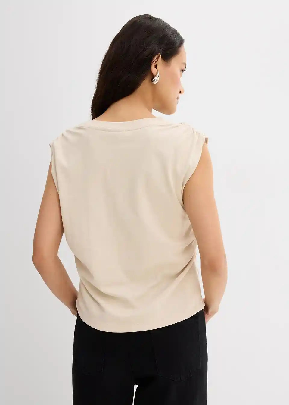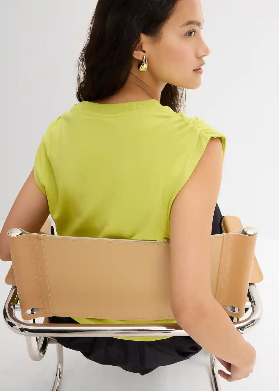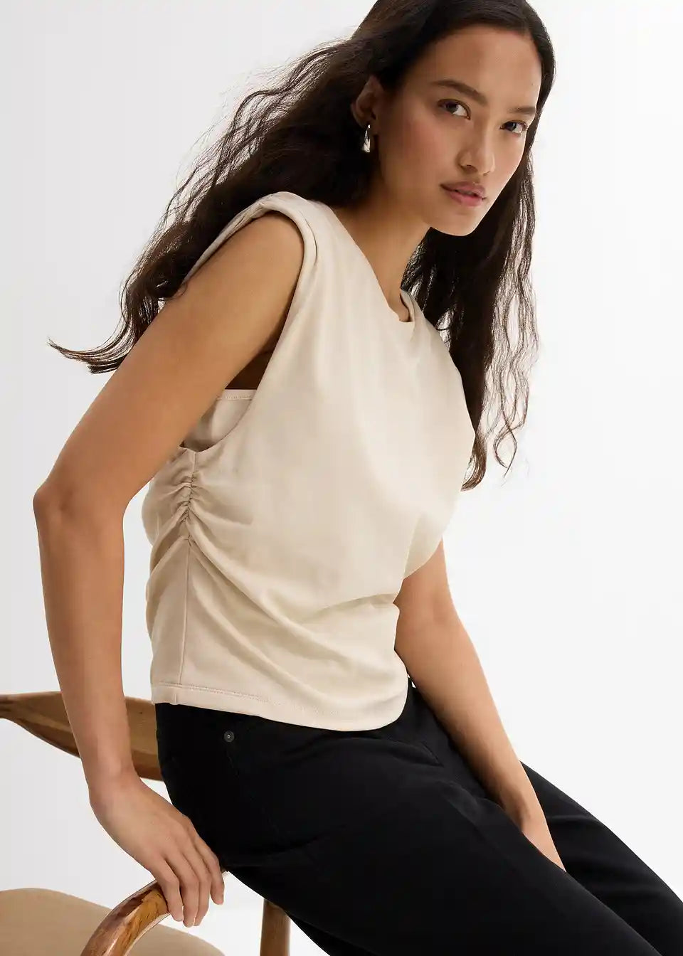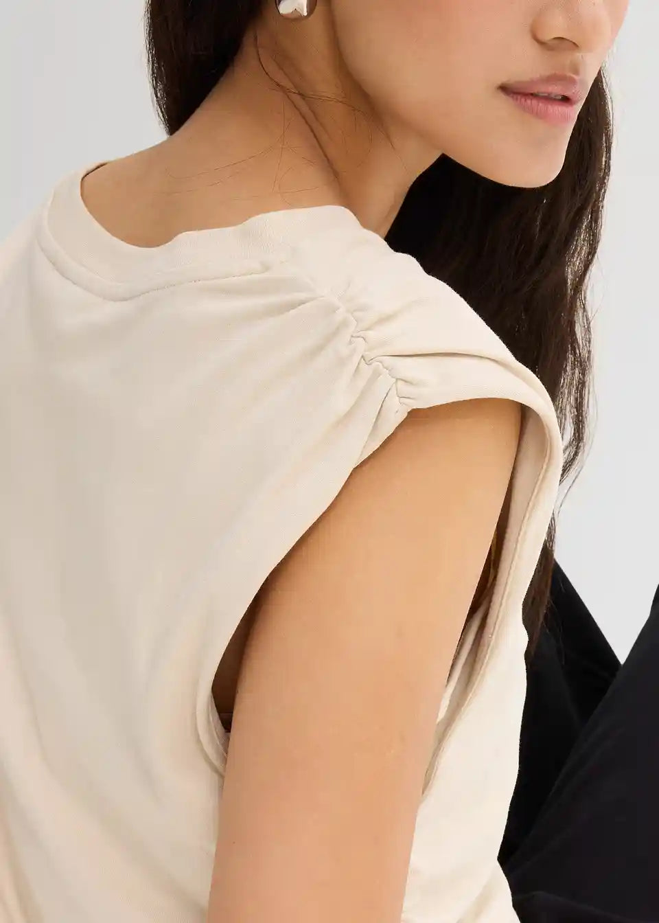 Kratko krojeni top s drapiranjima na ramenima i struku od čiste pamuka