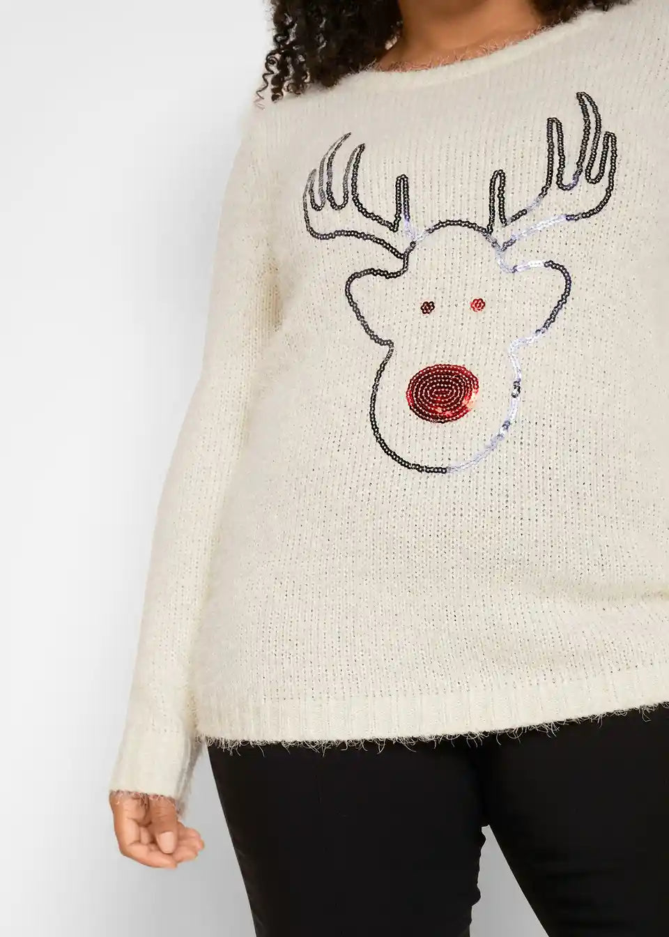 Božićni pulover sa sjevernim jelenom sa šljokicama