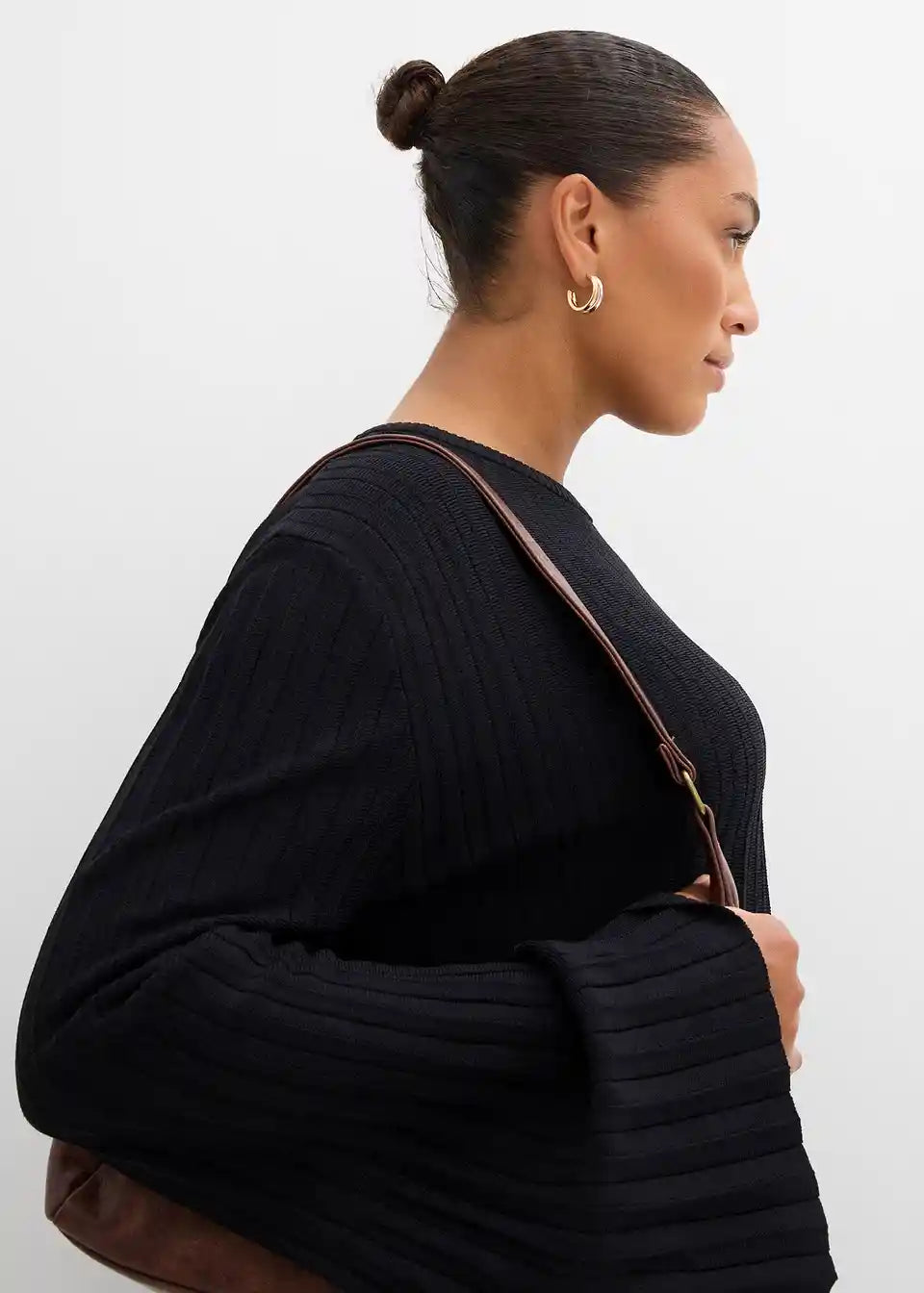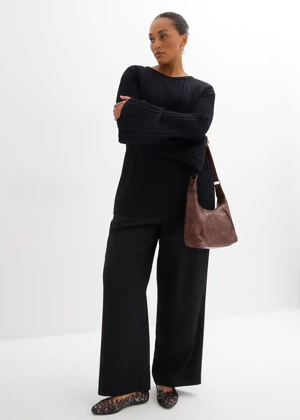 Plisirani fino pleteni pulover od materijala s udjelom viskoze