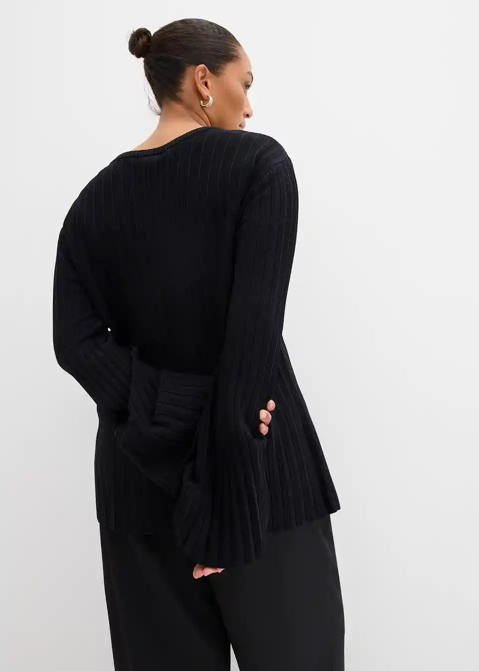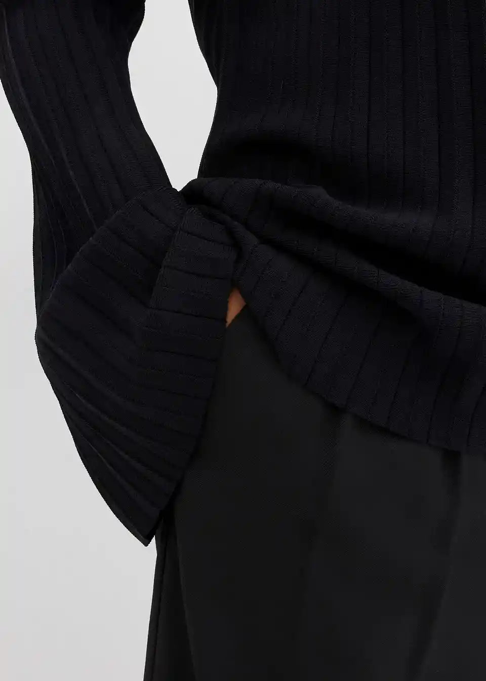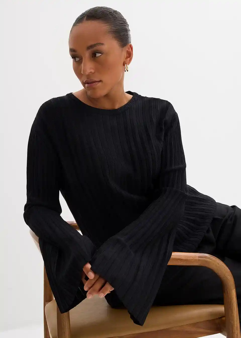 Plisirani pulover od fine pletenine s okruglim izrezom i zvonastim rukavima