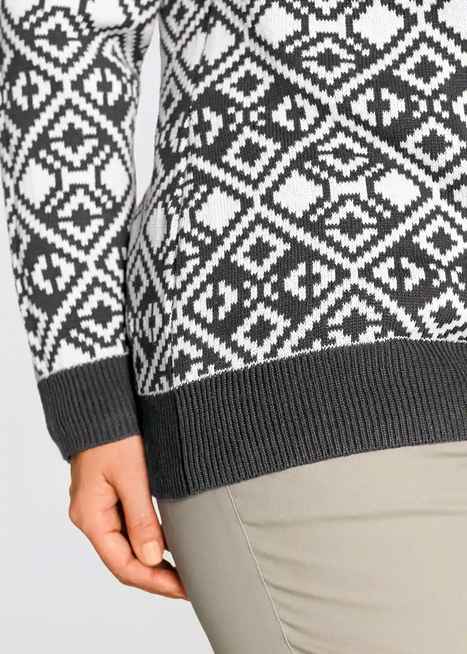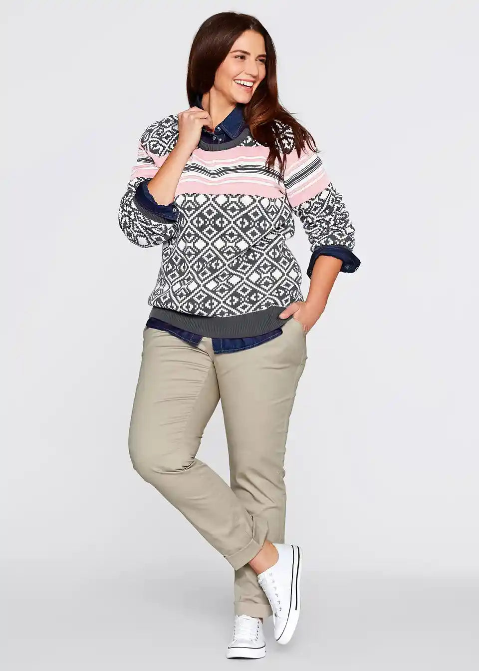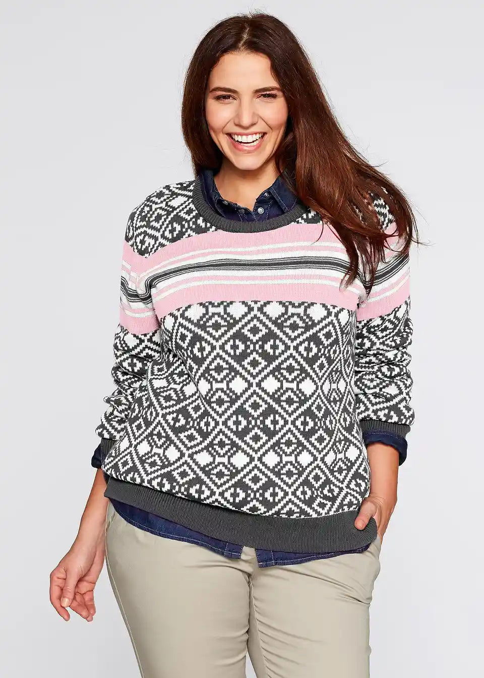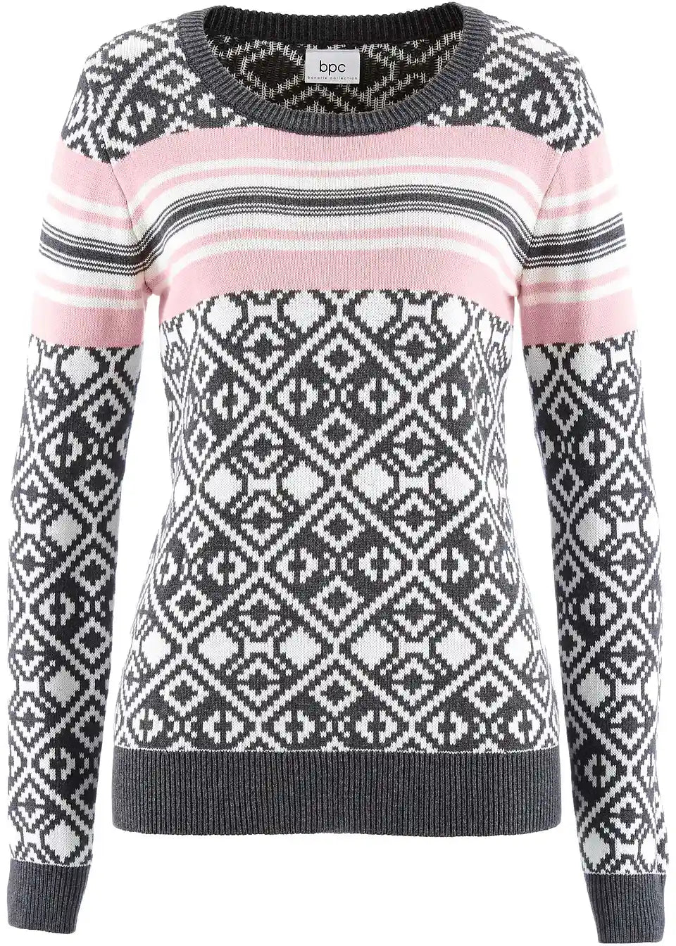 Ovaj privlačni pulover iz kolekcije bpc je praktičan pratitelj za slobodno vrijeme. Izrađen je od čiste pamuka i osvaja nositeljicu različitim uzorcima. Fini rubovi od rebrastog materijala osiguravaju dobro pristajanje. Ovaj svakodnevni pulover dobro ide uz sportske hlače poput traperica, cargo ili chino hlača.