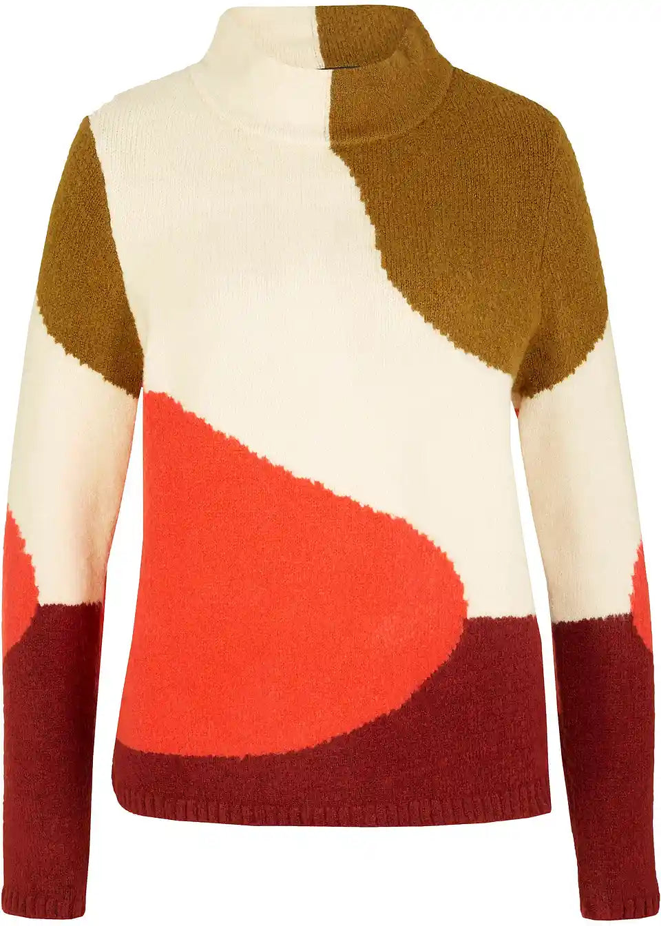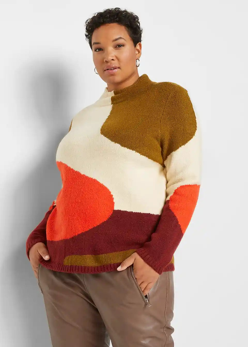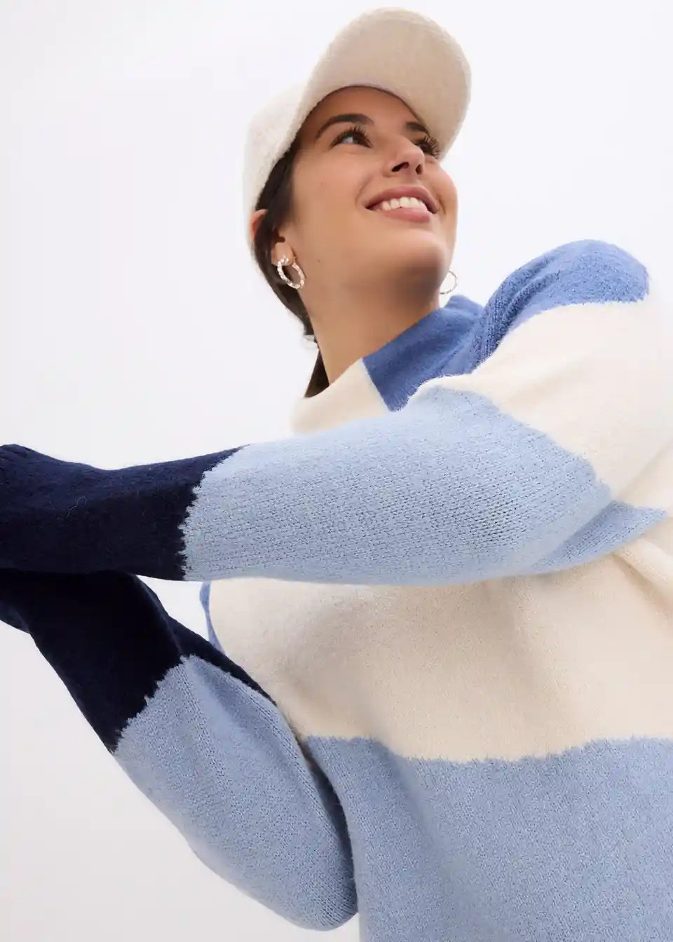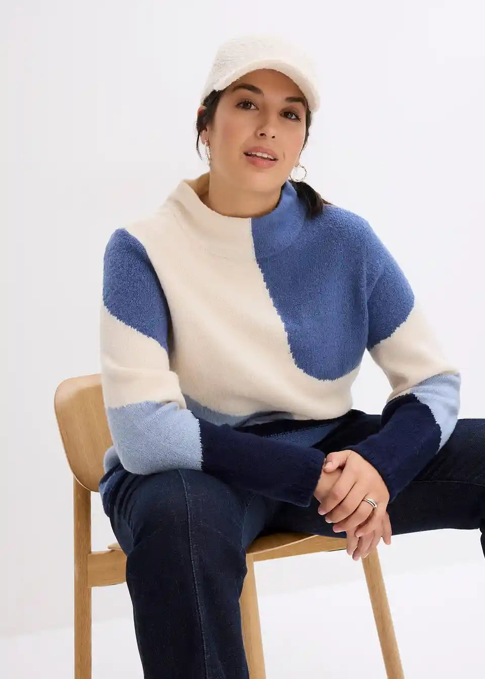 Udoban pulover širokog kroja s visokim ovratnikom.