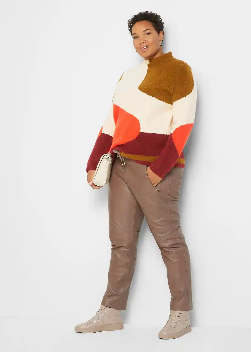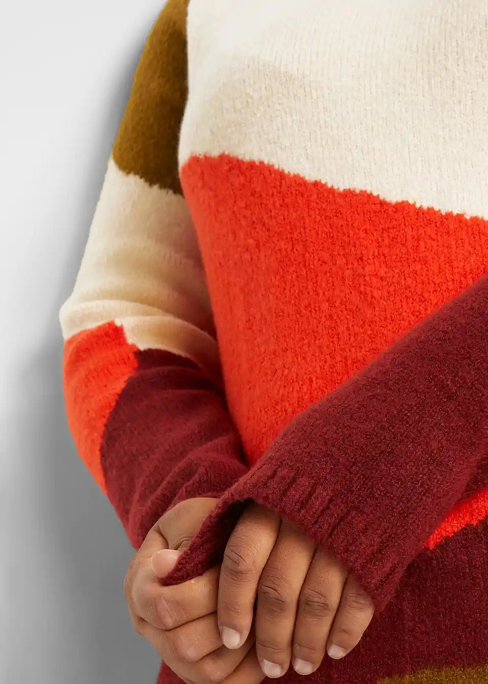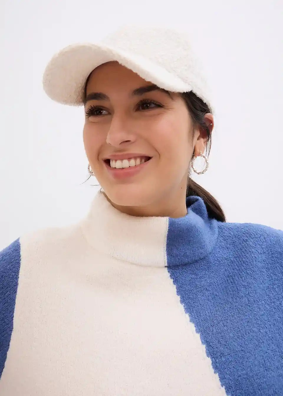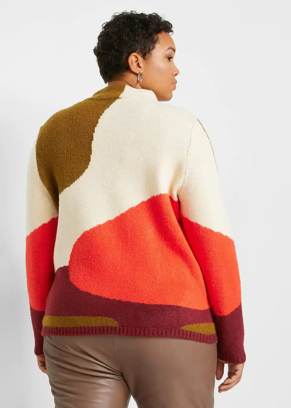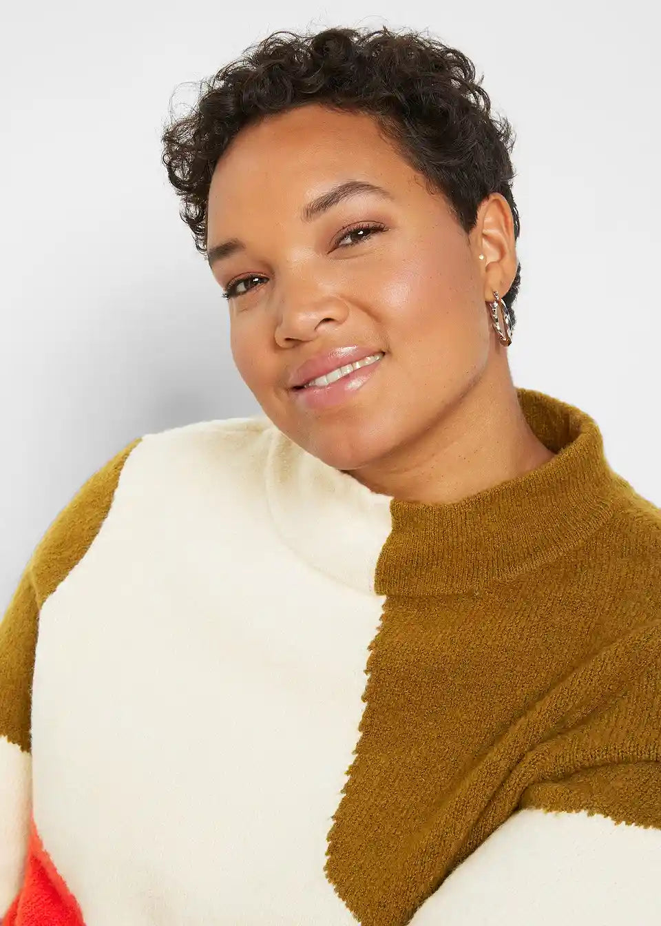 Udoban pulover širokog kroja s visokim ovratnikom.