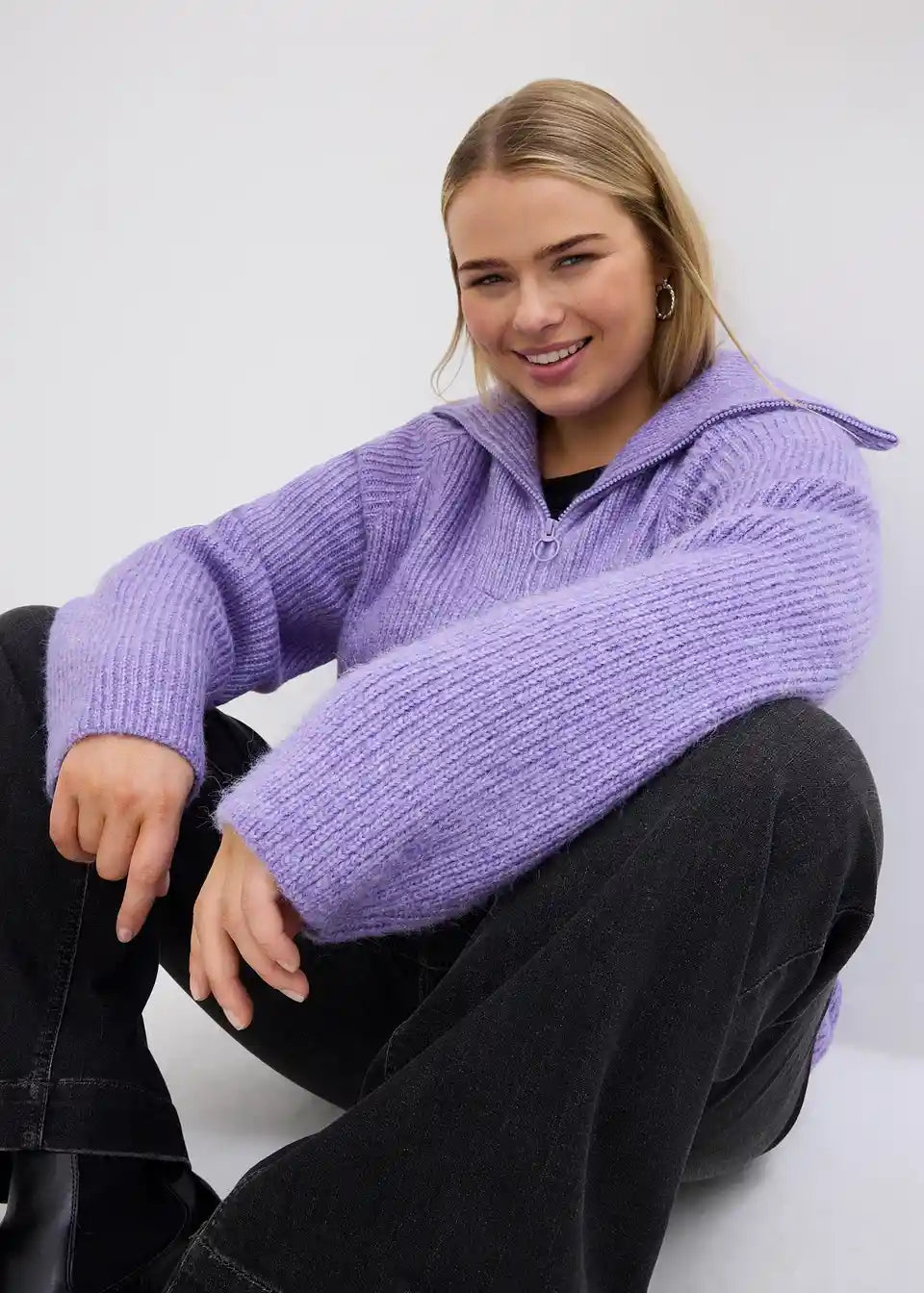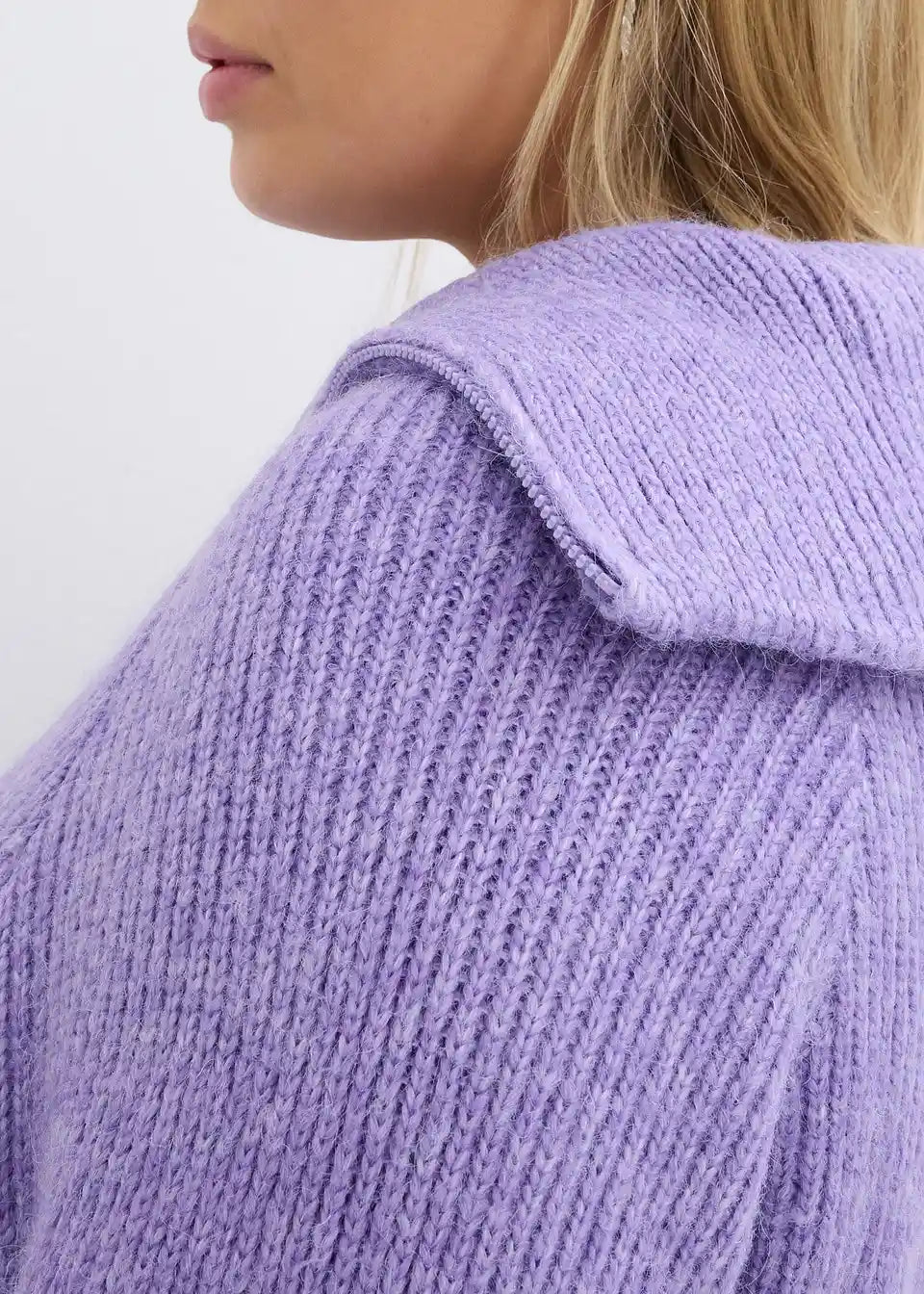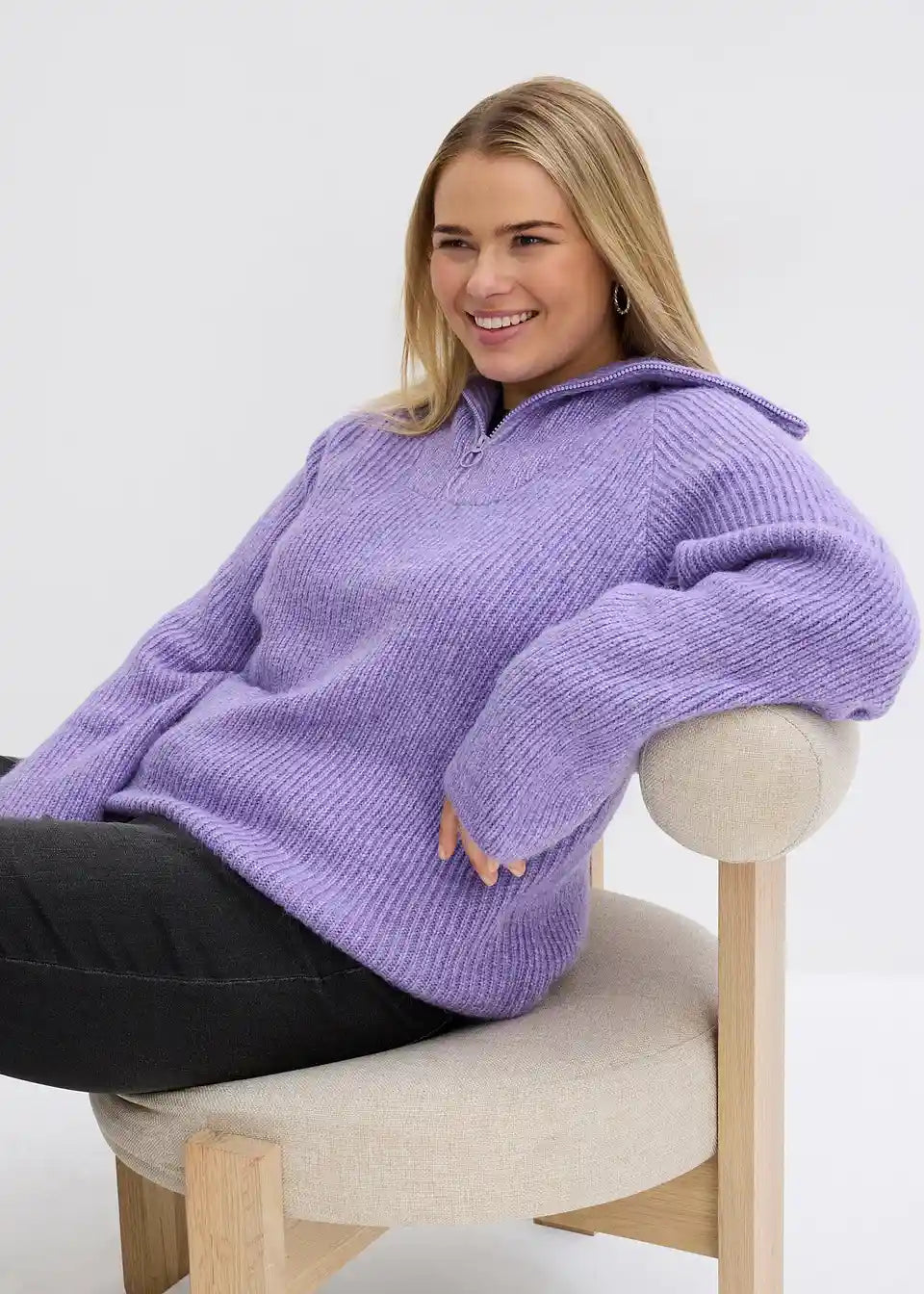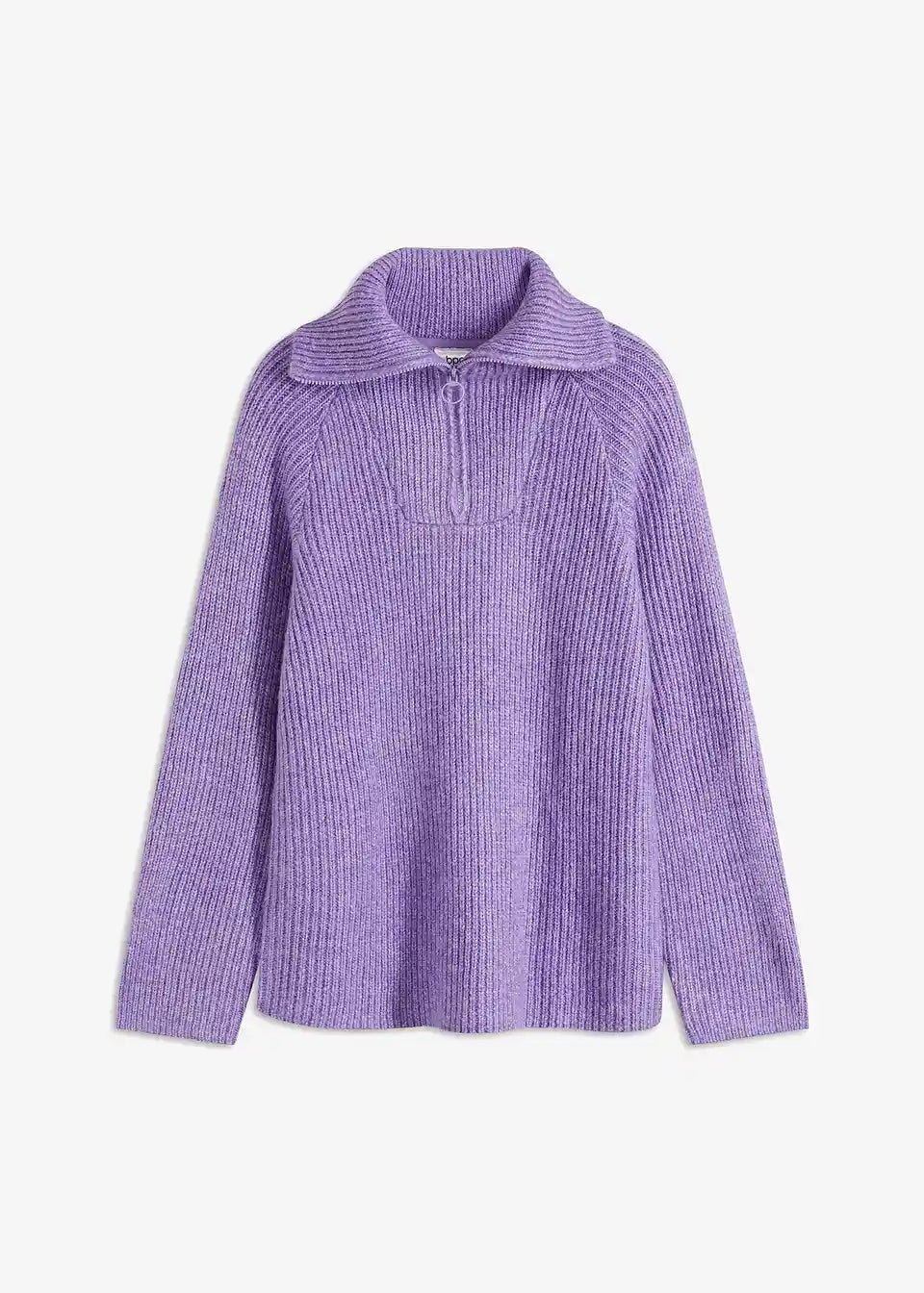 Rebrasti džemper s visokim ovratnikom s patentnim zatvaračem
