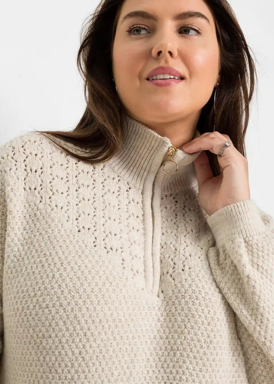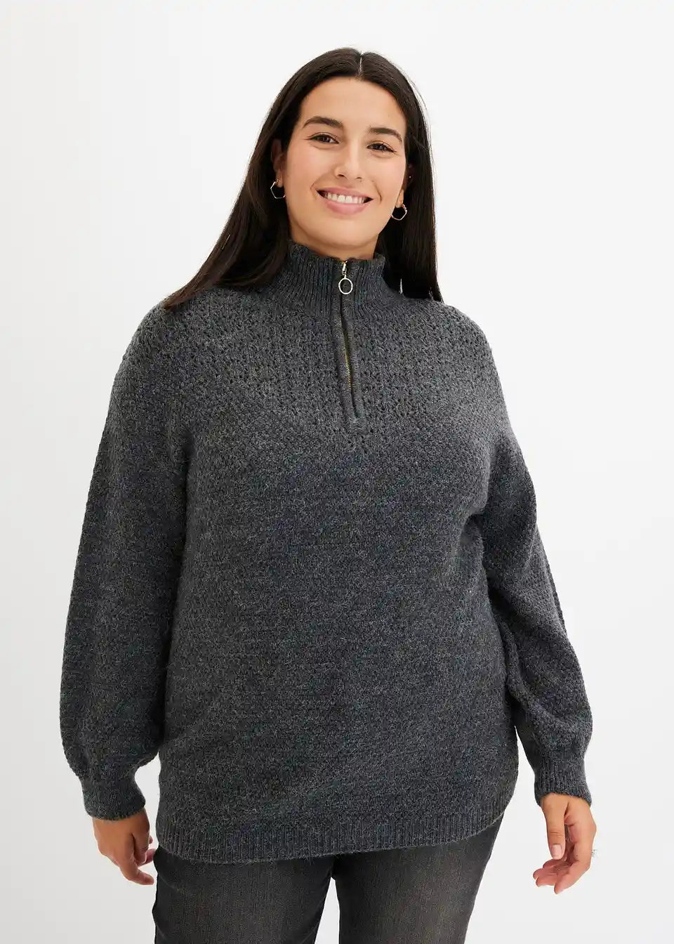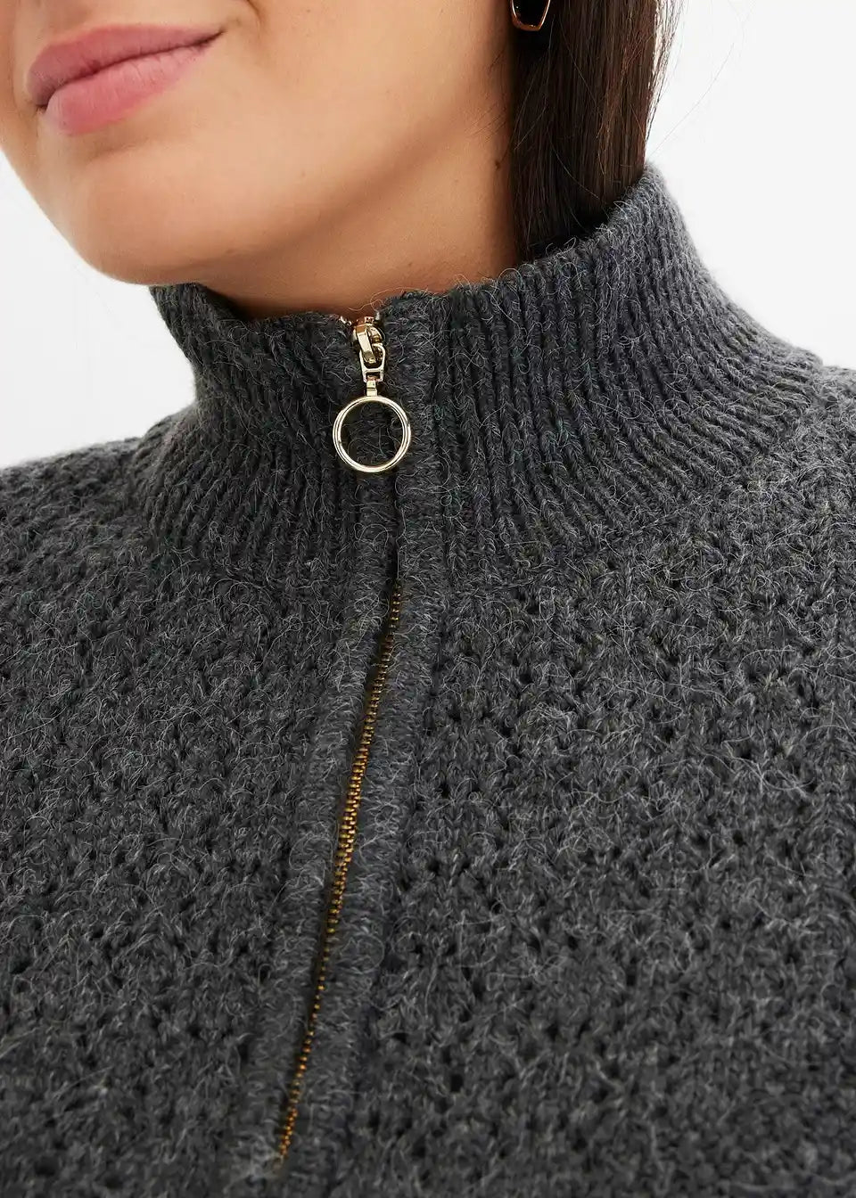 Pulover s visokim ovratnikom s patentnim zatvaračem i ažurom