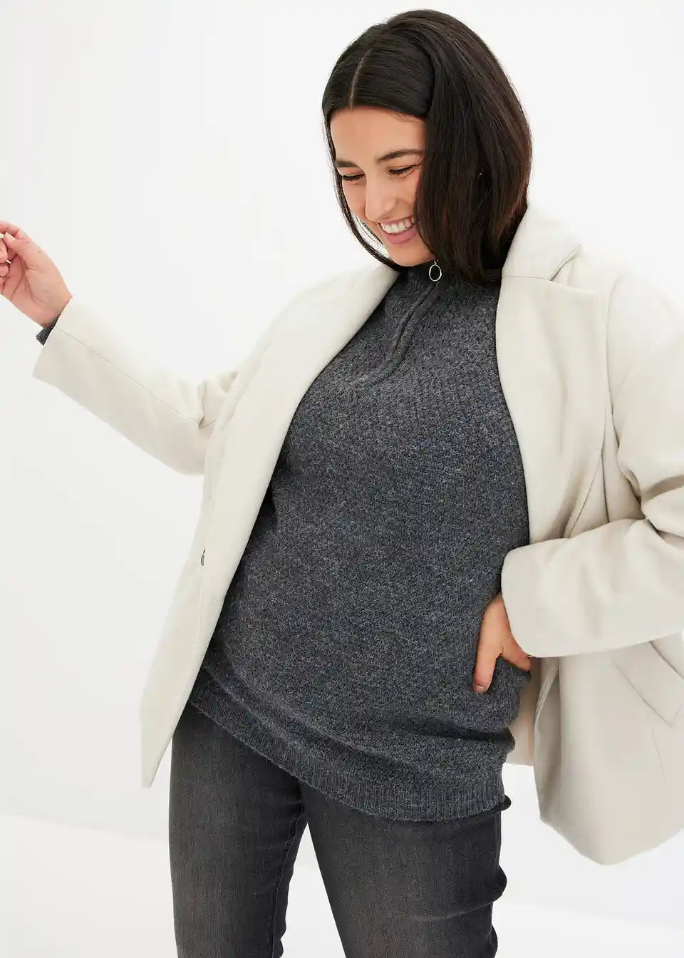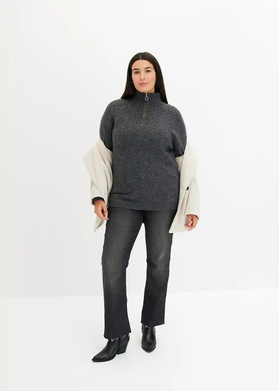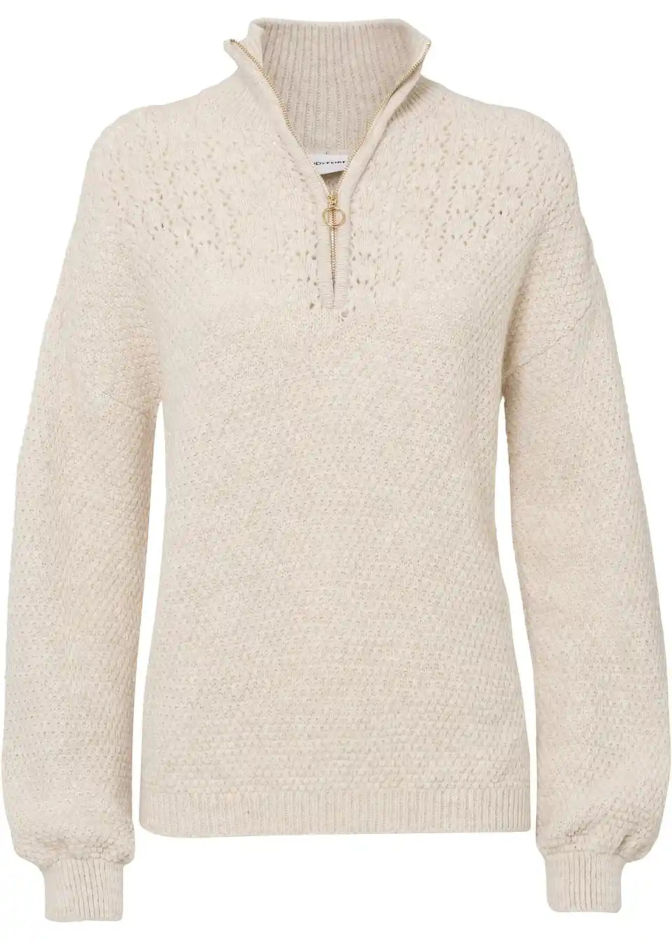 Pulover s visokim ovratnikom s patentnim zatvaračem i ažurom