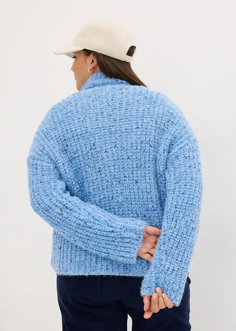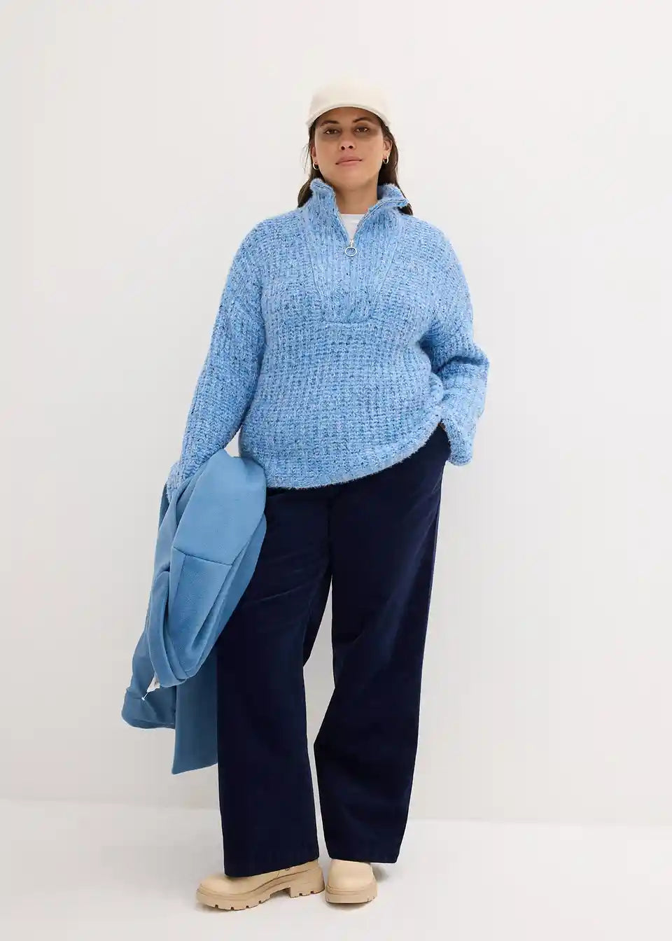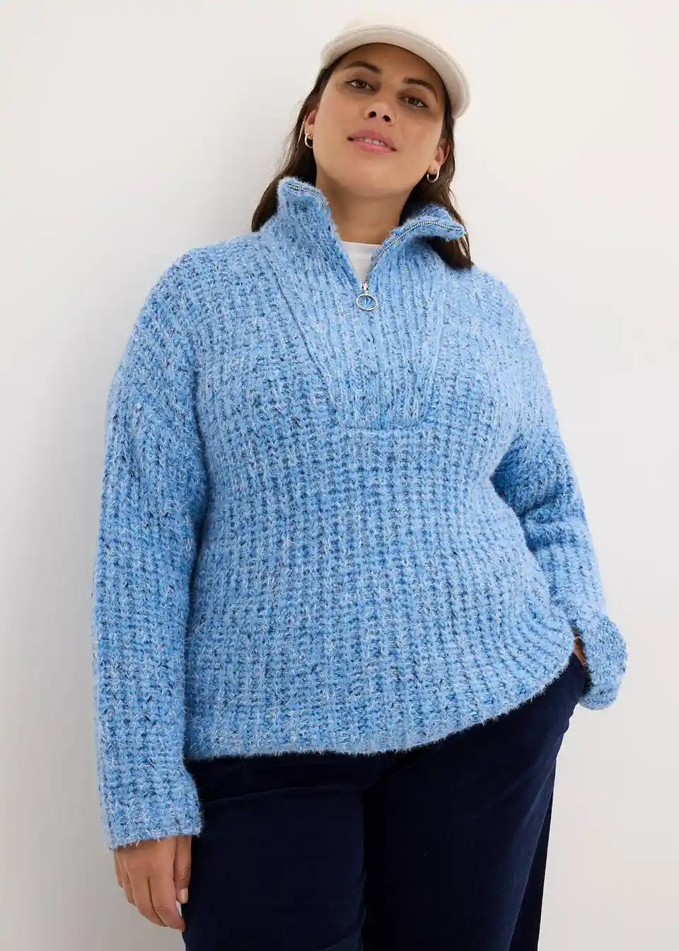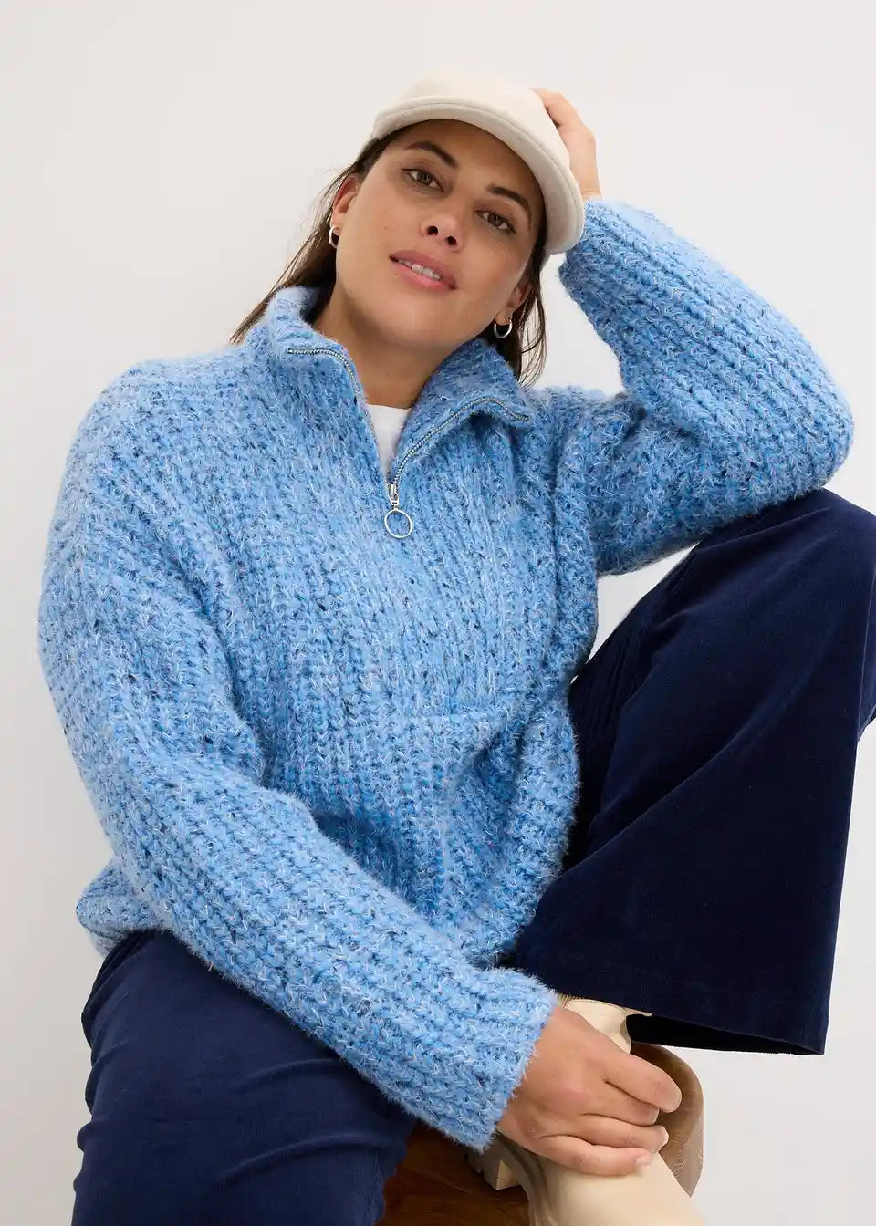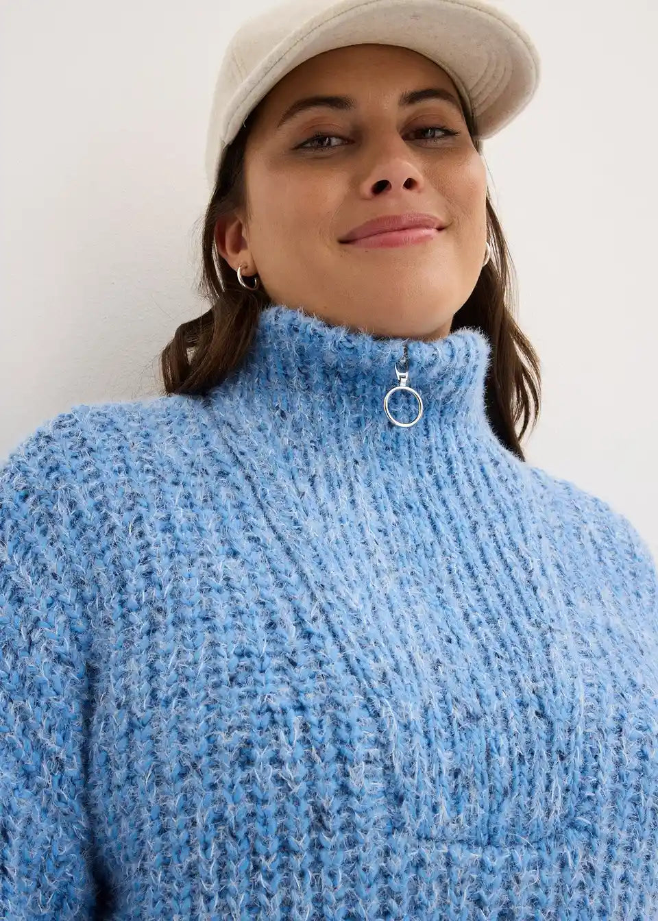 Pulover s visokim ovratnikom s patentnim zatvaračem s produženim ramenima