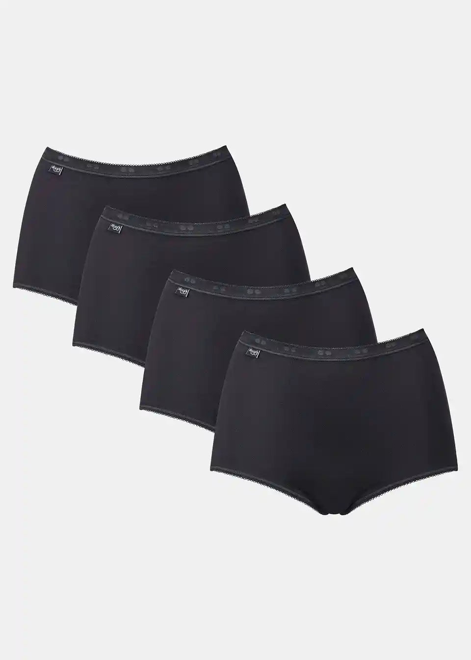 Paket od 4 izuzetno udobnih maxi slipova s optimalnom slobodom kretanja. Prilagodljivi, visokokvalitetni pamuk i posebno meki šavovi čine ove slipove savršenim suputnikom za cijeli dan. Svi slipovi su certificirani prema Oeko Tex Standard 100.