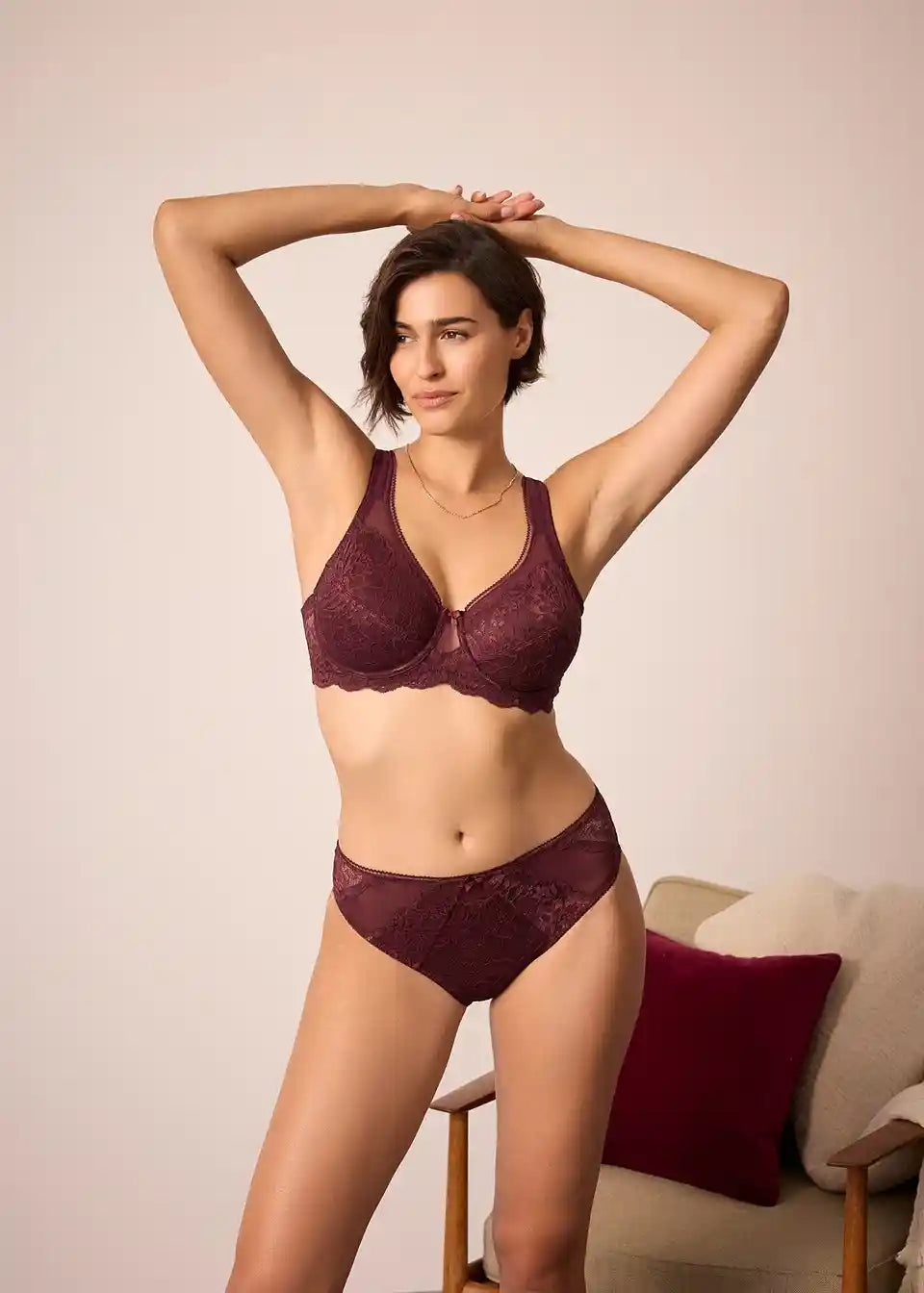 Materijal:gornji materijal i podstava: 80% poliamid (reciklirani), 20% elastan, čipka: 90% poliamid, 10% elastan, umetak: 90% poliamid, 10% elastan