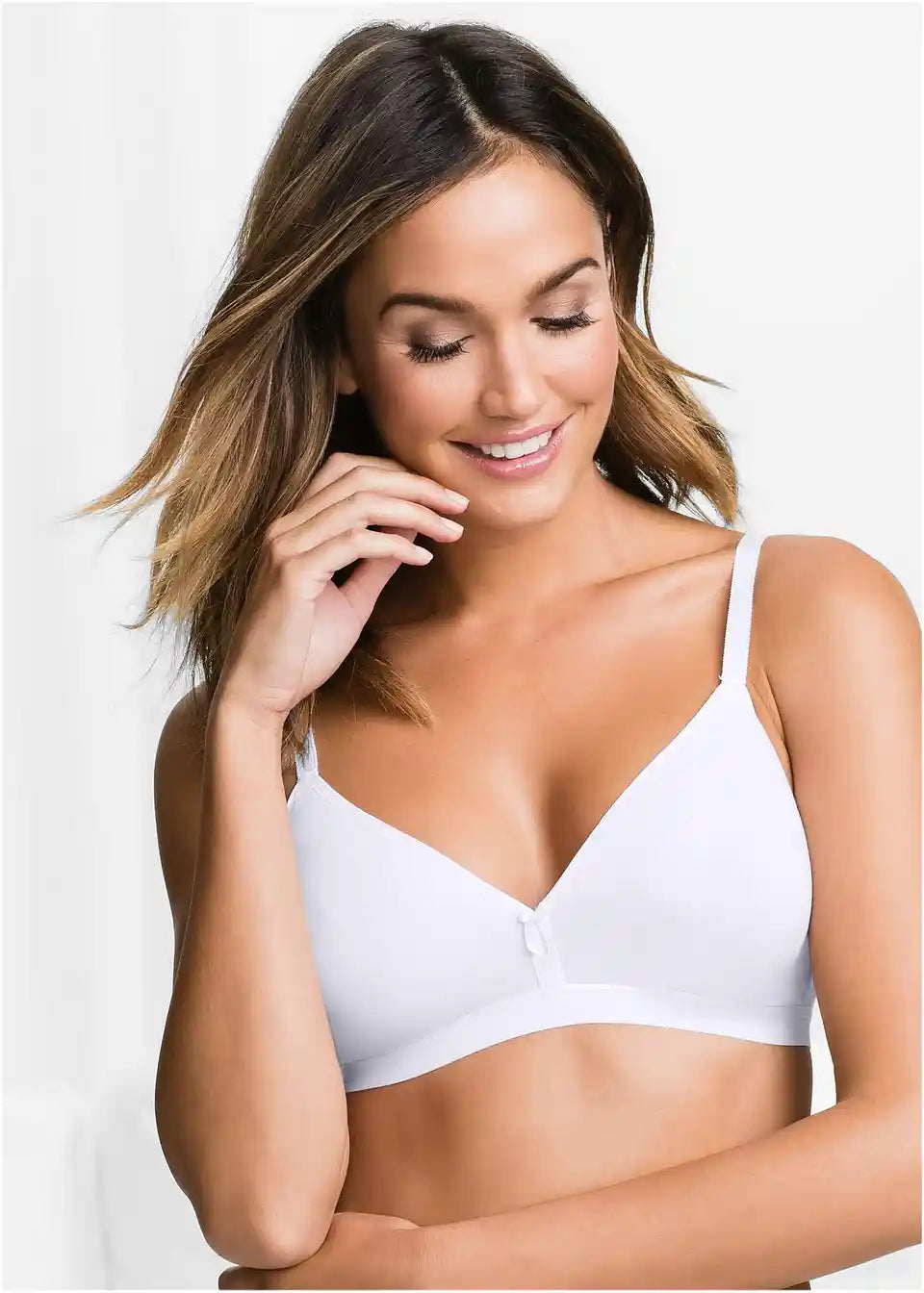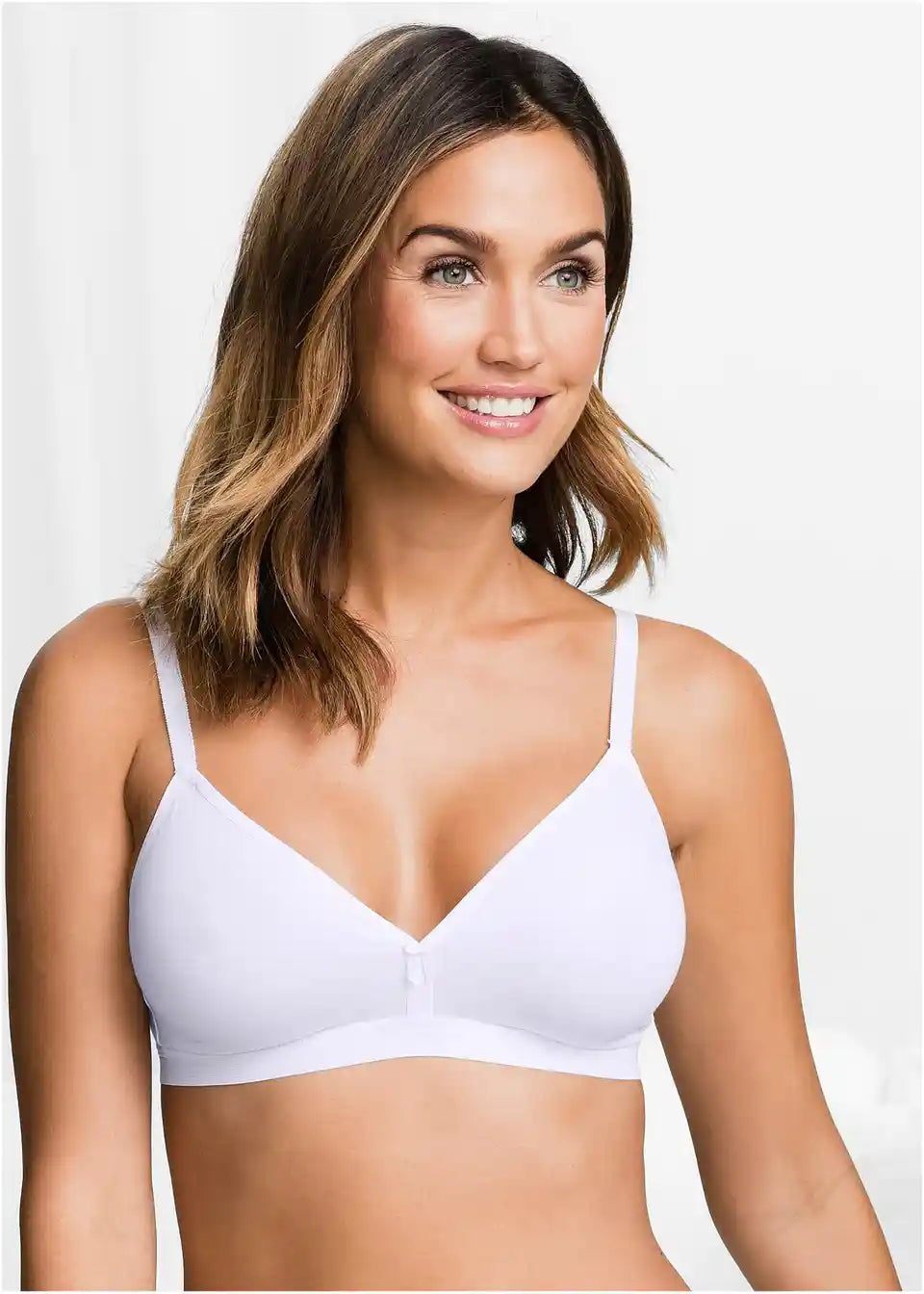 Zahvaljujući bešavnim, prethodno oblikovanim košaricama i organskom pamuku, grudnjak ugodno sjeda na kožu bez pritiska. Visoki rez košarica i uske naramenice dodatno ističu lijepi dekolte. Diskretni ukras je mašnica na sredini. Grudnjak bpc dizajna je bez žice i savršen je za nošenje ispod pripijene odjeće poput topova ili majica. U pakiranju od 3 komada dolazi u kombinacijama 2x bijela i 1x svijetloplava, 2x crna i 1x patlidžan te 1x crna, 1x bijela i 1x crvena.