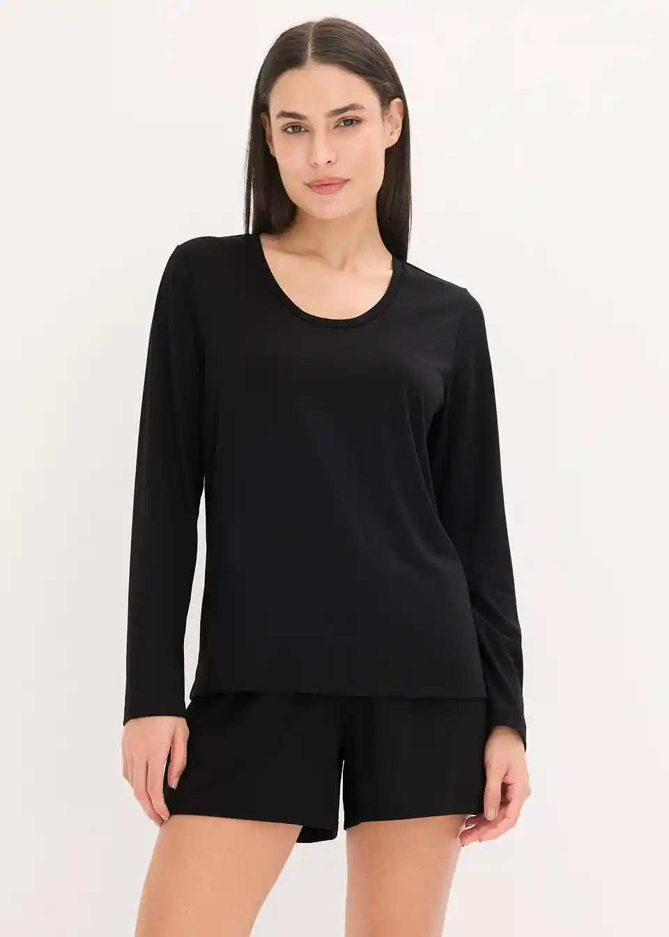 Udoban Loungewear Shorty s ležerno krojenom majicom dugih rukava i kratkim hlačama