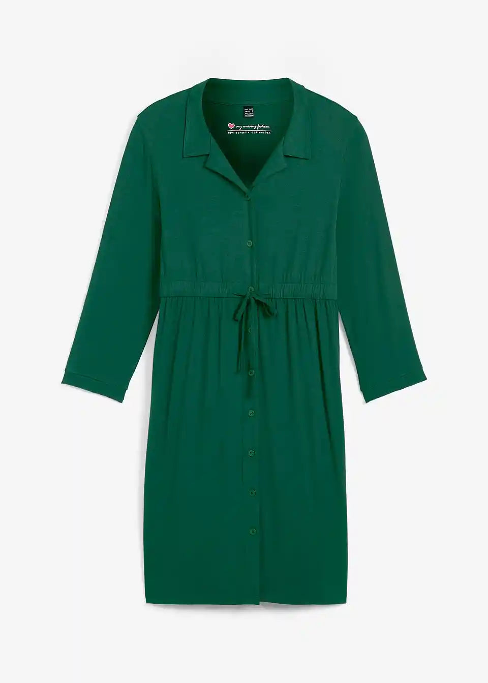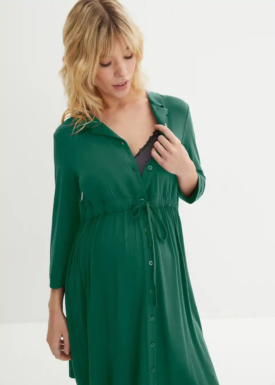 Košulja-haljina od mekog viskoznog džerseja iz održivog uzgoja. S ovratnikom i 3/4 rukavima. Cijelom dužinom dugmad na kopčanje omogućuju lako dojenje i olakšavaju oblačenje i svlačenje. S elastičnim pojasom za vezanje ispod grudi.