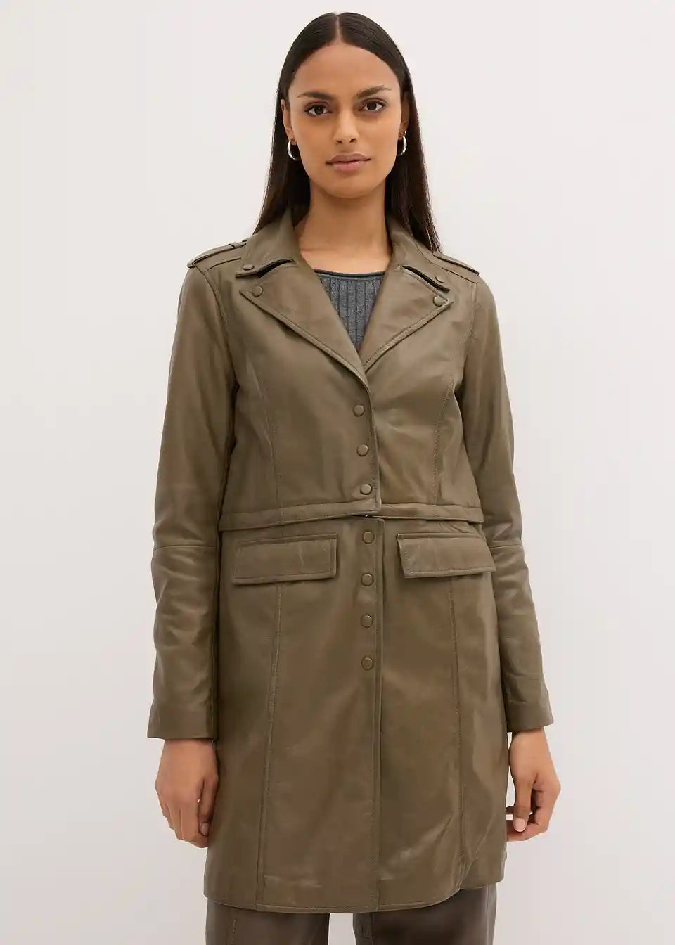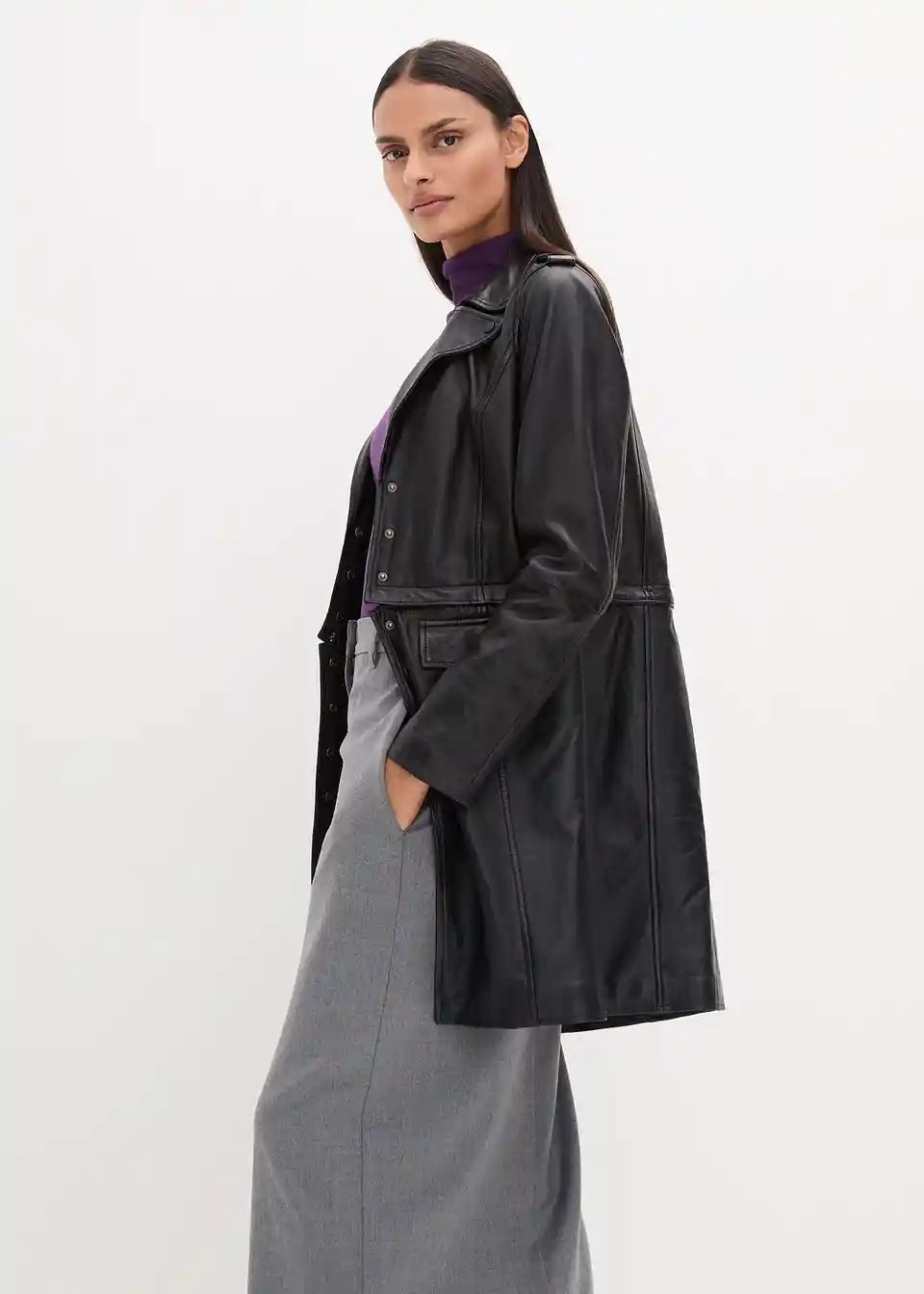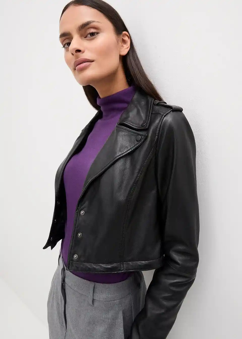 Kožna jakna s opcijama nošenja: u kratkoj verziji kao biker jakna ili u dugoj verziji kao baloner