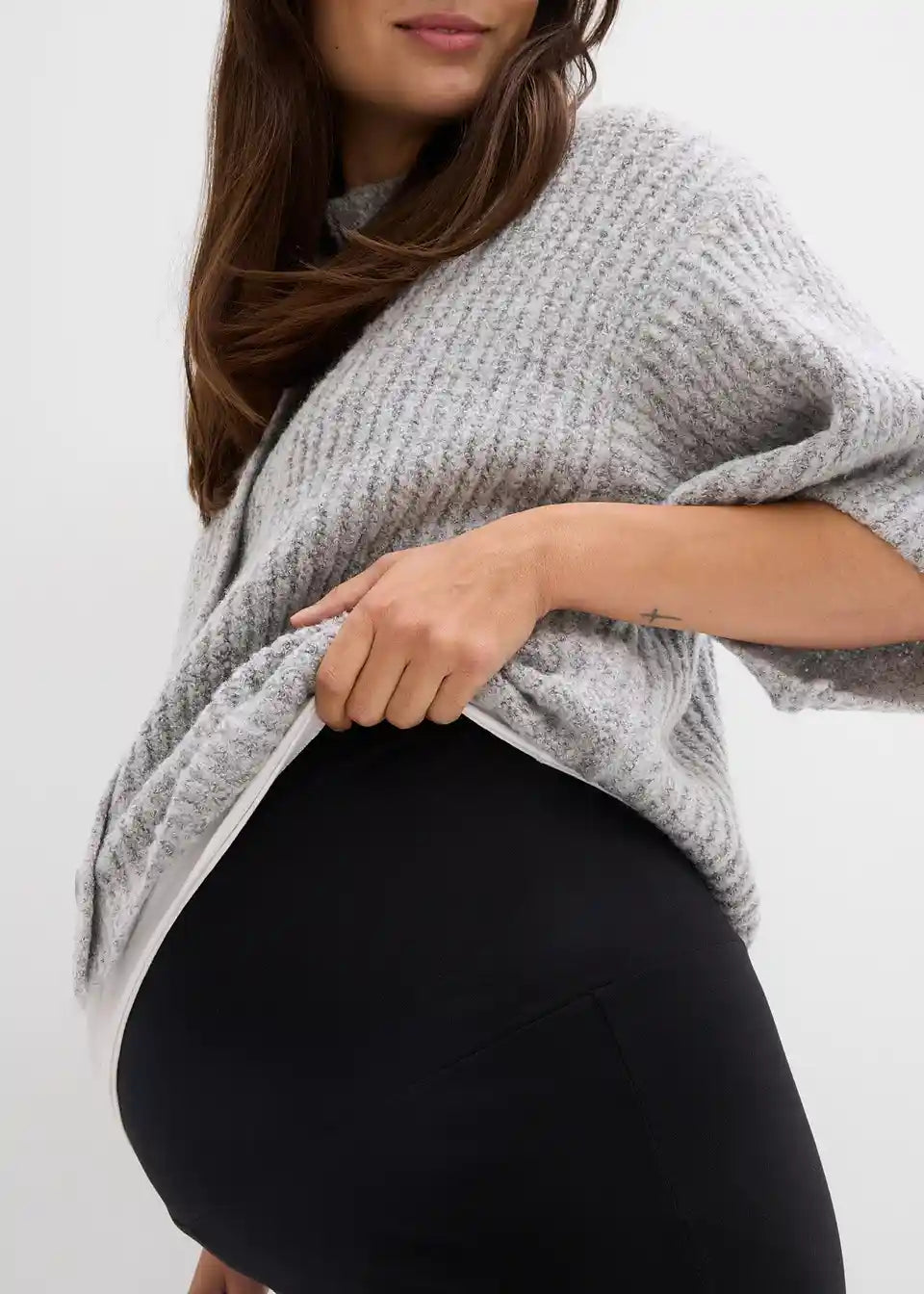 Udobne tajice ravnog kroja od organskog pamuka s malim udjelom elastana za visoku udobnost nošenja. Mekani pojas za trbuh može se preklopiti i tako prilagoditi pojedinom mjesecu trudnoće, zbog čega su hlače nosive i nakon trudnoće. S modernom, ravnom linijom nogavica.