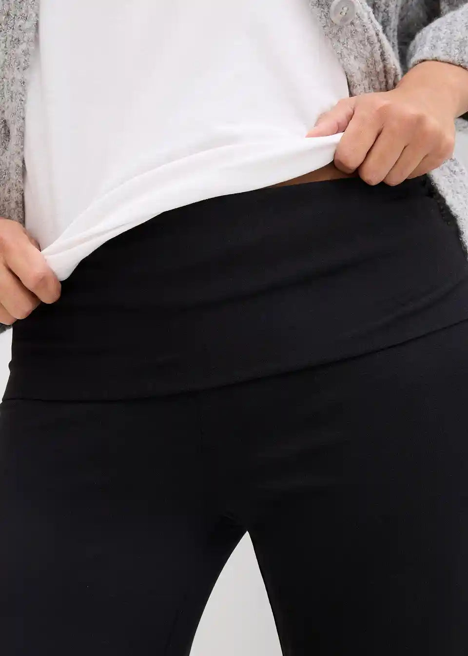 Hlače za trudnoću i poslije poroda od jerseya sa zavrnutim strukom