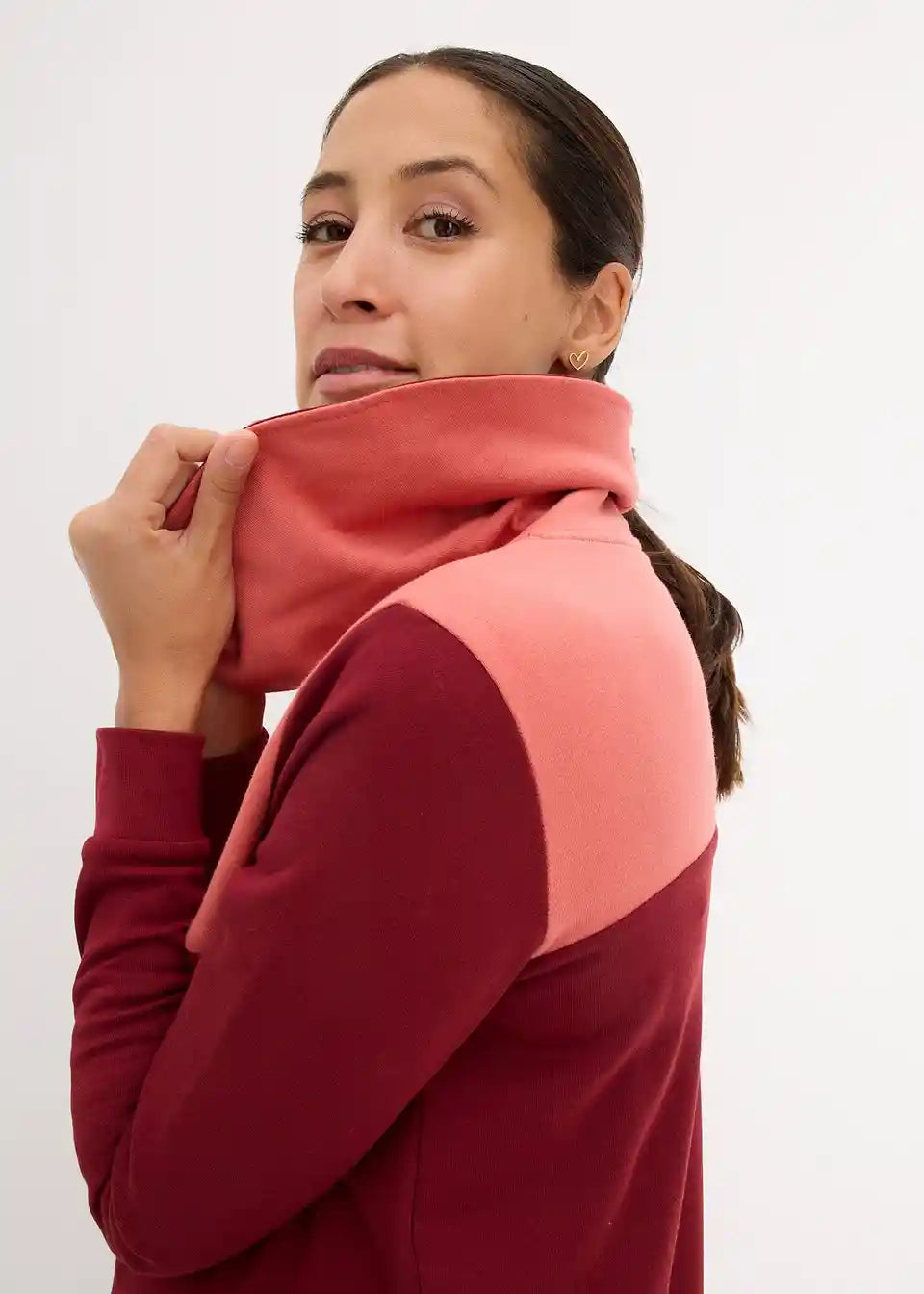 Skriveni patentni zatvarač ispod grudi, koji se može otvoriti s obje strane, omogućuje diskretno dojenje za majku i dijete. S velikim ovratnikom.