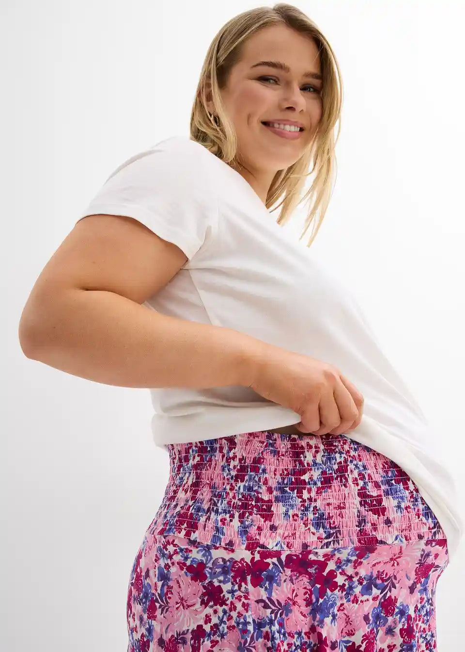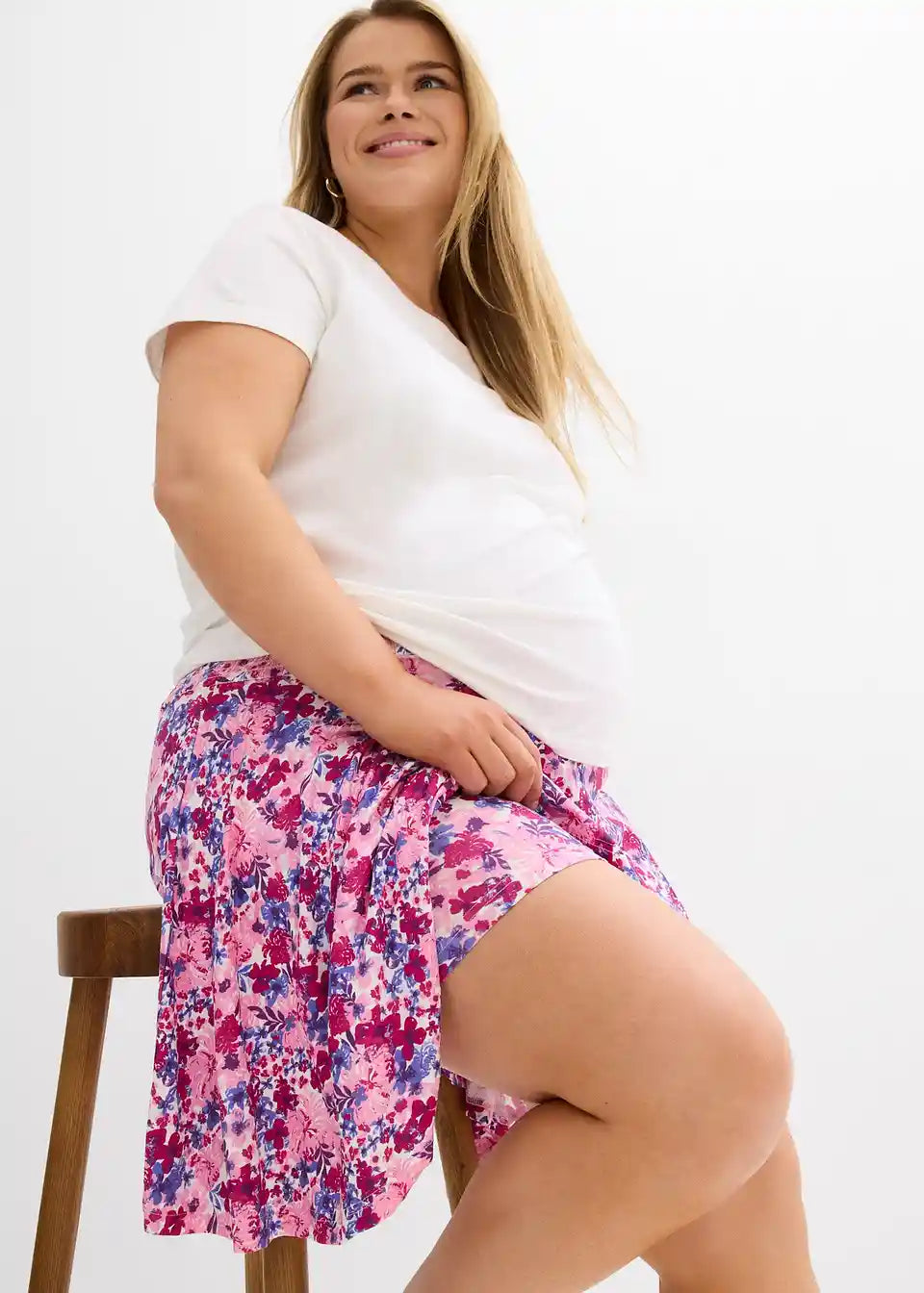 Trudničke suknja-hlače od Jerseya s viskozom i malim udjelom rastezljivog materijala nude visoku razinu udobnosti. Na prvi pogled suknja-hlače izgledaju kao suknja, ali nude praktičnu udobnost hlača. Elastični smock pojas prilagođava se rastućem trudničkom trbuhu i istovremeno nudi fleksibilnost za razdoblje nakon poroda.