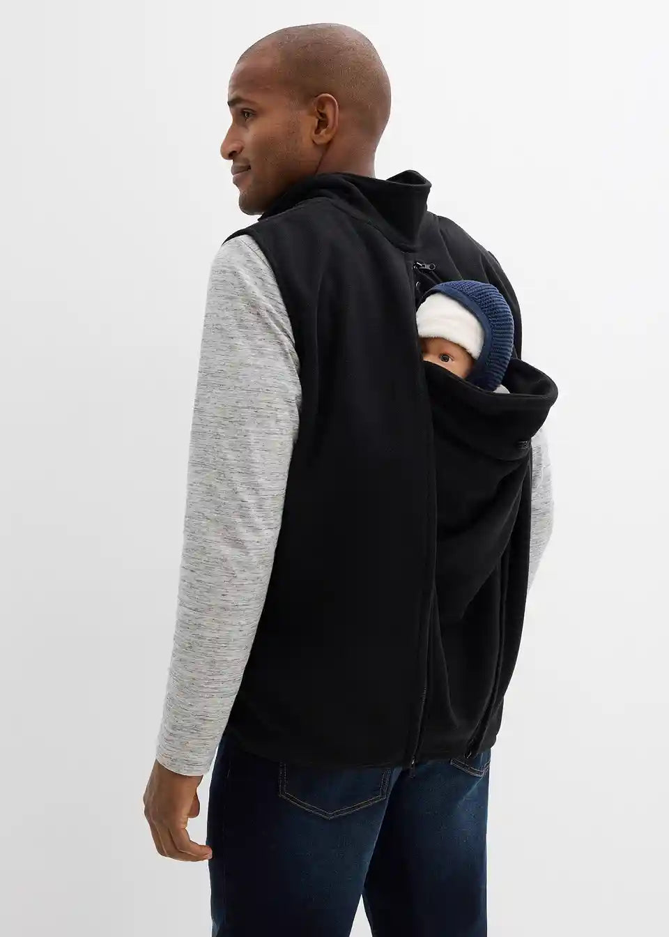 Funkcionalni prsluk sa stojećim ovratnikom i umetkom za nošenje bebe. Umetak za nošenje može se pričvrstiti i sprijeda i na leđima. Funkcija nošenja na leđima posebno je pogodna za stariju i težu djecu. Umetak za bebu ima mali oslonac za glavu s podesivom uzicom. Predmeti za svakodnevnu upotrebu mogu se sigurno nositi u džepovima s patentnim zatvaračem. Bez umetaka može se nositi kao običan prsluk.