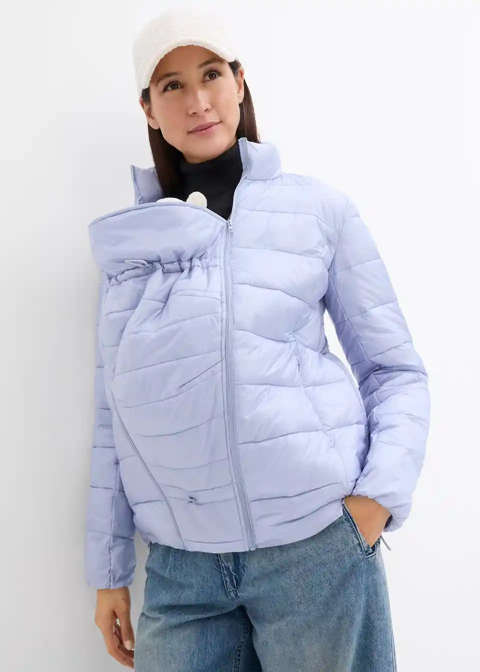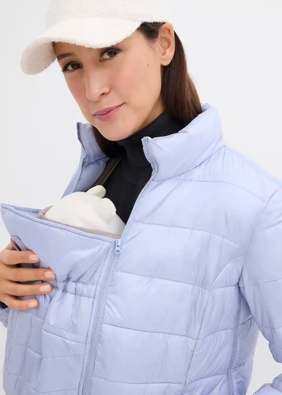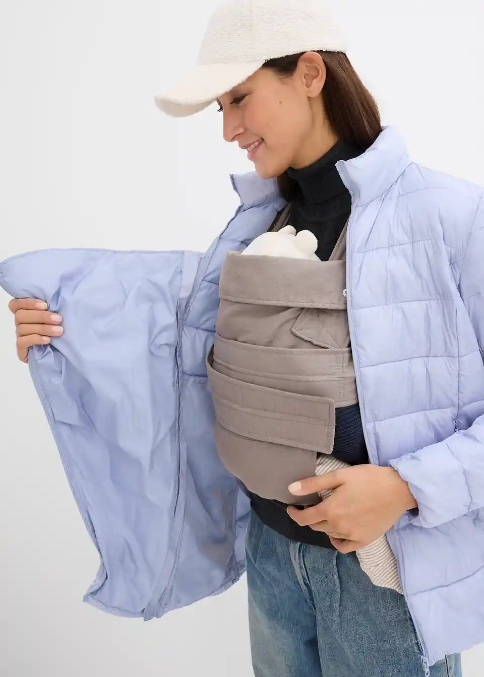 Ultralagana podstavljena trudnička jakna s umetkom za nošenje bebe. S bočnim patentnim zatvaračima za podešavanje širine, koji omogućuju nošenje kako tijekom trudnoće tako i nakon nje. S patentnim džepovima. Priložena vrećica omogućuje jednostavno spremanje jakne za nošenje. Tako je stalni pratitelj, bilo u kolicima, torbi za pelene ili ruksaku.