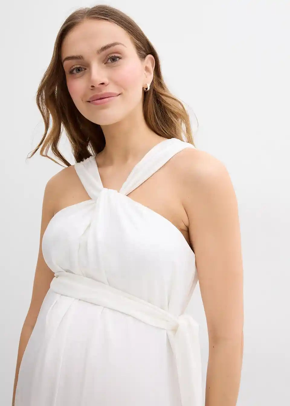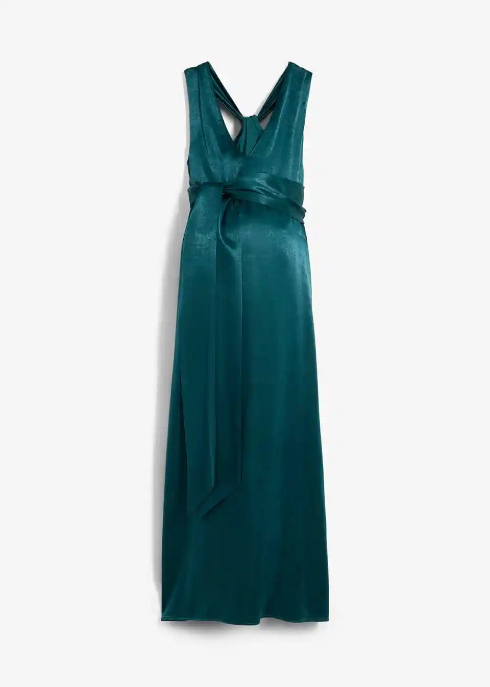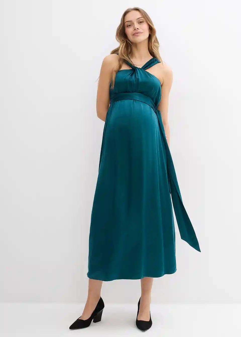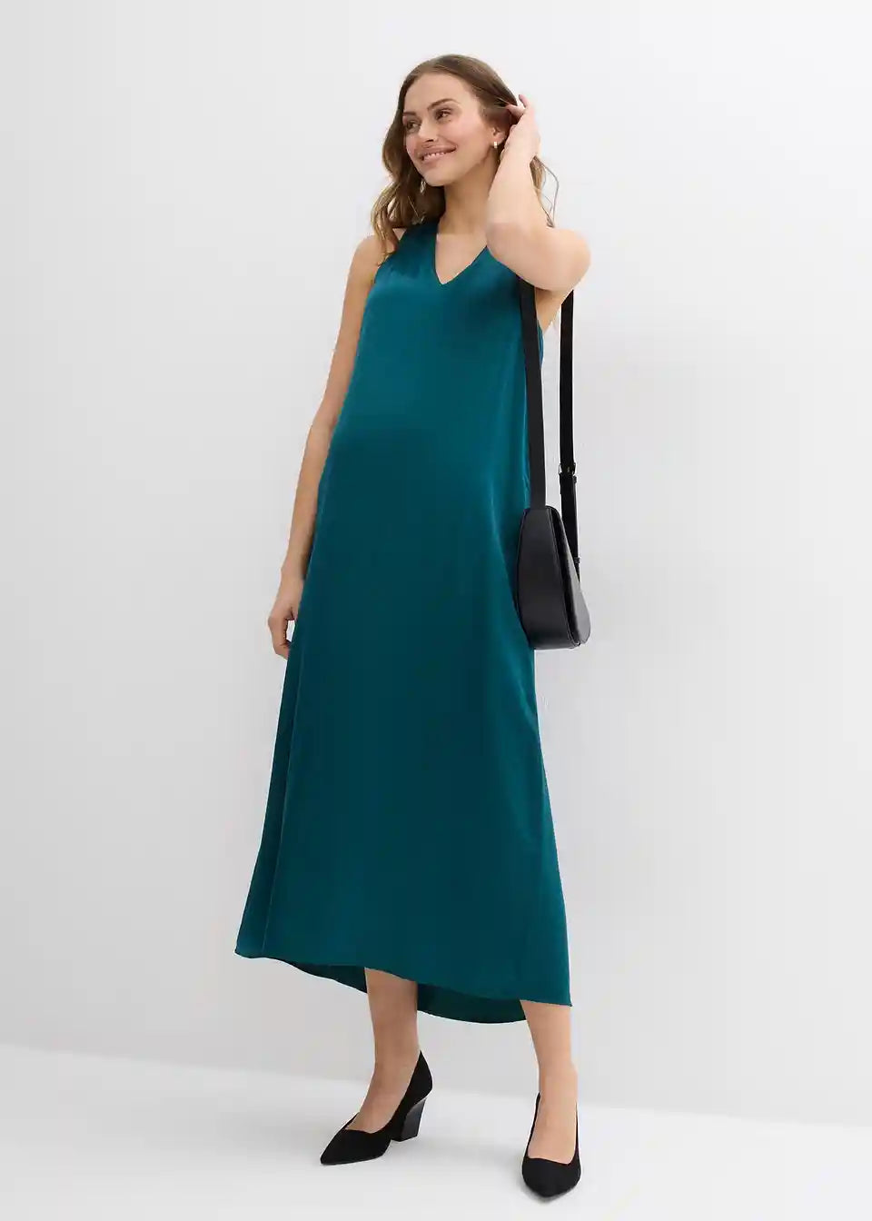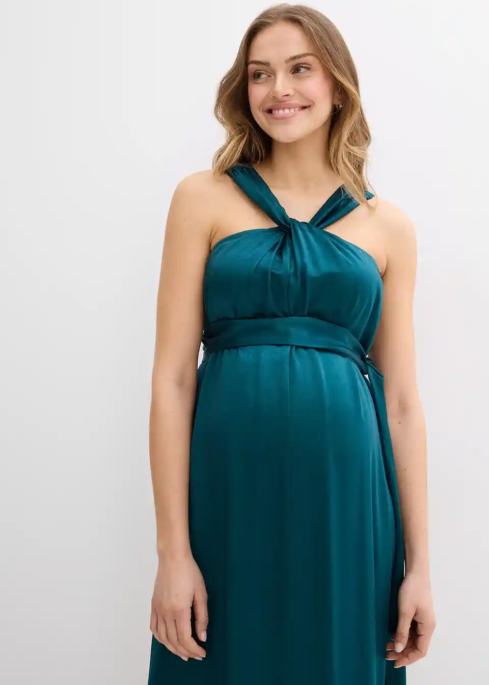 Ova duga 4-u-1 haljina za trudnice izrađena je od mekane, lepršave viskozne mješavine sa svilenkastim sjajem i nudi različite mogućnosti nošenja: može se nositi s čvor detaljem sprijeda ili alternativno s V-izrezom. Uz to, silueta se može oblikovati priloženim odvojivim pojasom - prilagođeno figuri ili ležerno. Gornji dio uključuje lagano podupirući umetak od džerseja.