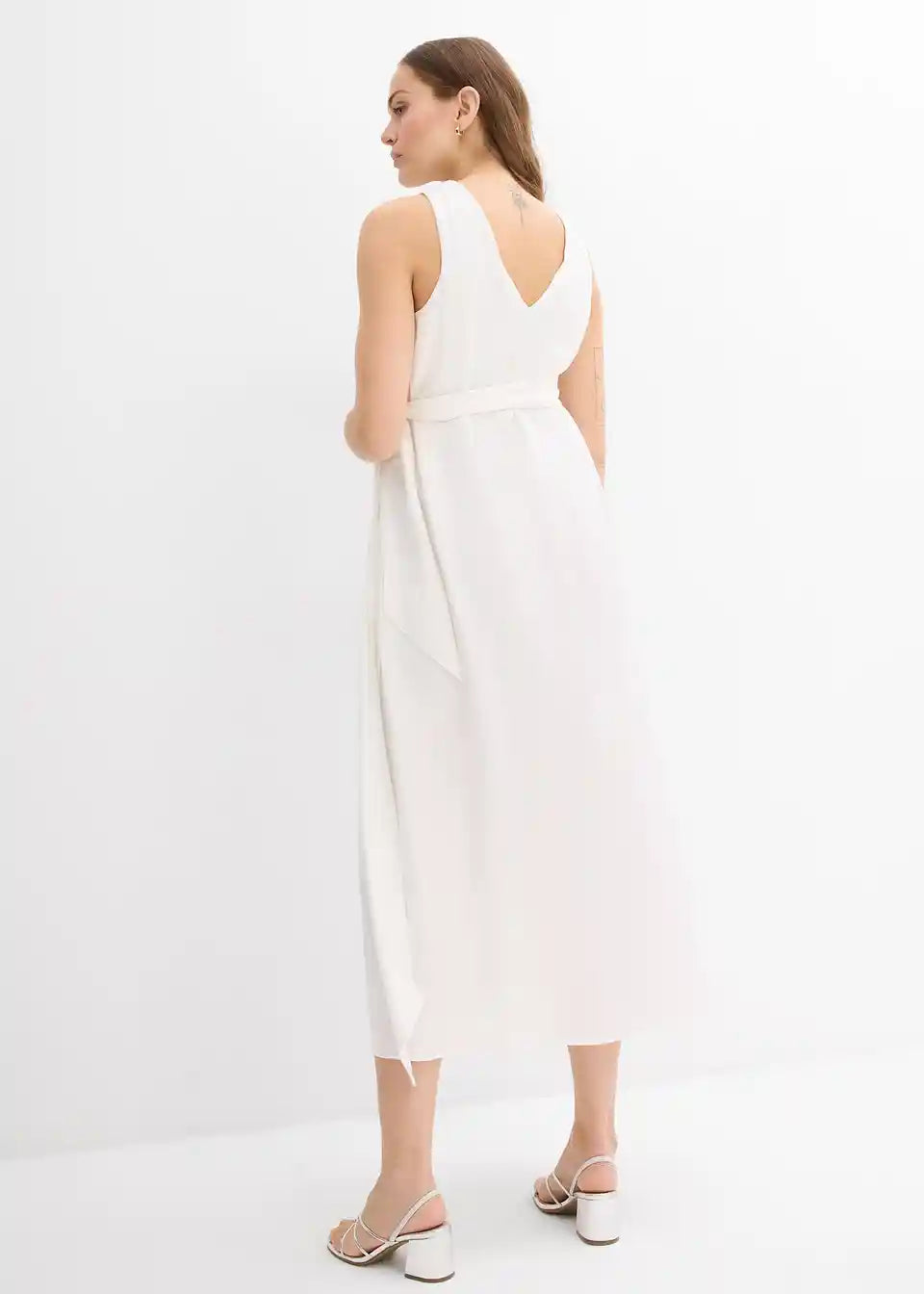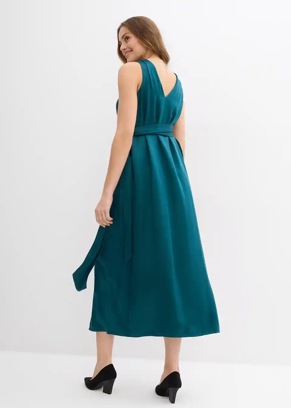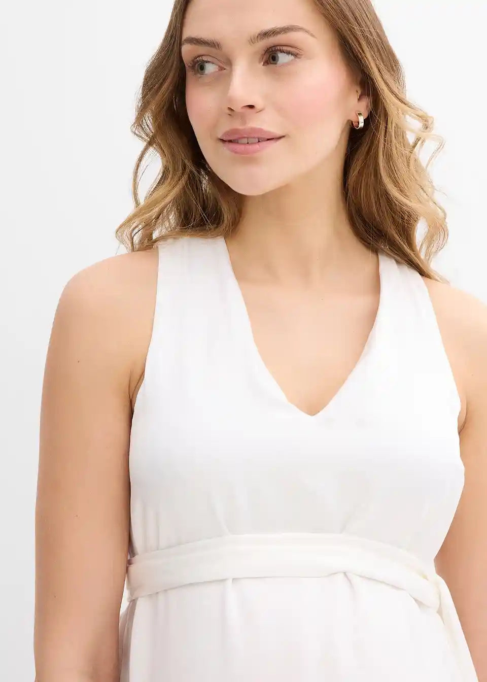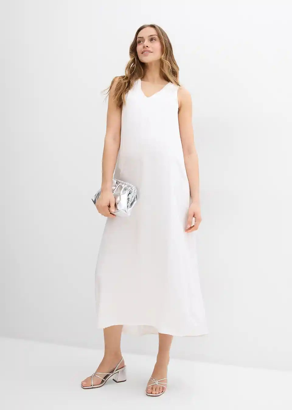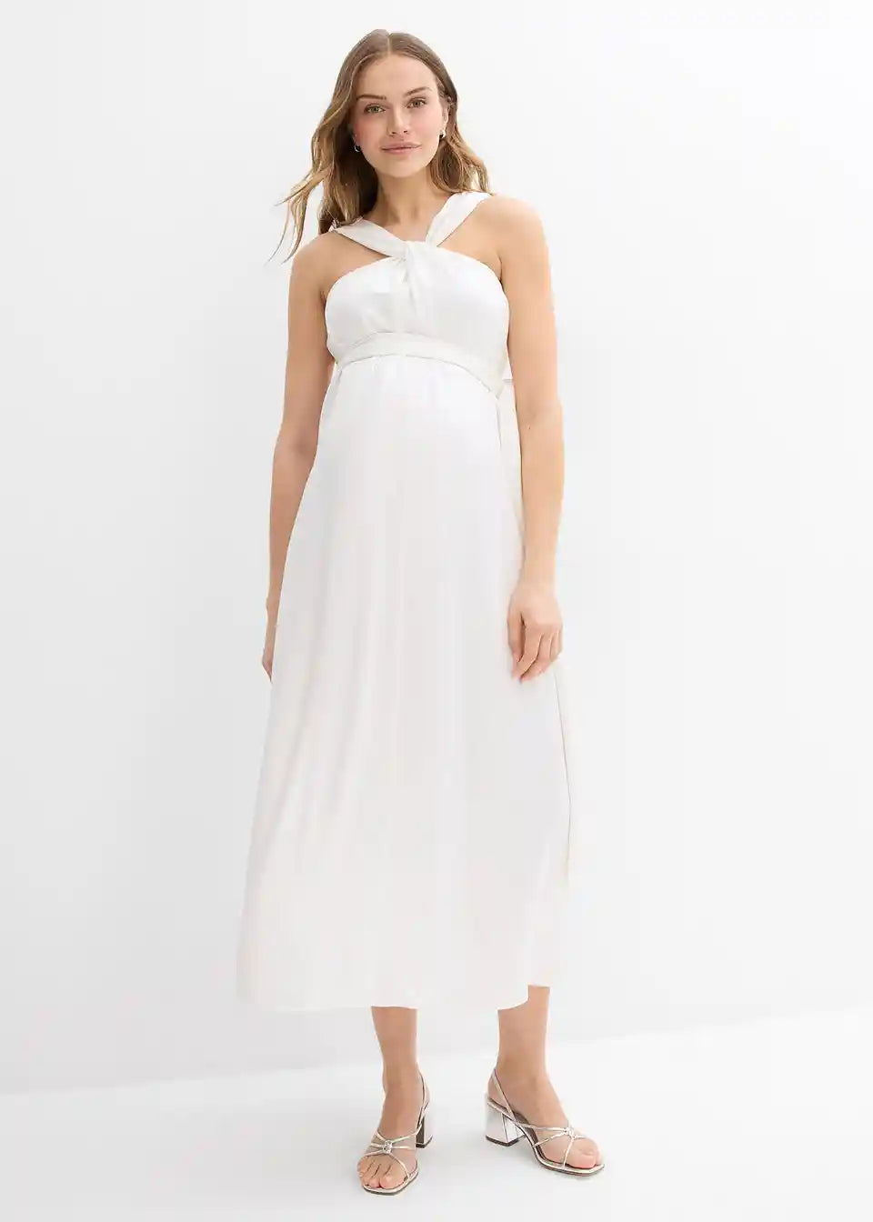 Ova duga 4-u-1 haljina za trudnice izrađena je od mekane, lepršave viskozne mješavine sa svilenkastim sjajem i nudi različite mogućnosti nošenja: može se nositi s čvor detaljem sprijeda ili alternativno s V-izrezom. Uz to, silueta se može oblikovati priloženim odvojivim pojasom - prilagođeno figuri ili ležerno. Gornji dio uključuje lagano podupirući umetak od džerseja.