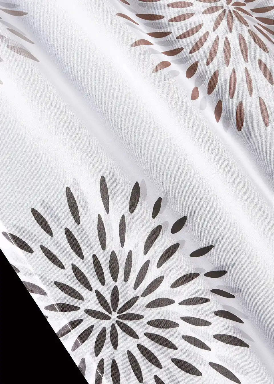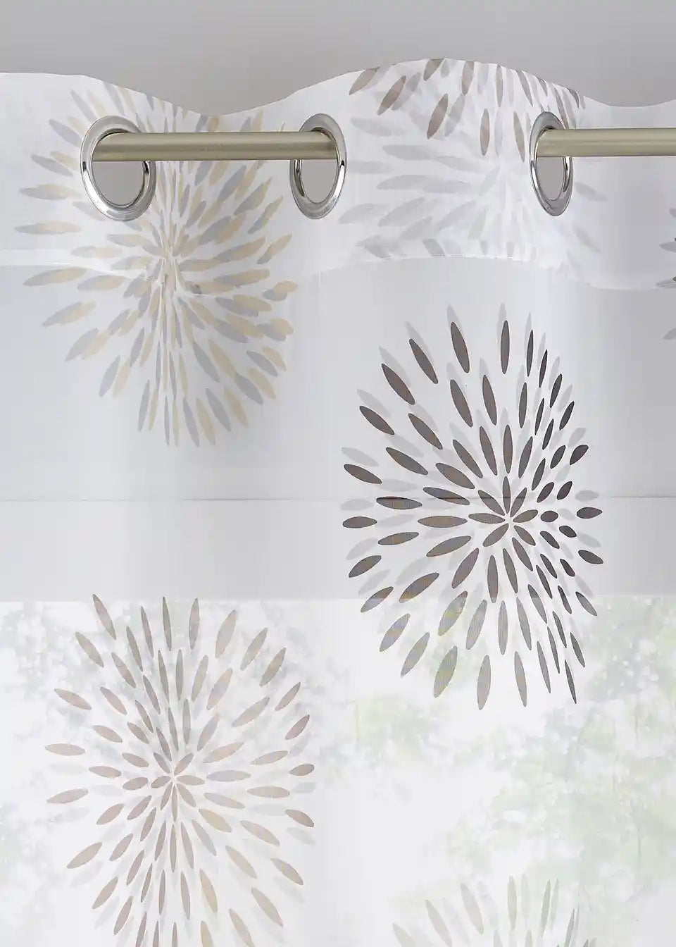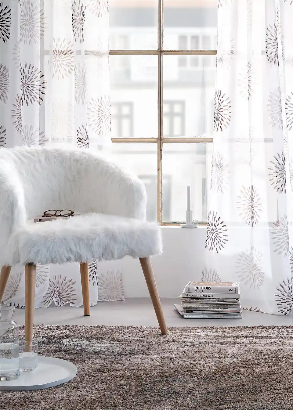 Lagano i moderno u isto vrijeme: naša prozirna zavjesa od fine voile kvalitete vješto naglašava moderan stil uređenja svojim upečatljivim motivima krugova. Dom postaje svijetao i ugodan - prozirna tkanina s tiskom propušta obilje svjetla. Još jedna prednost naše zavjese: materijal je periv i vrlo jednostavan za održavanje.