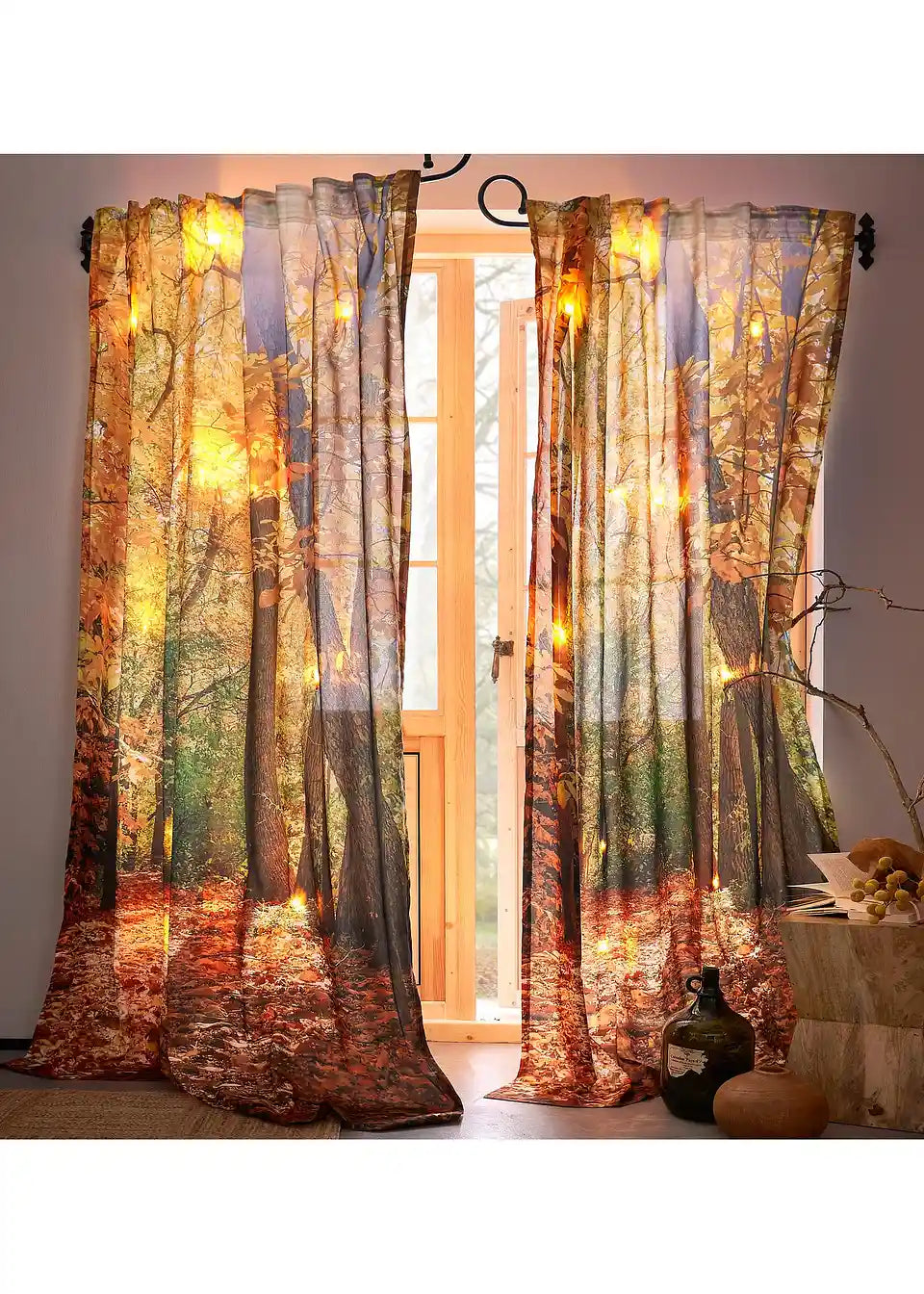 Zavjesa s jesenskim printom i LED lampicama (broj 10 komada) donosi ugodnu atmosferu na tvoj prozor. Dimenzije zavjese su približno: 230 cm visine i 135 cm širine. Isporuka bez baterija (potrebne 2x Micro AAA).