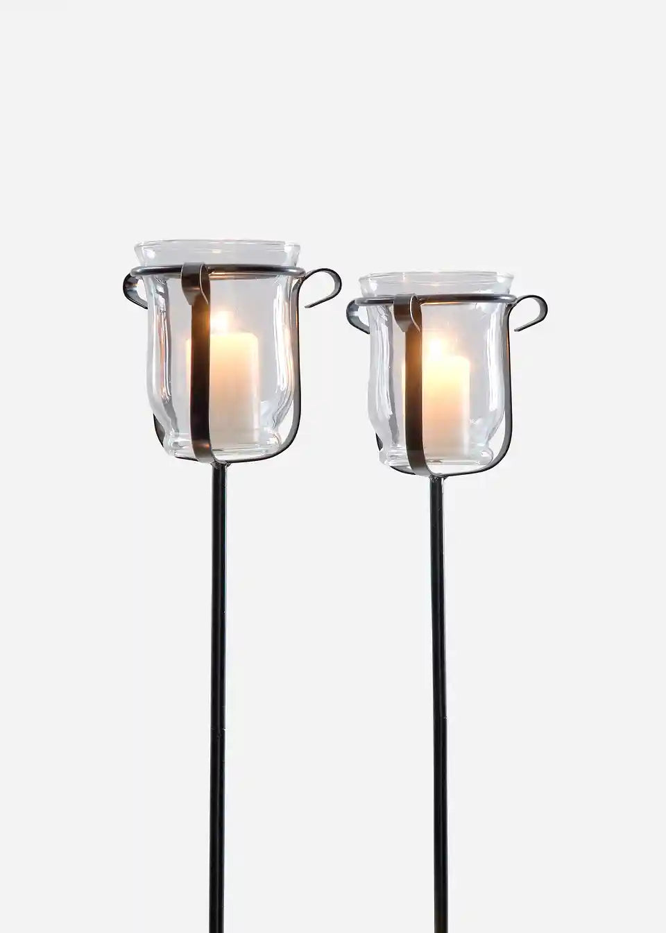Ukrasni štab za vrt sa staklenim svijećnjakom (2 komada)