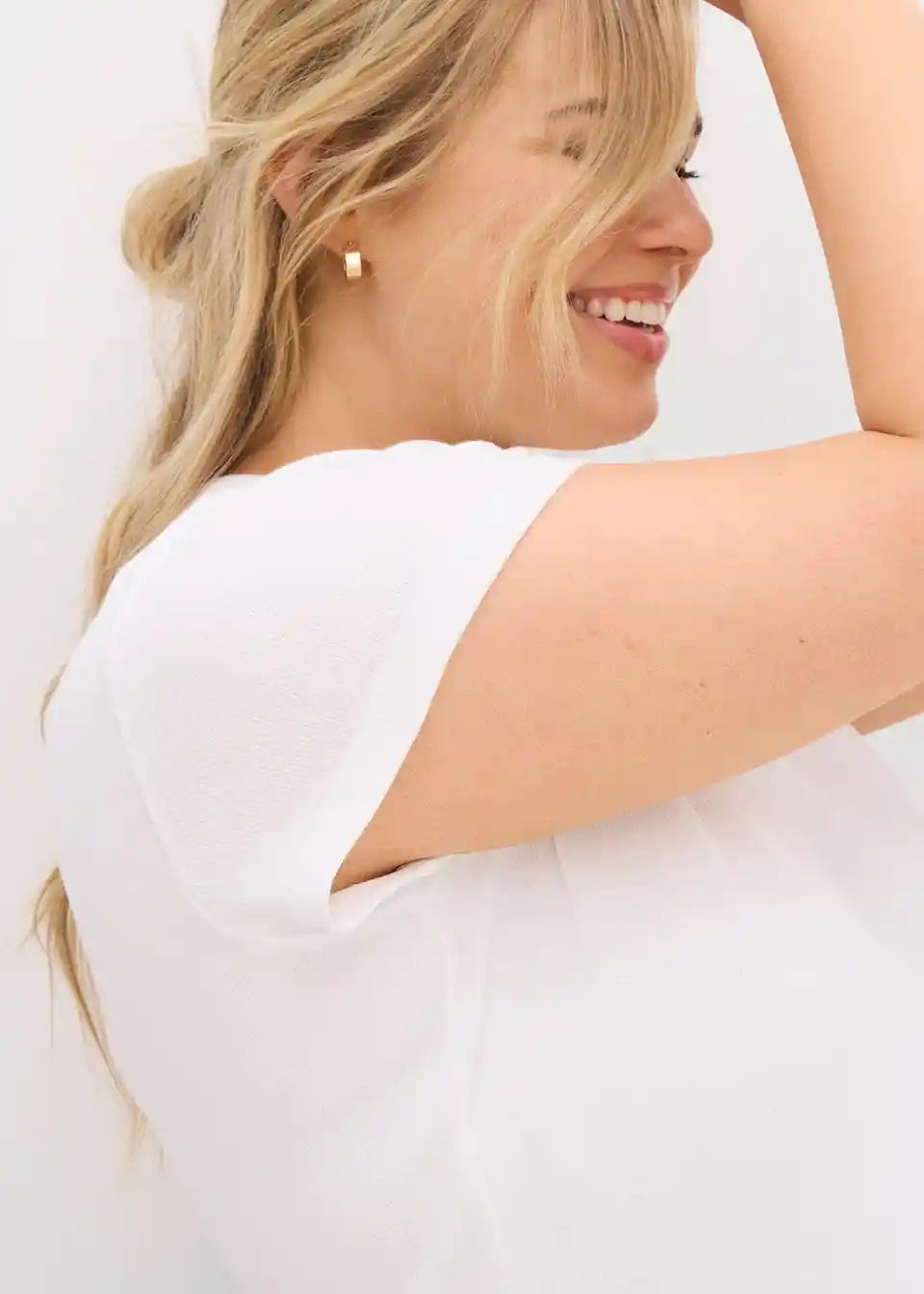 Udobna rebrasta majica s kratkim rukavima od organskog pamuka i malom stojećom kragnom. Duljina u vel. 40/42 cca 66cm, perivo u perilici.