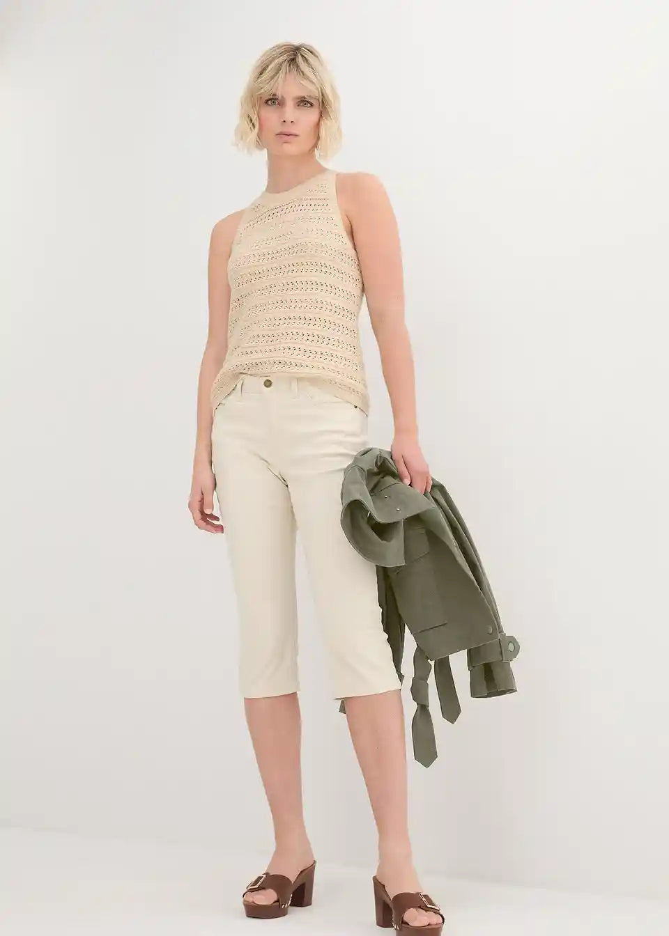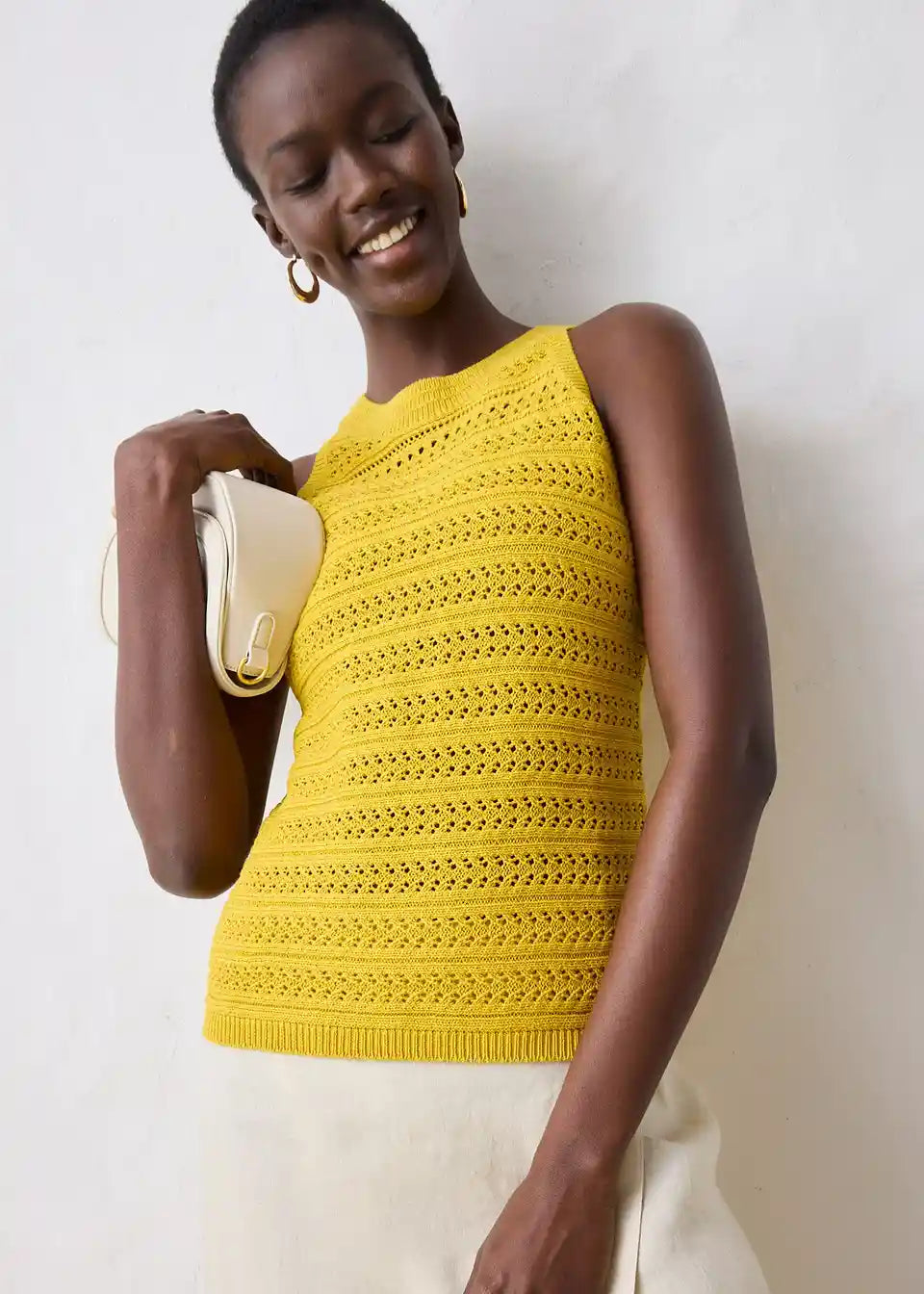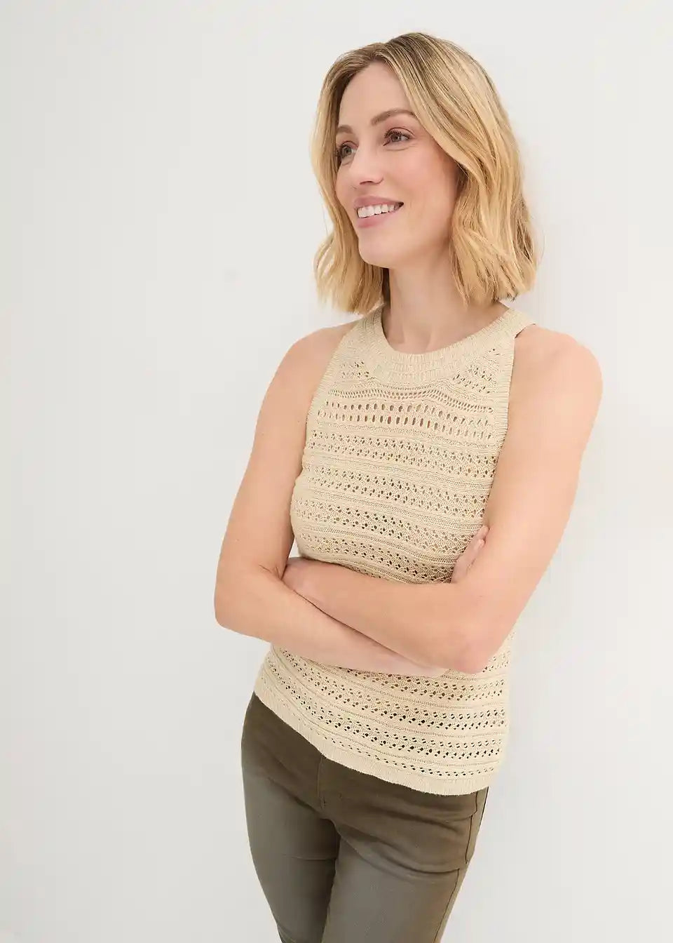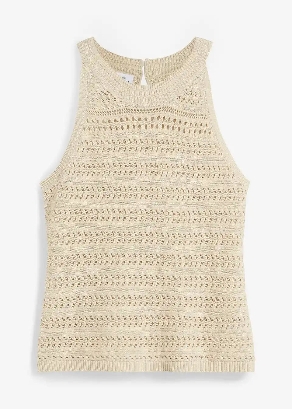 Pletena majica bez rukava s ažur uzorkom i udjelom lana