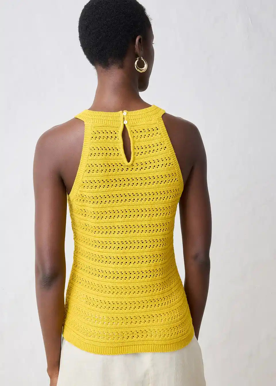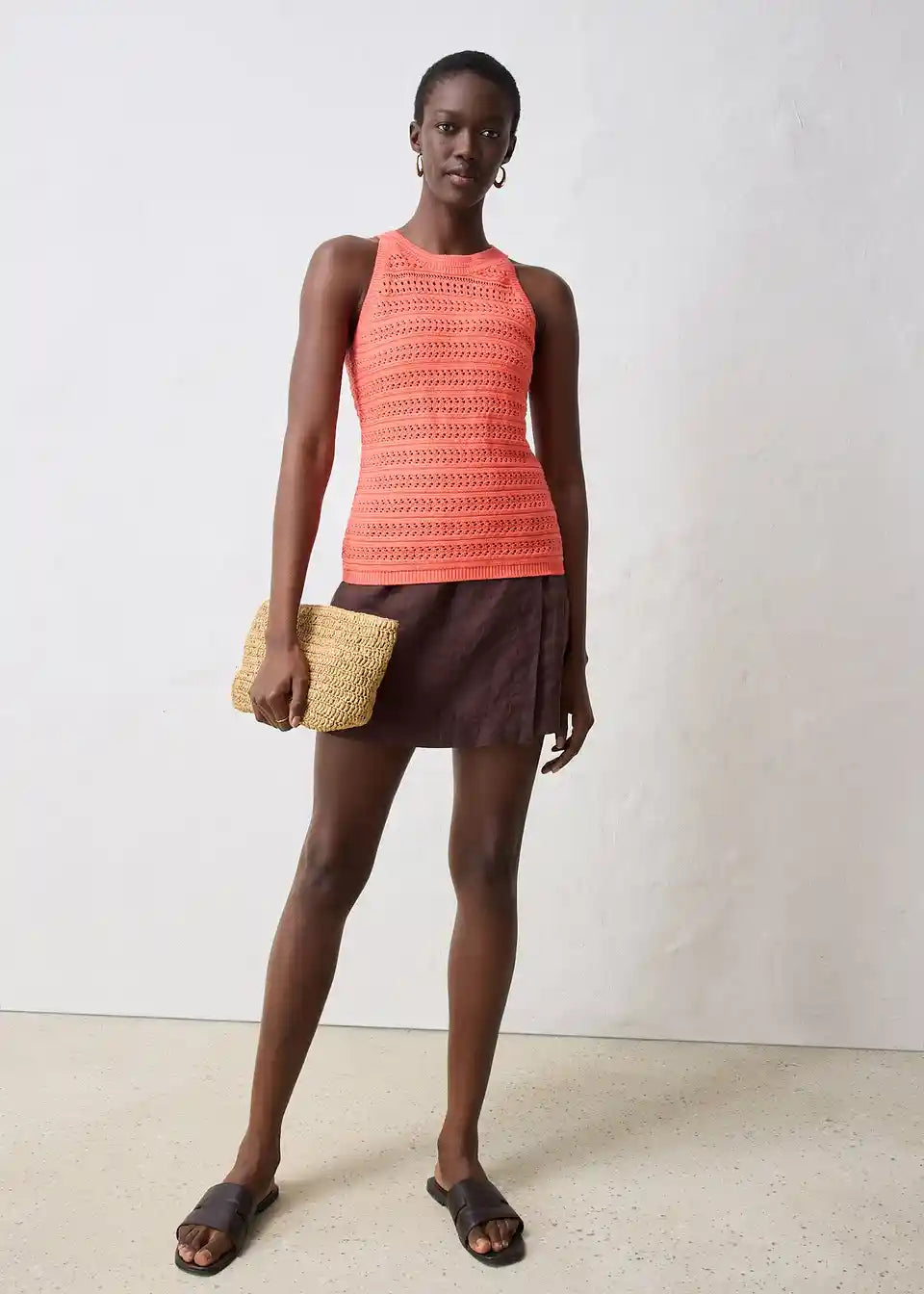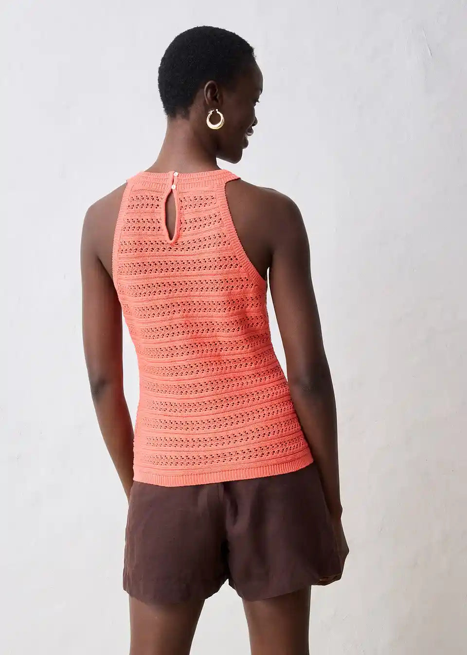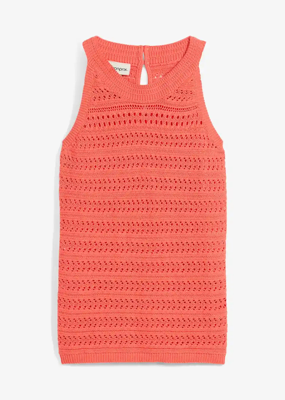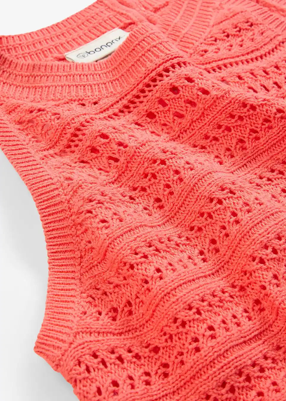 Pletena majica bez rukava s ažur uzorkom i udjelom lana
