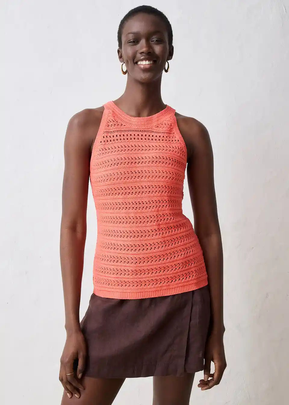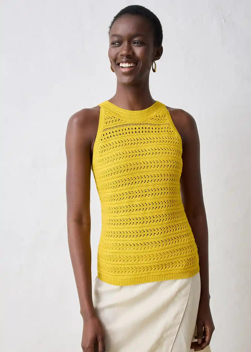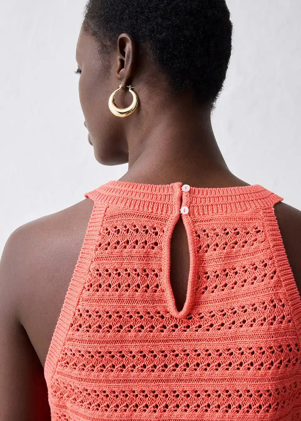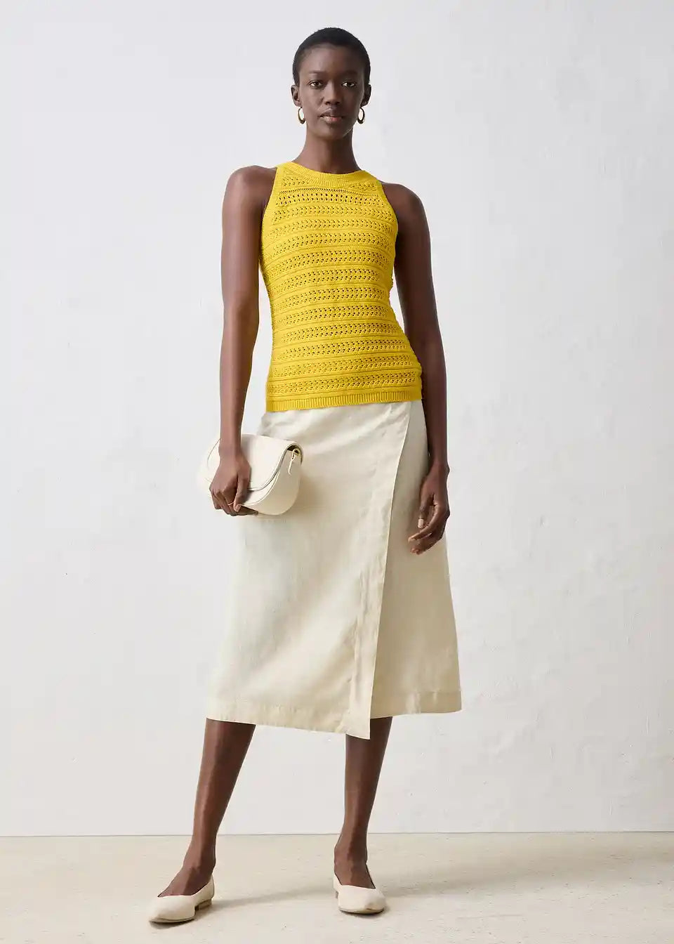 Pletena majica bez rukava s ažur uzorkom i udjelom lana