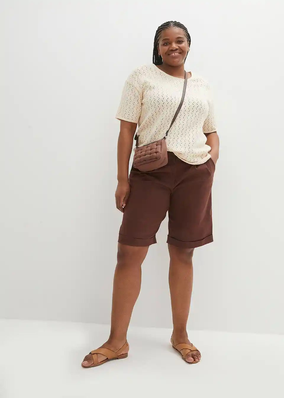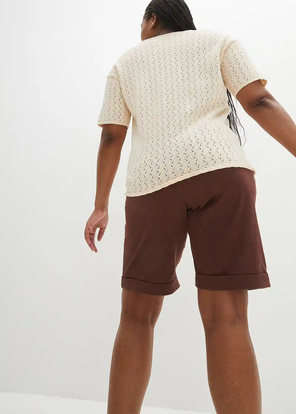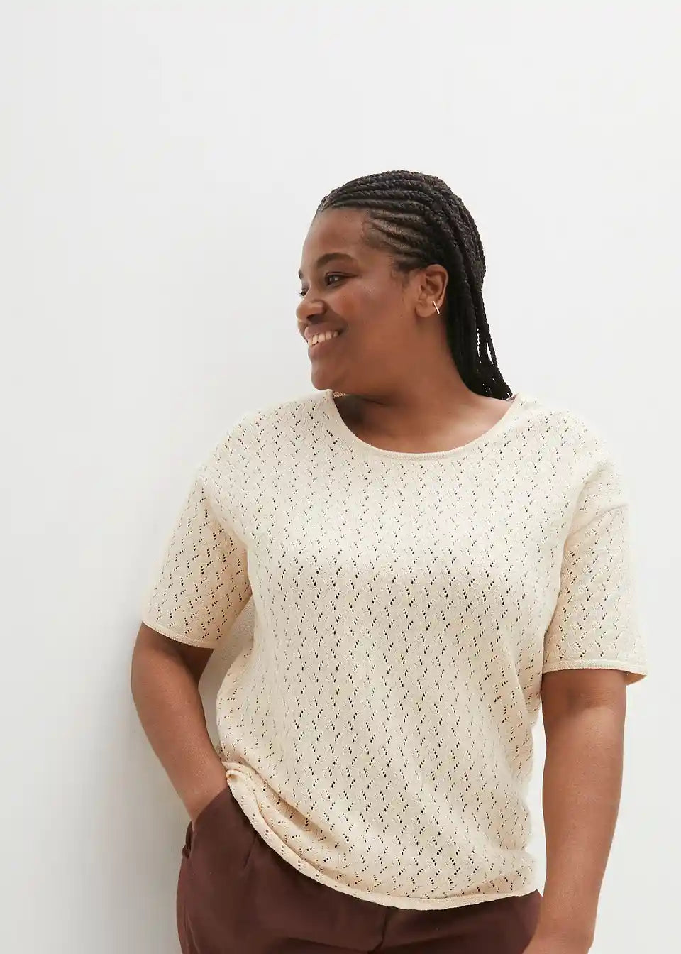 Pulover s ažurom, lanom i kratkim rukavima