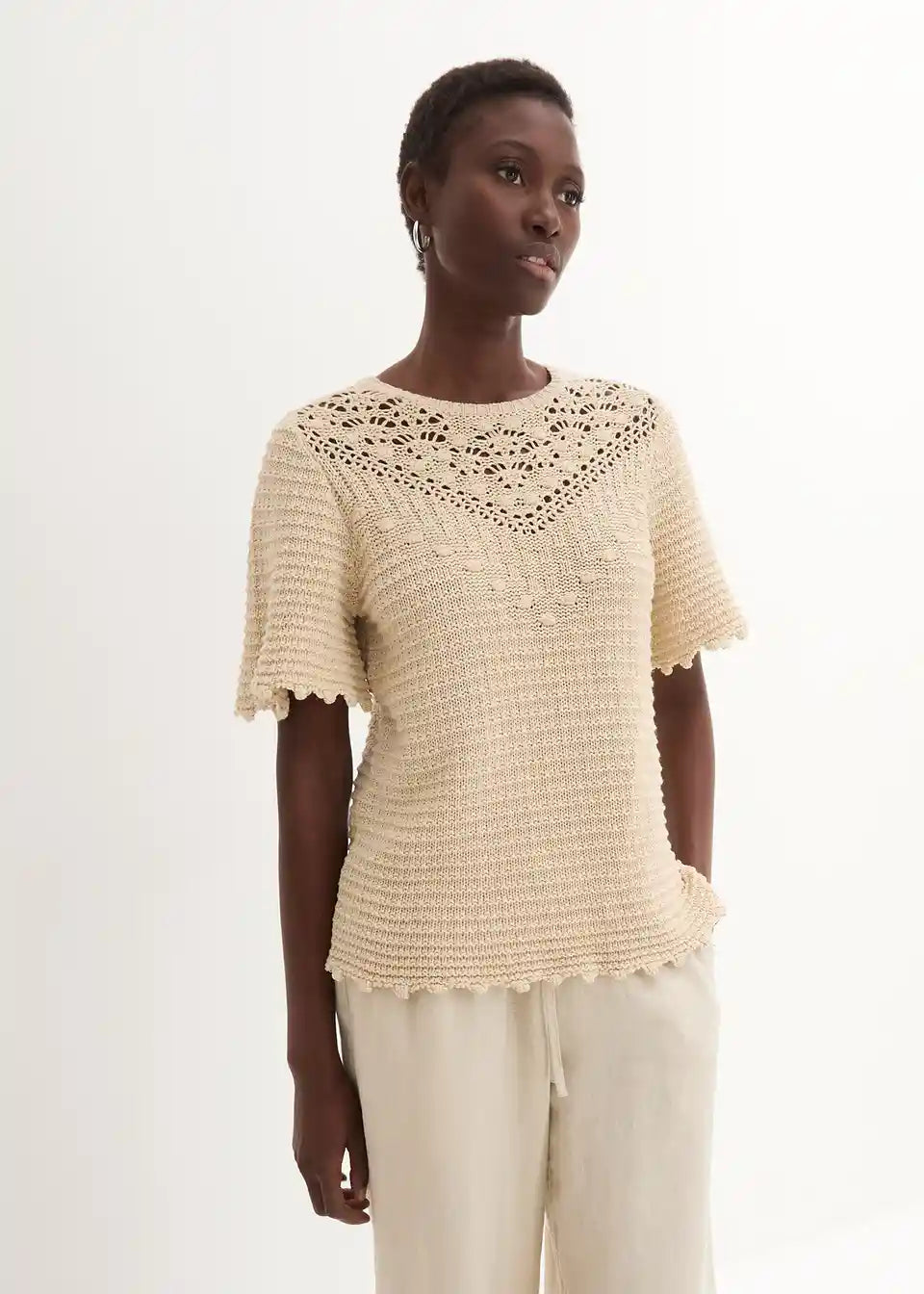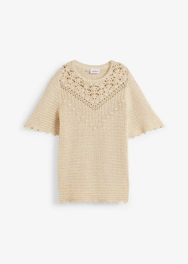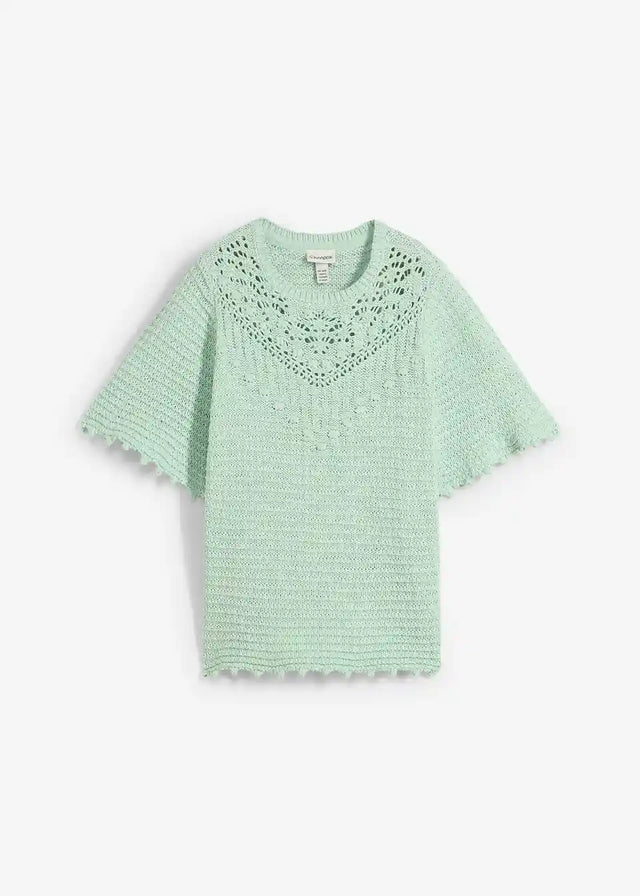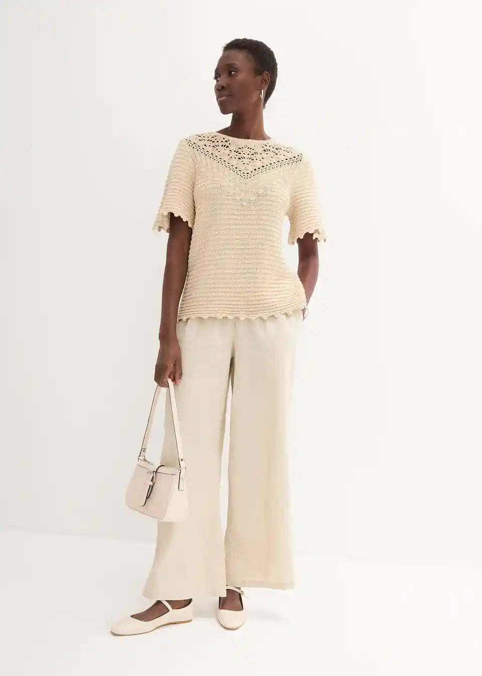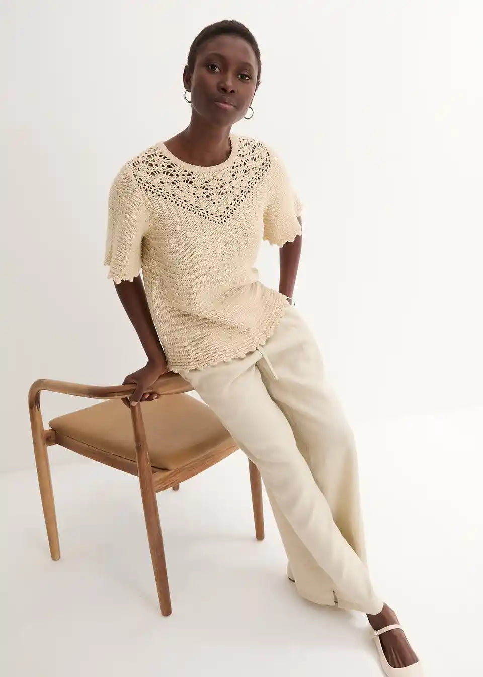 elegantan pulover s kratkim rukavima od mješavine pamuka i lana
