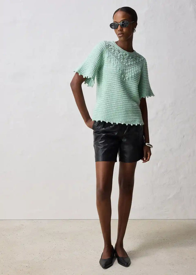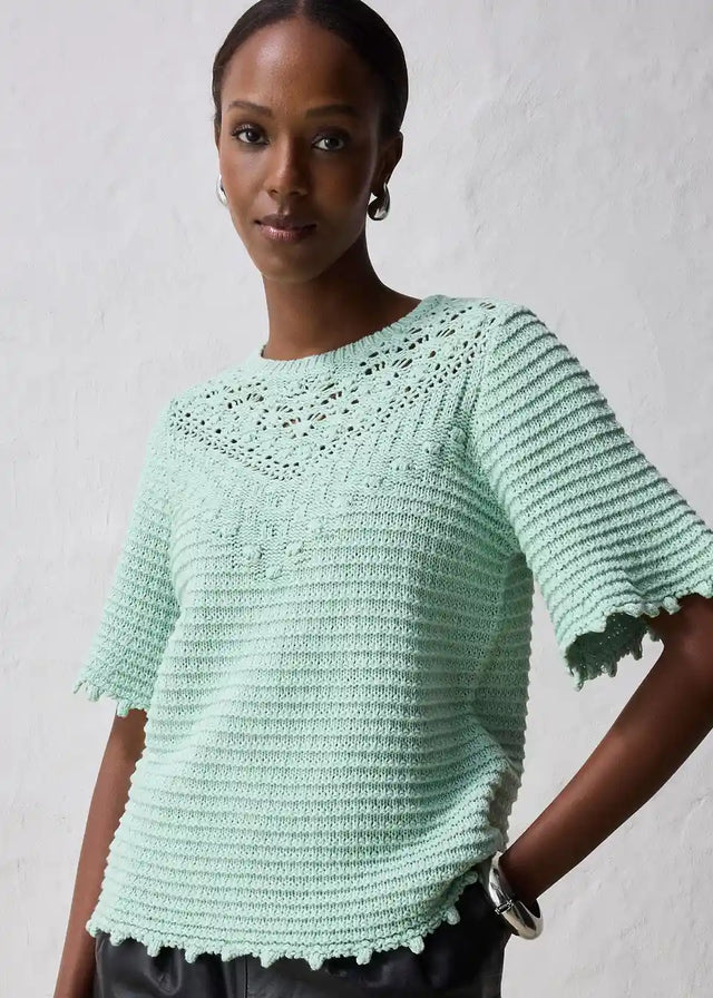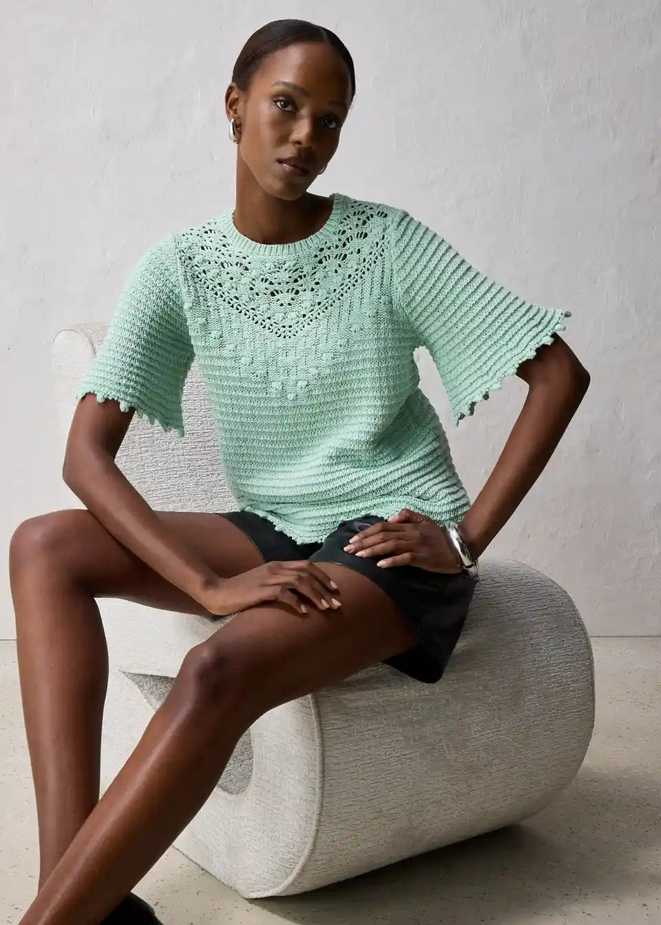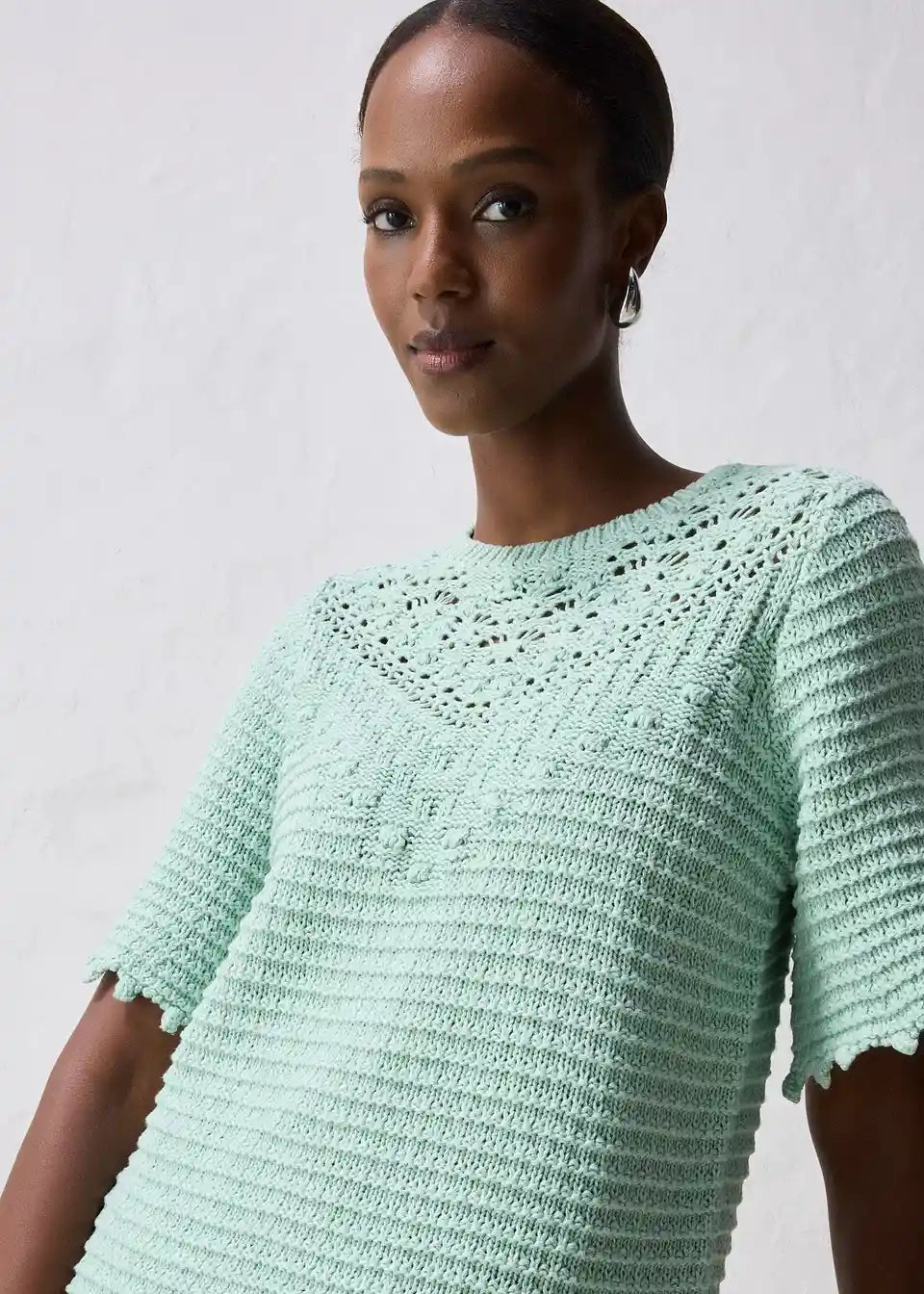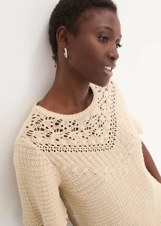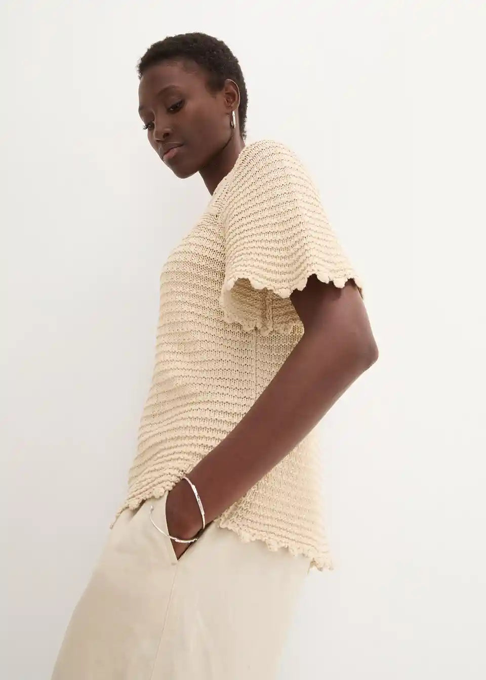 elegantan pulover s kratkim rukavima od mješavine pamuka i lana