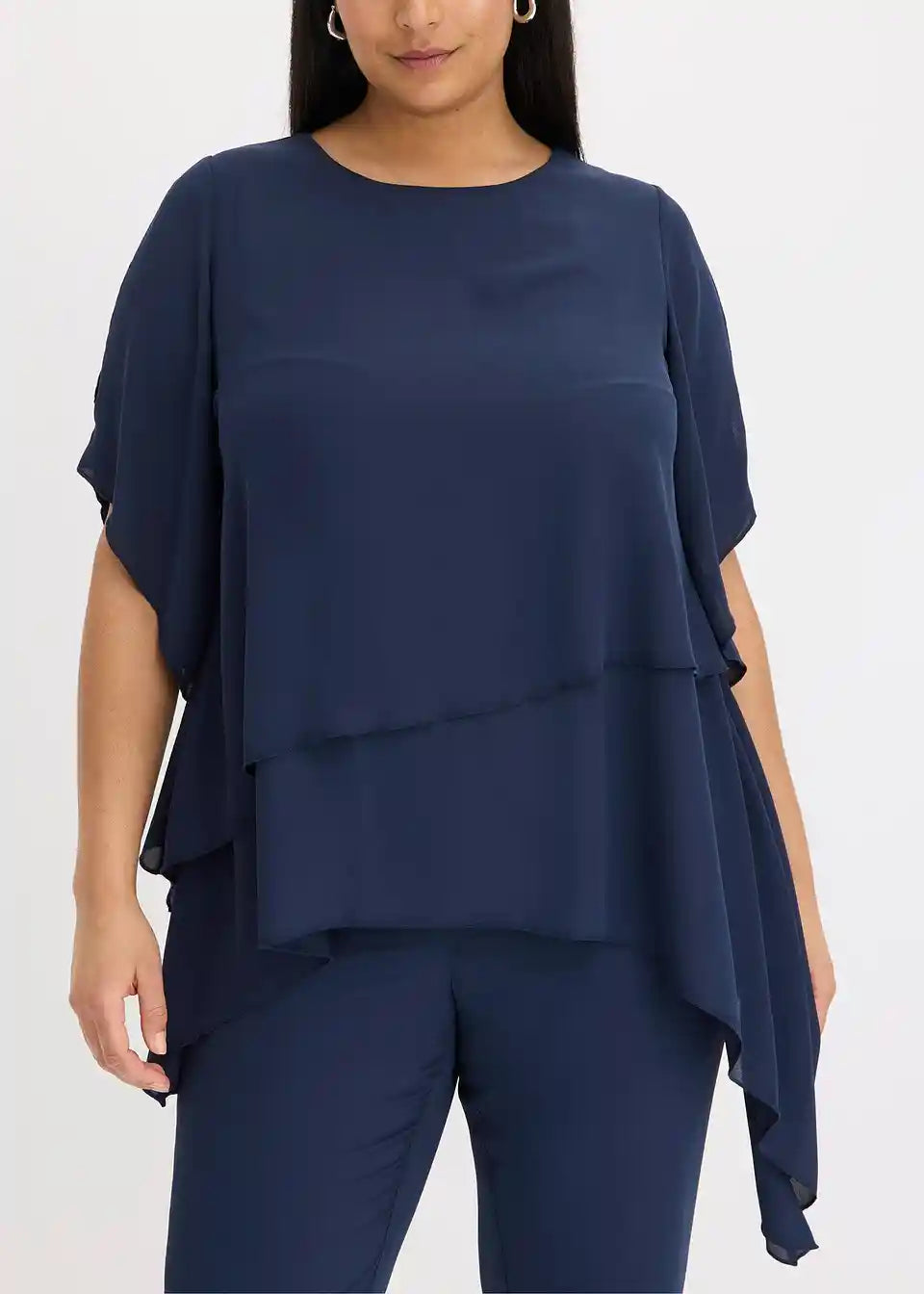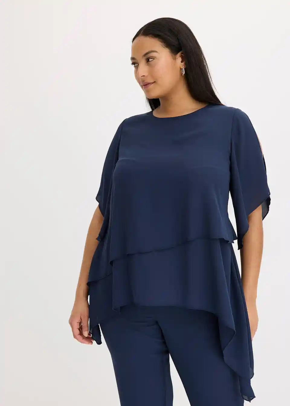 Moderna i prikrivajuća bluza u slojevitom izgledu s asimetričnim rubom