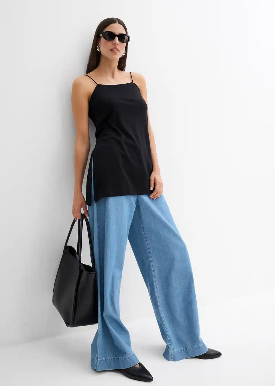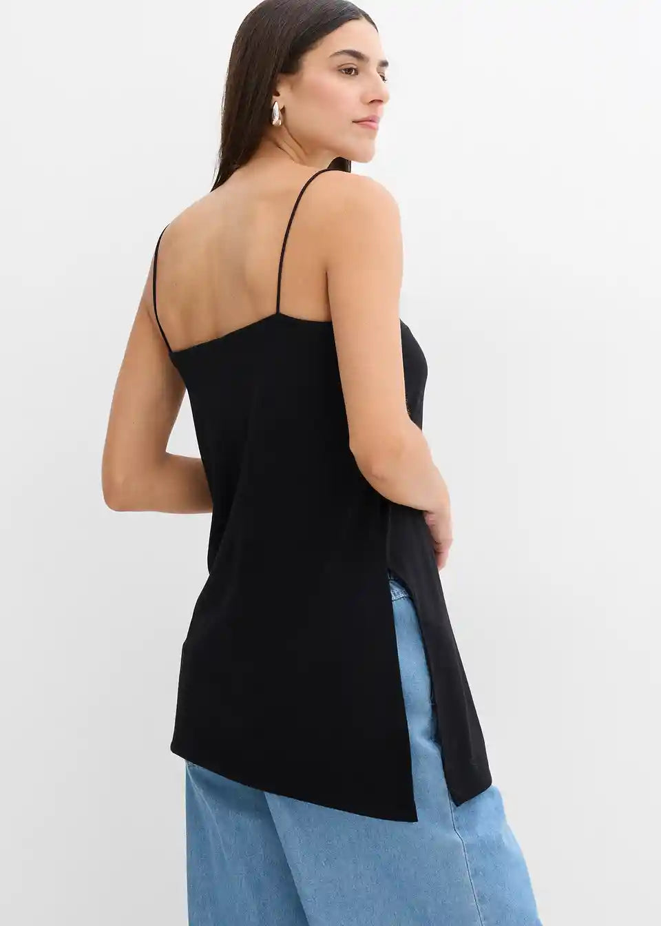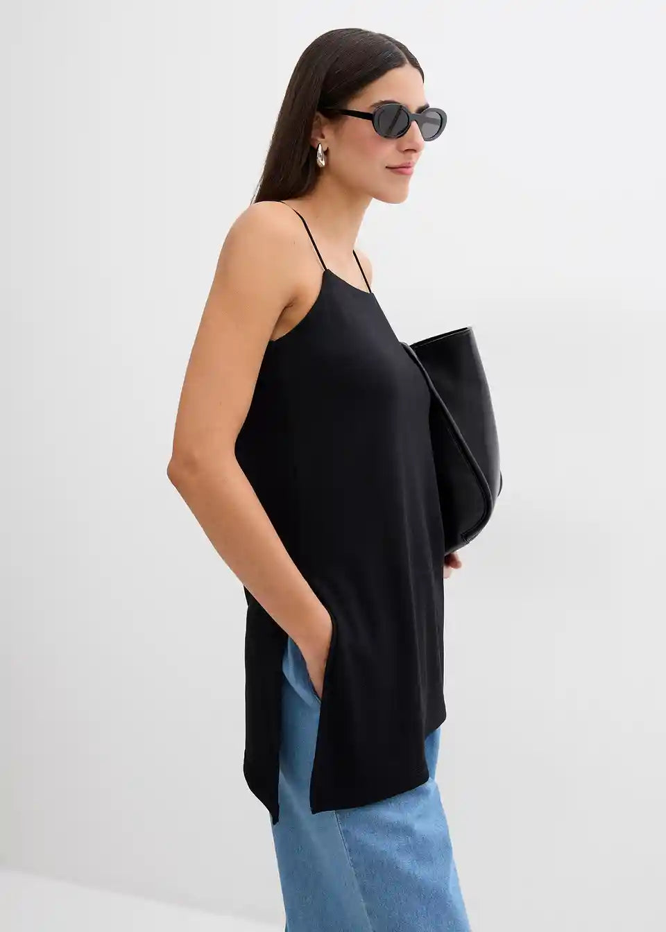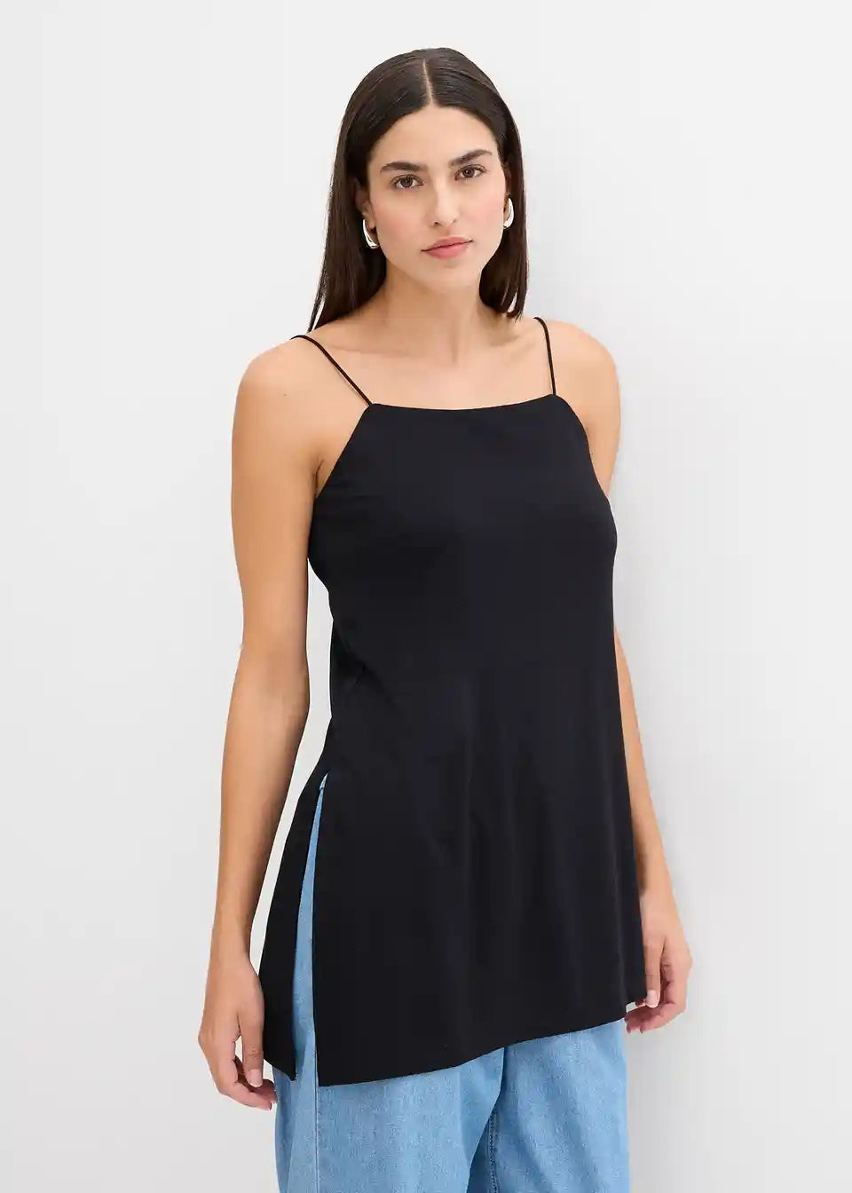 Asimetrična majica bez rukava s tankim naramenicama od materijala s udjelom viskoze