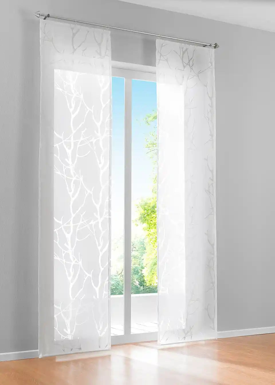 Ova poluprozirna klizna zavjesa u visoko kvalitetnoj Ausbrenner-tkanini uljepšava tvoju prozorsku površinu na elegantan i stiliziran način.