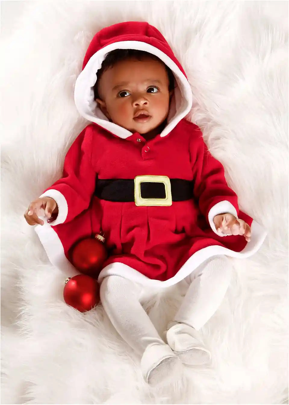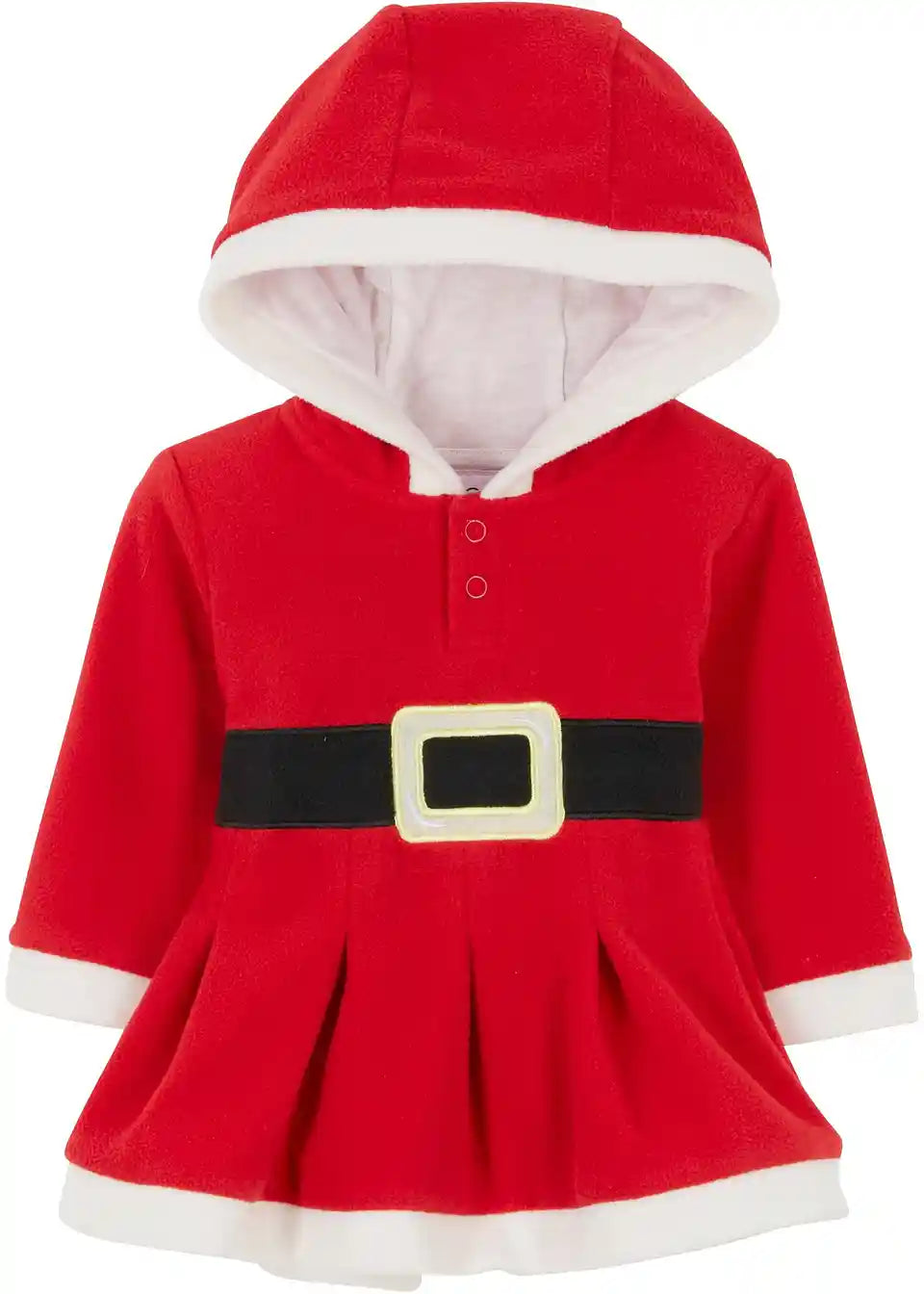 Božićni outfit za djevojčice koje se već raduju blagdanskom razdoblju. Ova mekana haljinica u stilu Djeda Božićnjaka pravi je pogled privlačno! Praktična kapuljača i mekani materijal osiguravaju dodatnu udobnost.