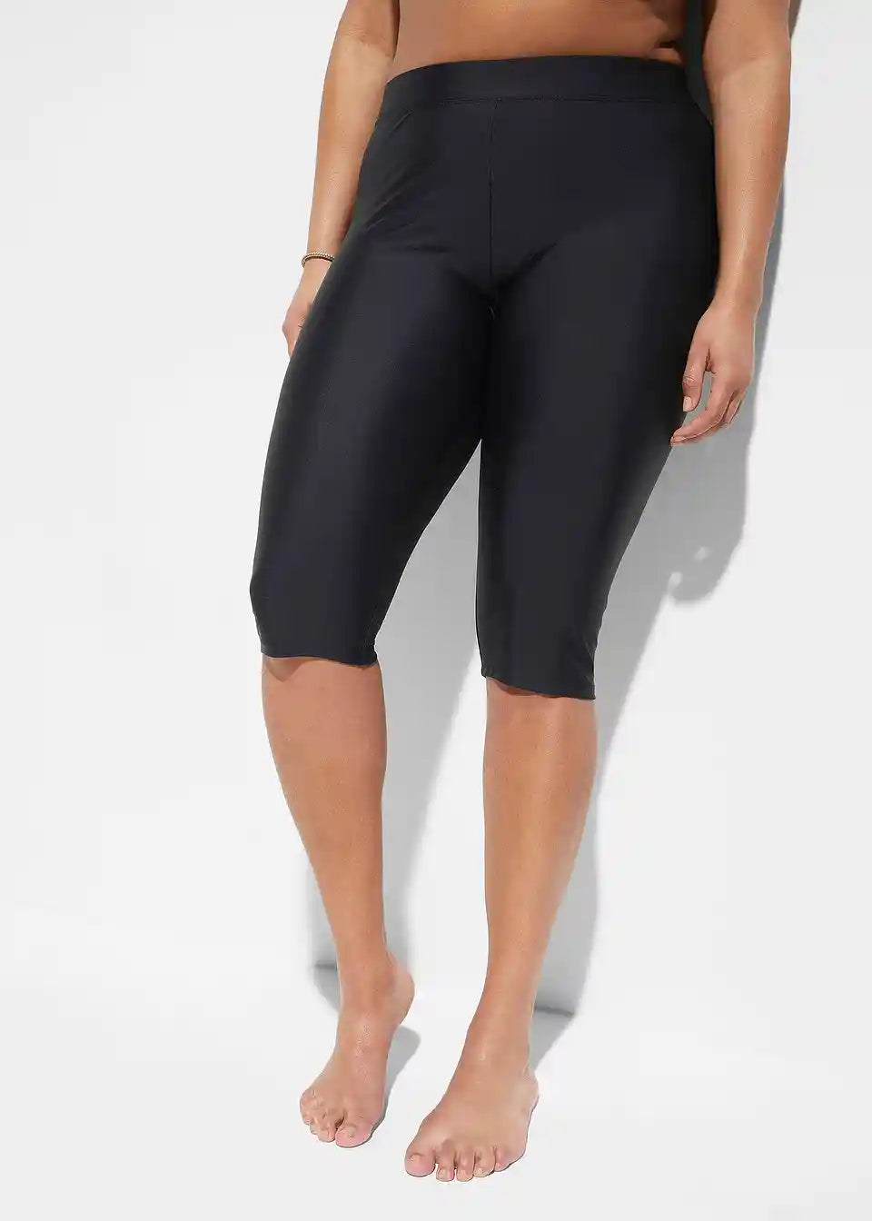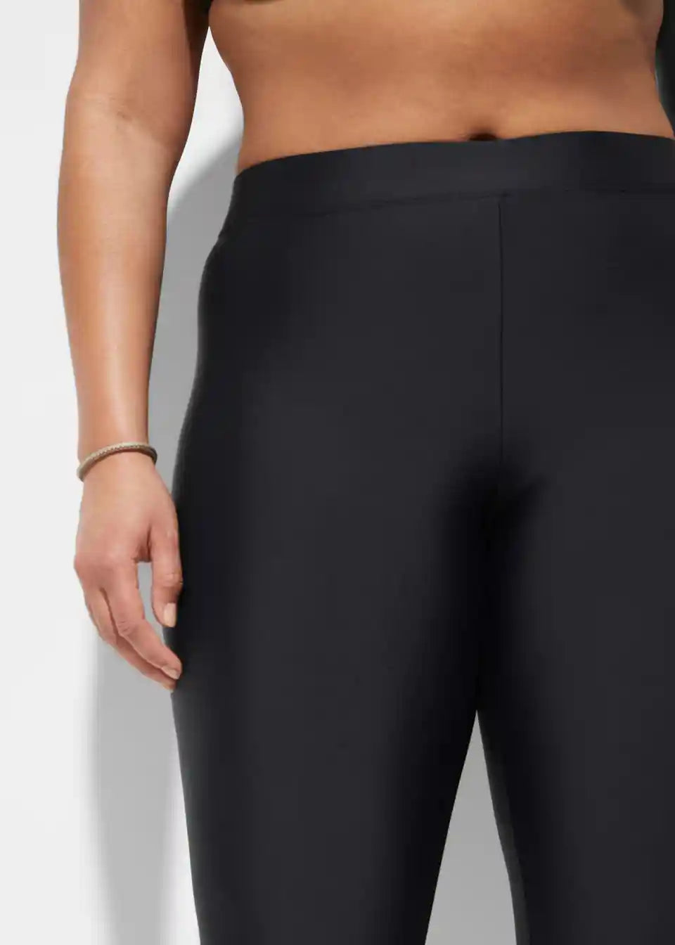 S ovim ležernim kupaćim tajicama u 3/4 dužini, dame mogu varirati svoj outfit na plaži i u vodi. Diskretne tajice iz aktualne kolekcije bpc-a odlikuju se širokim elastičnim pojasom i prilagodljivim materijalom. Sportske tajice od elastične kupaće tkanine odlično se kombiniraju s bikini i tankini gornjim dijelovima, kao i s haljinama za plažu.
