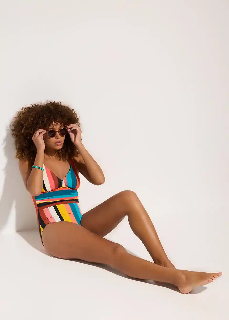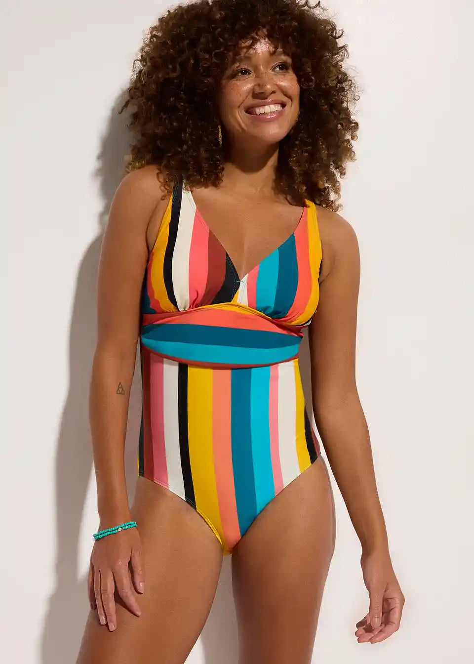 Atraktivan jednodijelni kupaći kostim s prugastim dizajnom